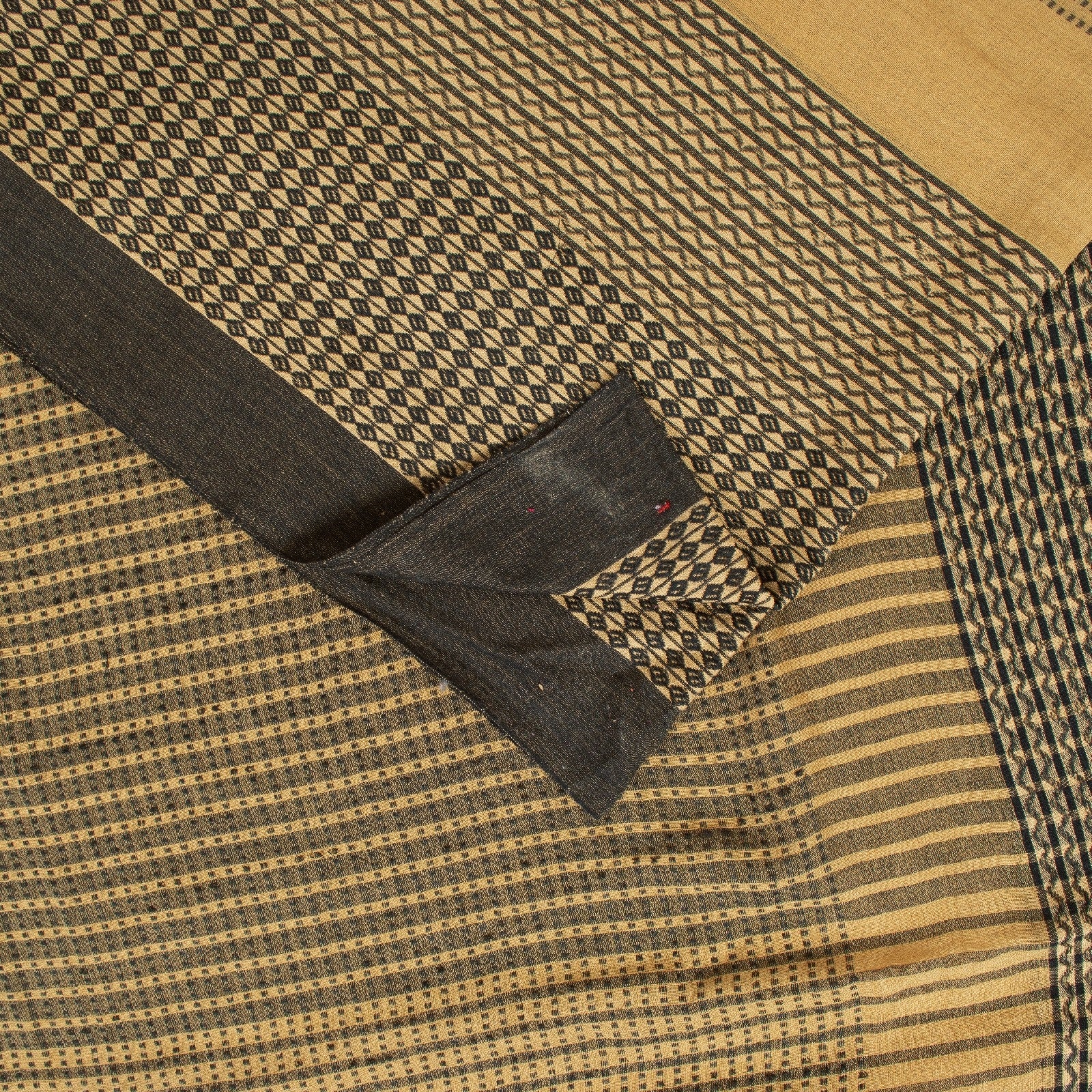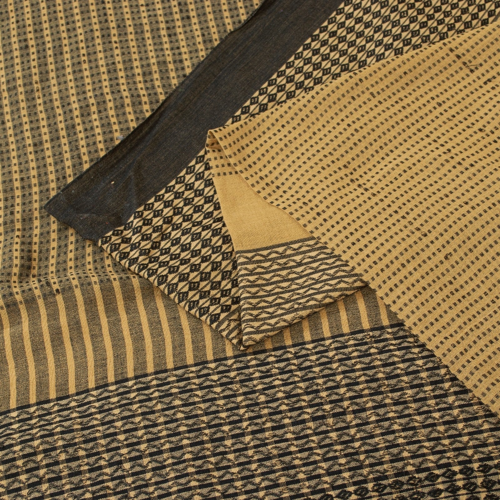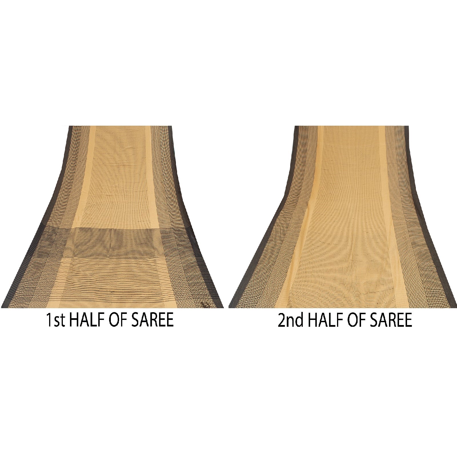 Sanskriti Vintage Sarees Cream Pure Cotton Geometric Woven 5+YD Heritage Sari