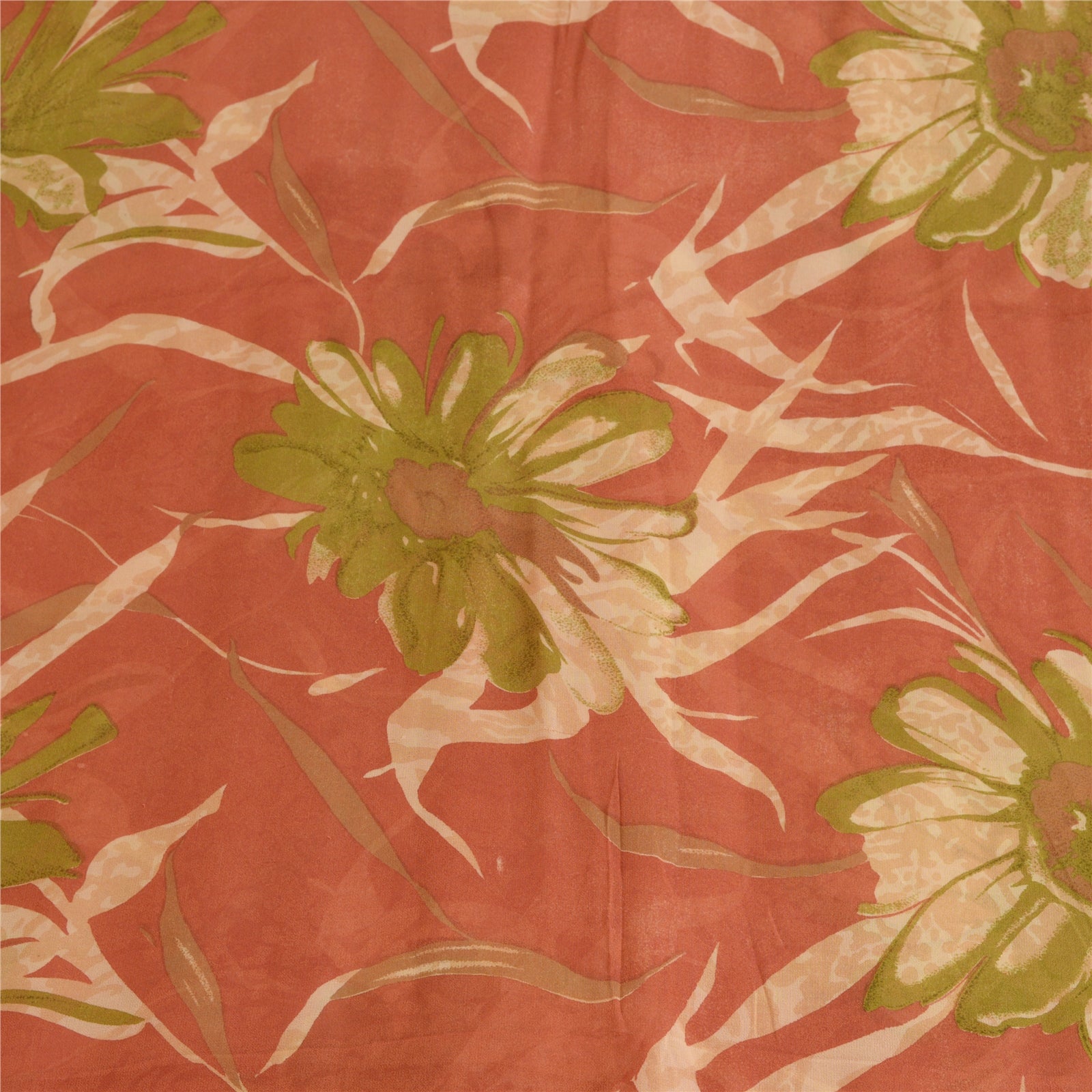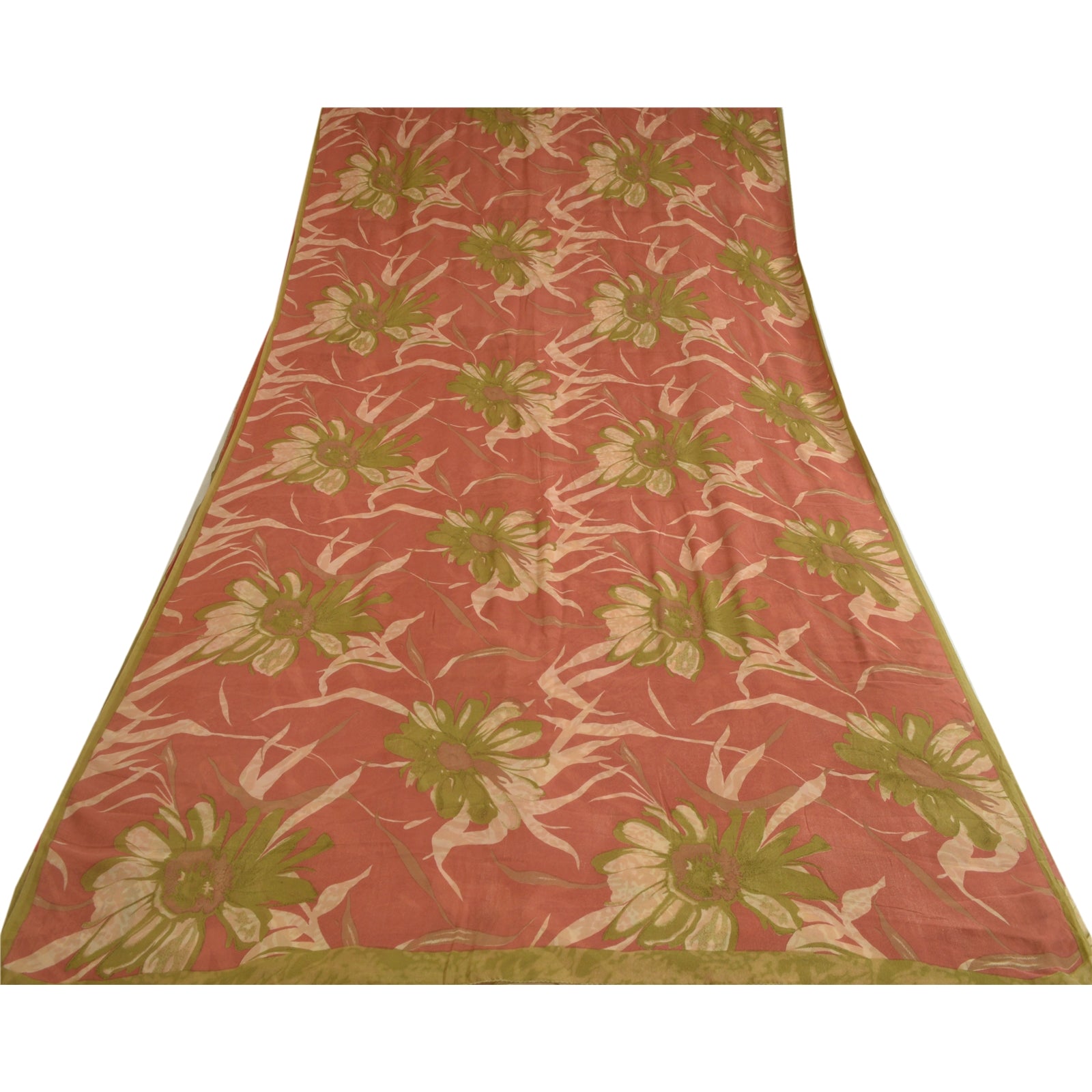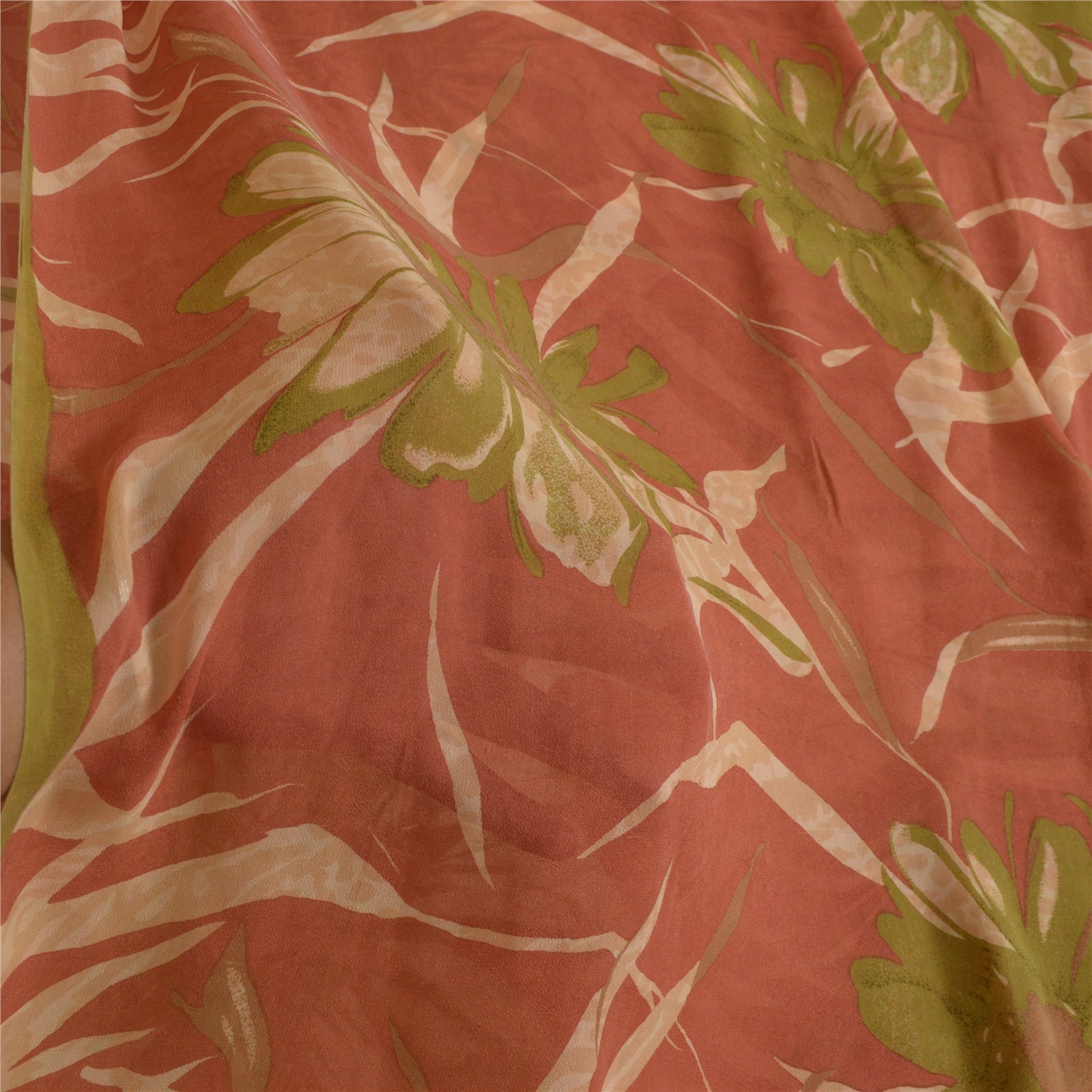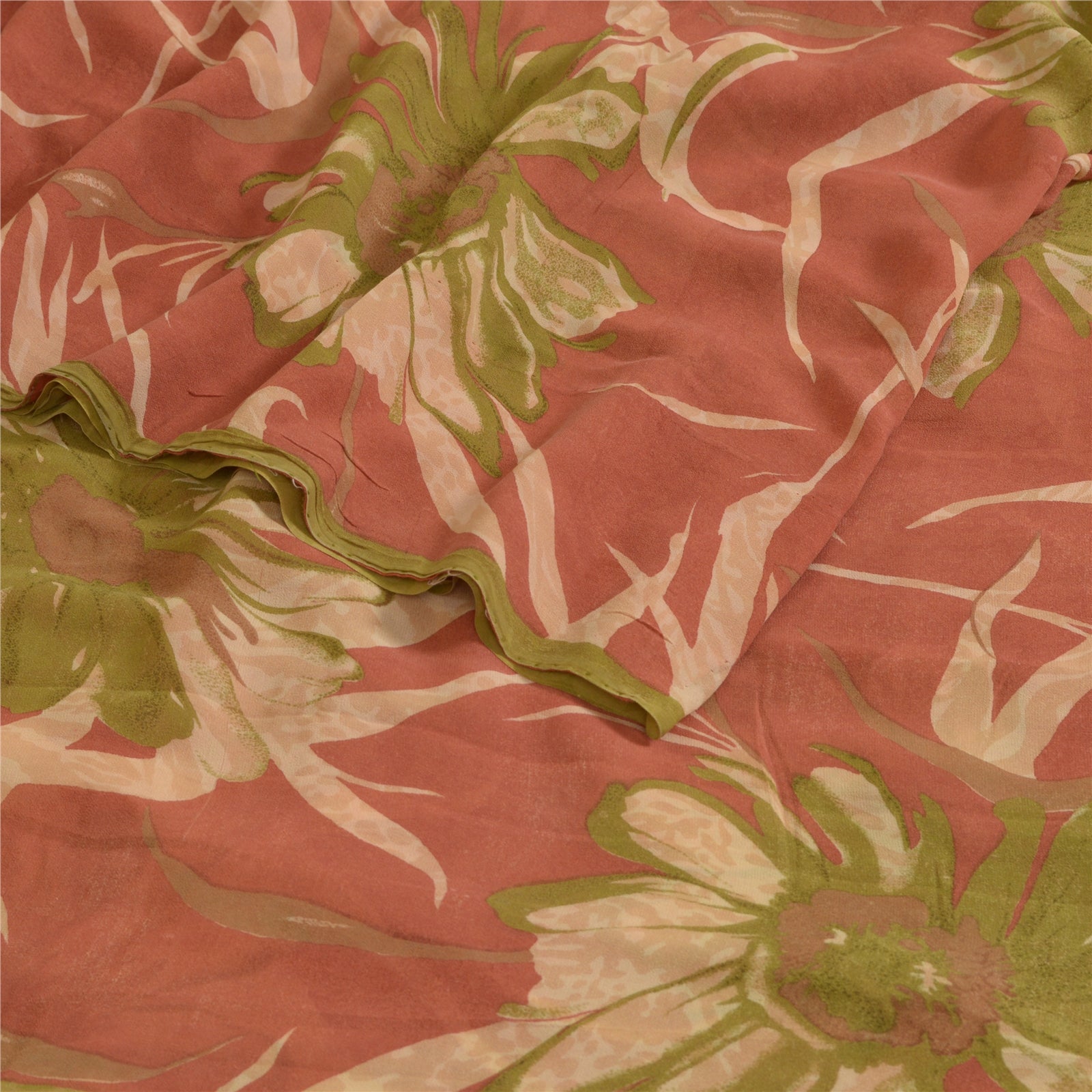 Sanskriti Vintage Sarier i støvet lyserødt rent georgette-trykt sari, 5 m håndværk i bæredygtigt stof