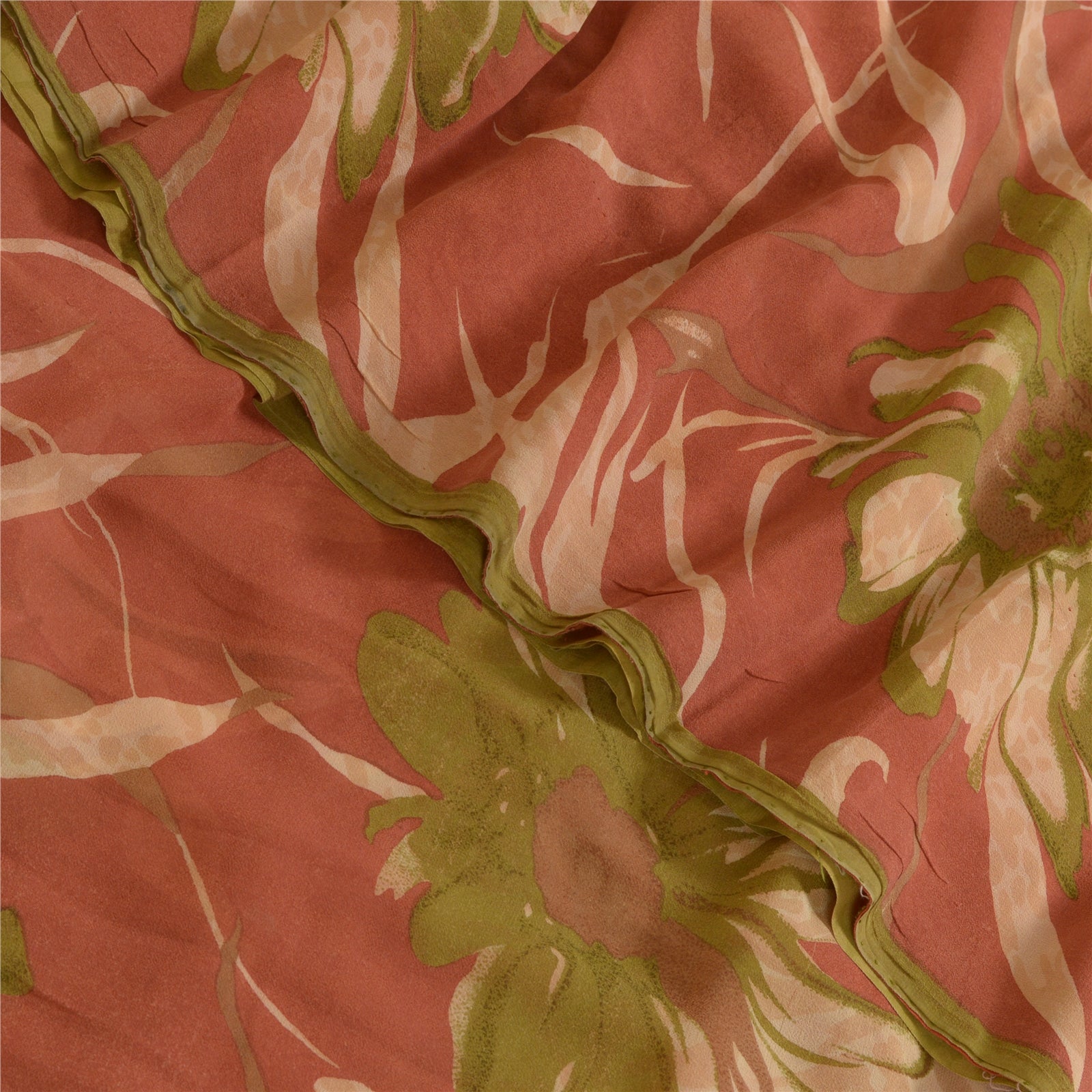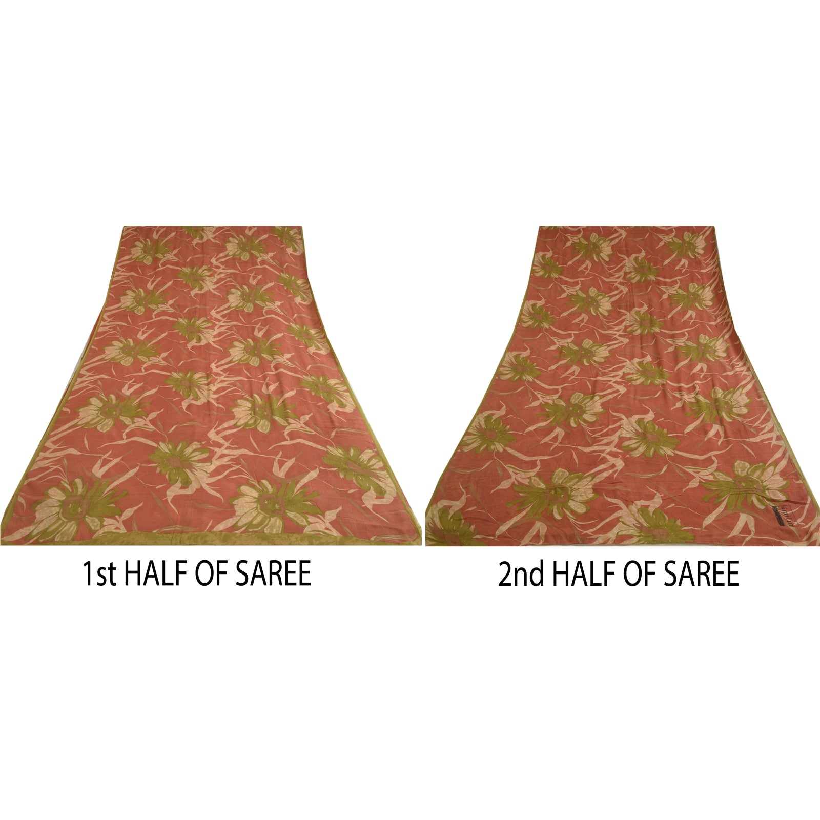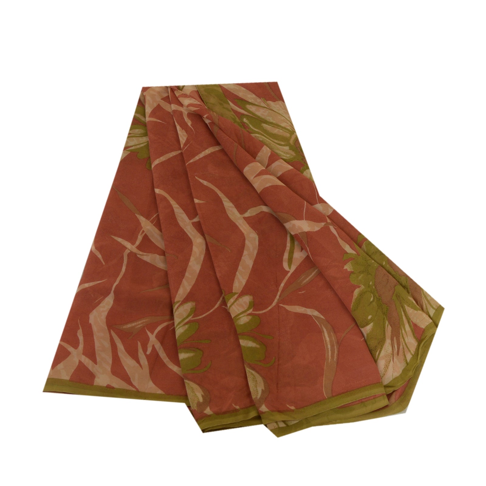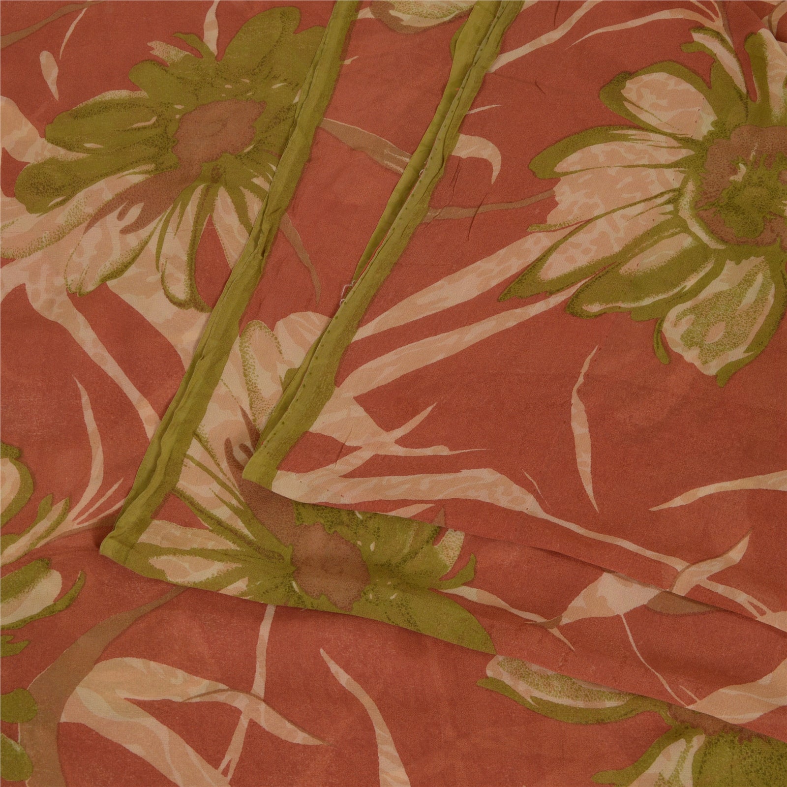 Sanskriti Vintage Sarier i støvet lyserødt rent georgette-trykt sari, 5 m håndværk i bæredygtigt stof