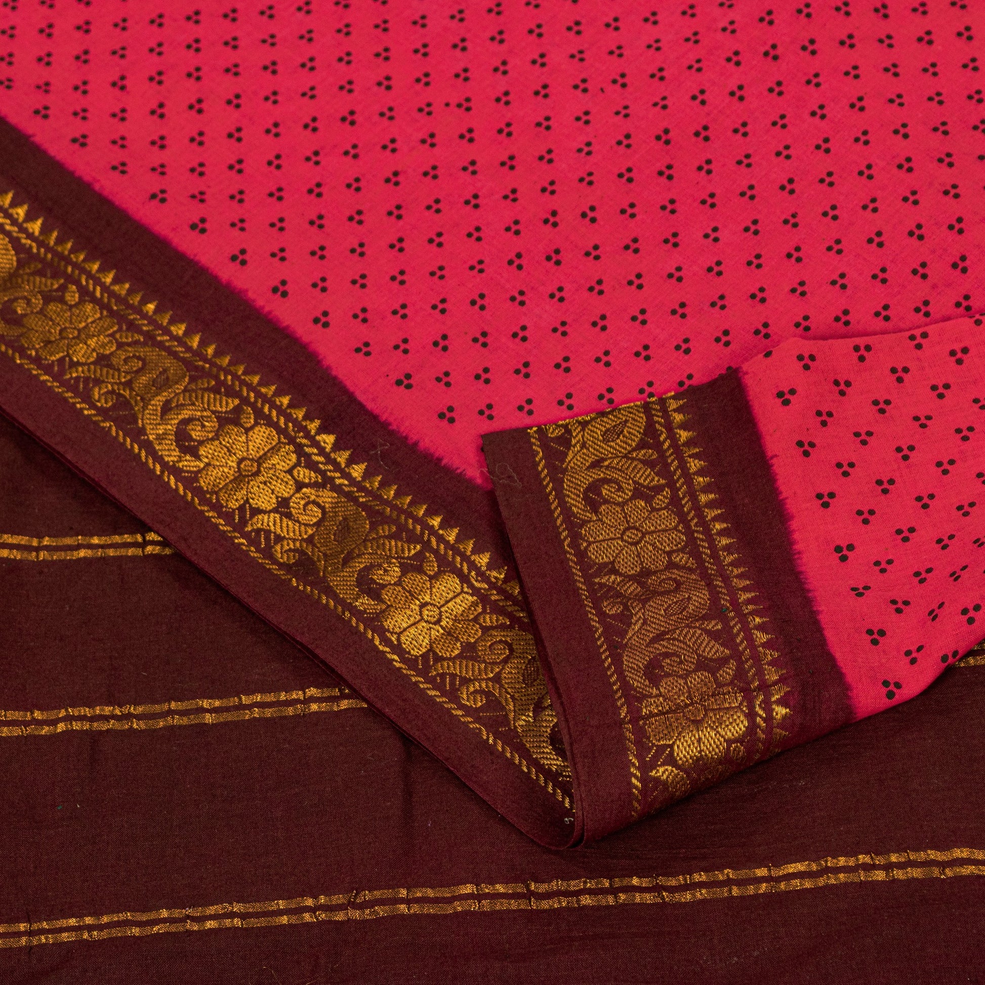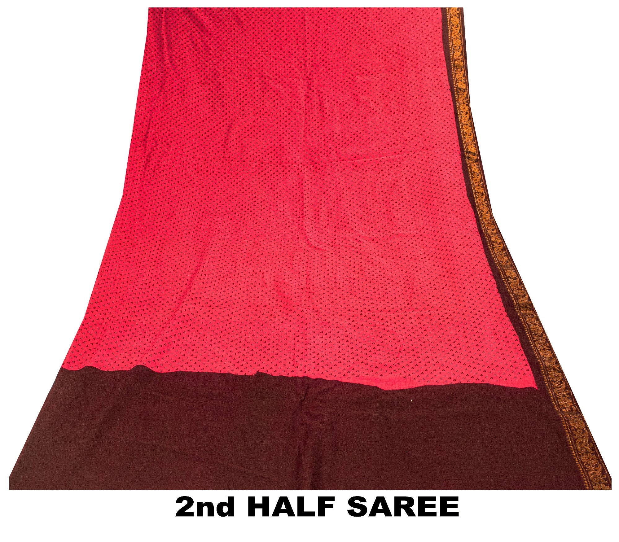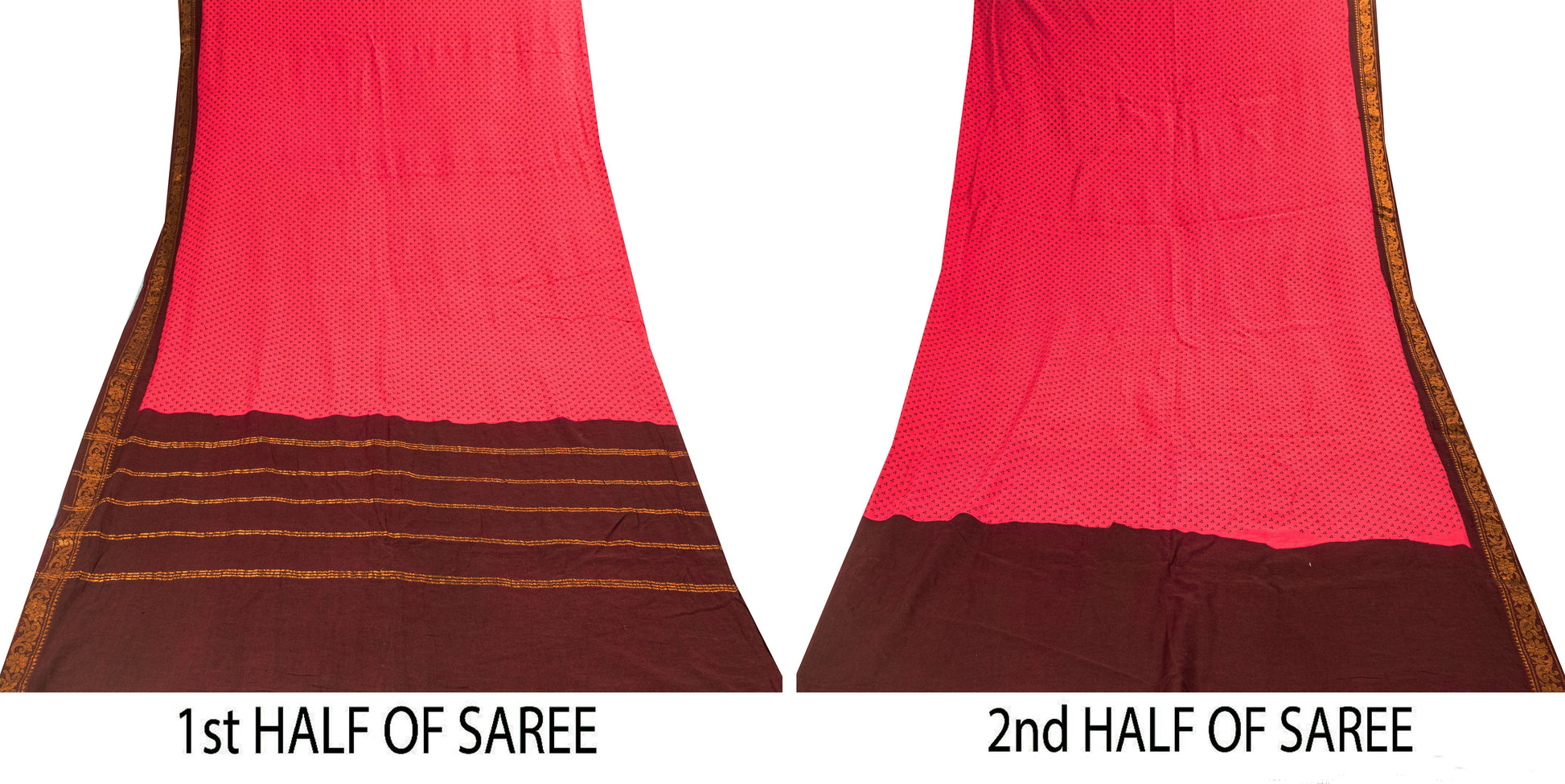Sanskriti Vintage Sarees Fabric Pink & Brown Pure Cotton Print & Zari 5+yd Sari