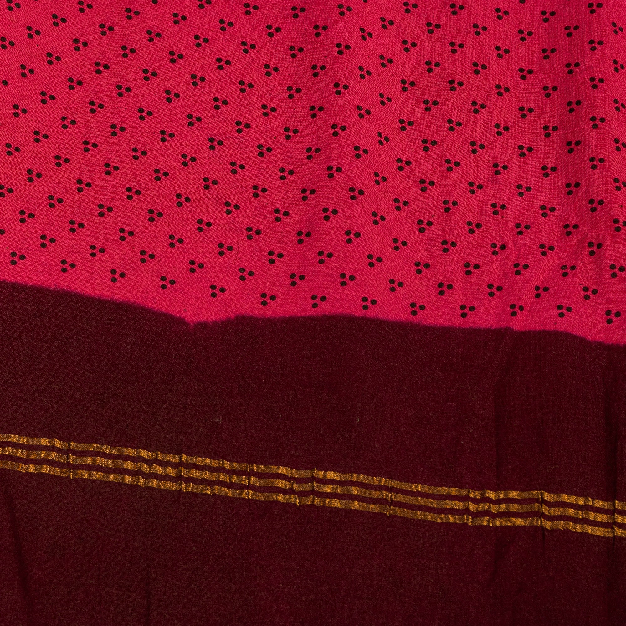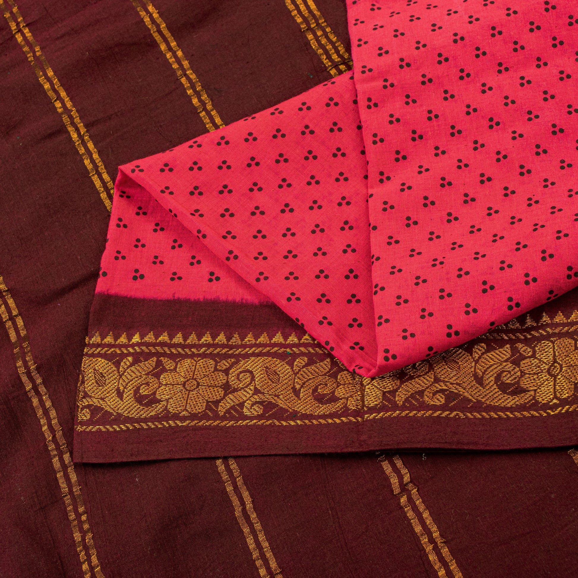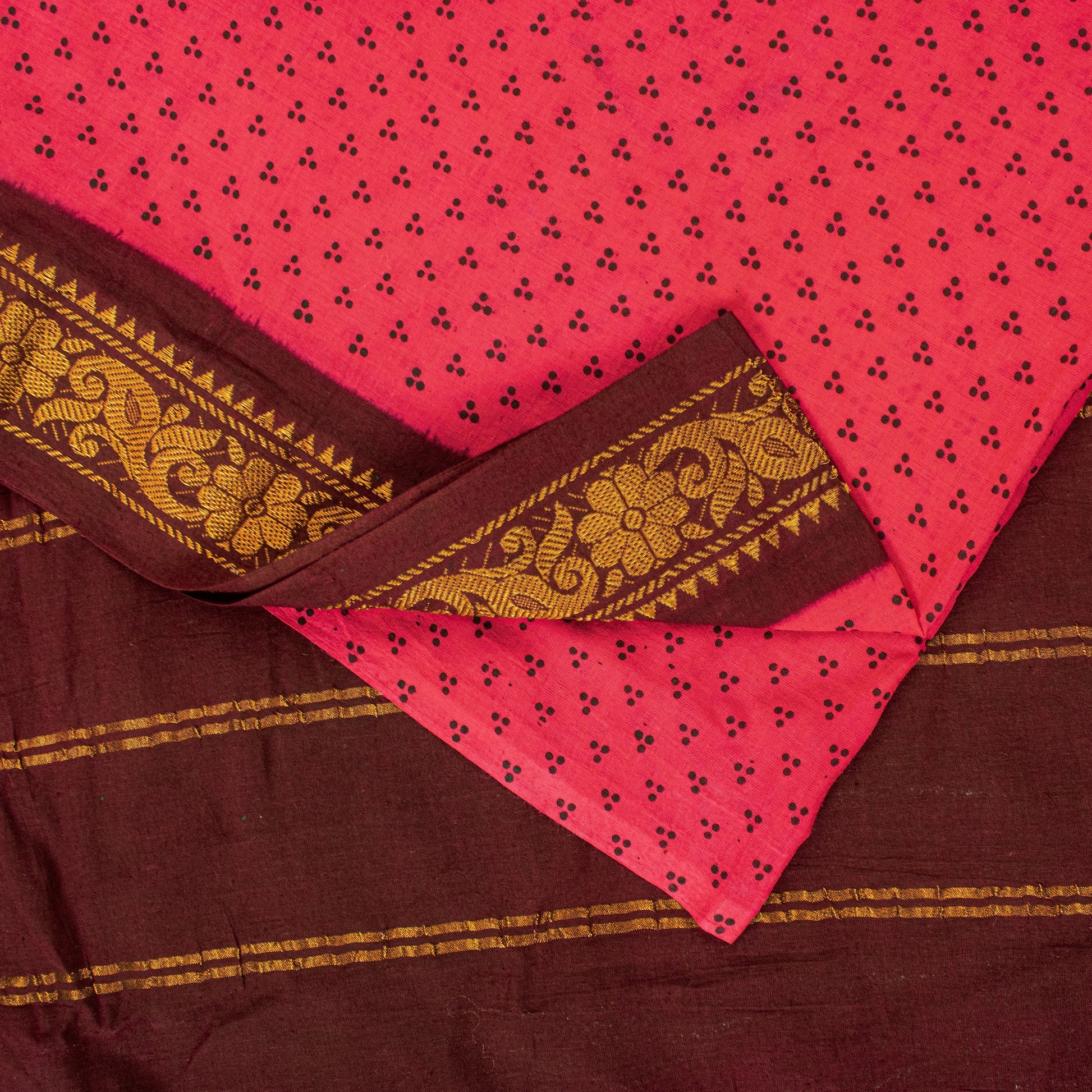 Sanskriti Vintage Sarees Fabric Pink & Brown Pure Cotton Print & Zari 5+yd Sari