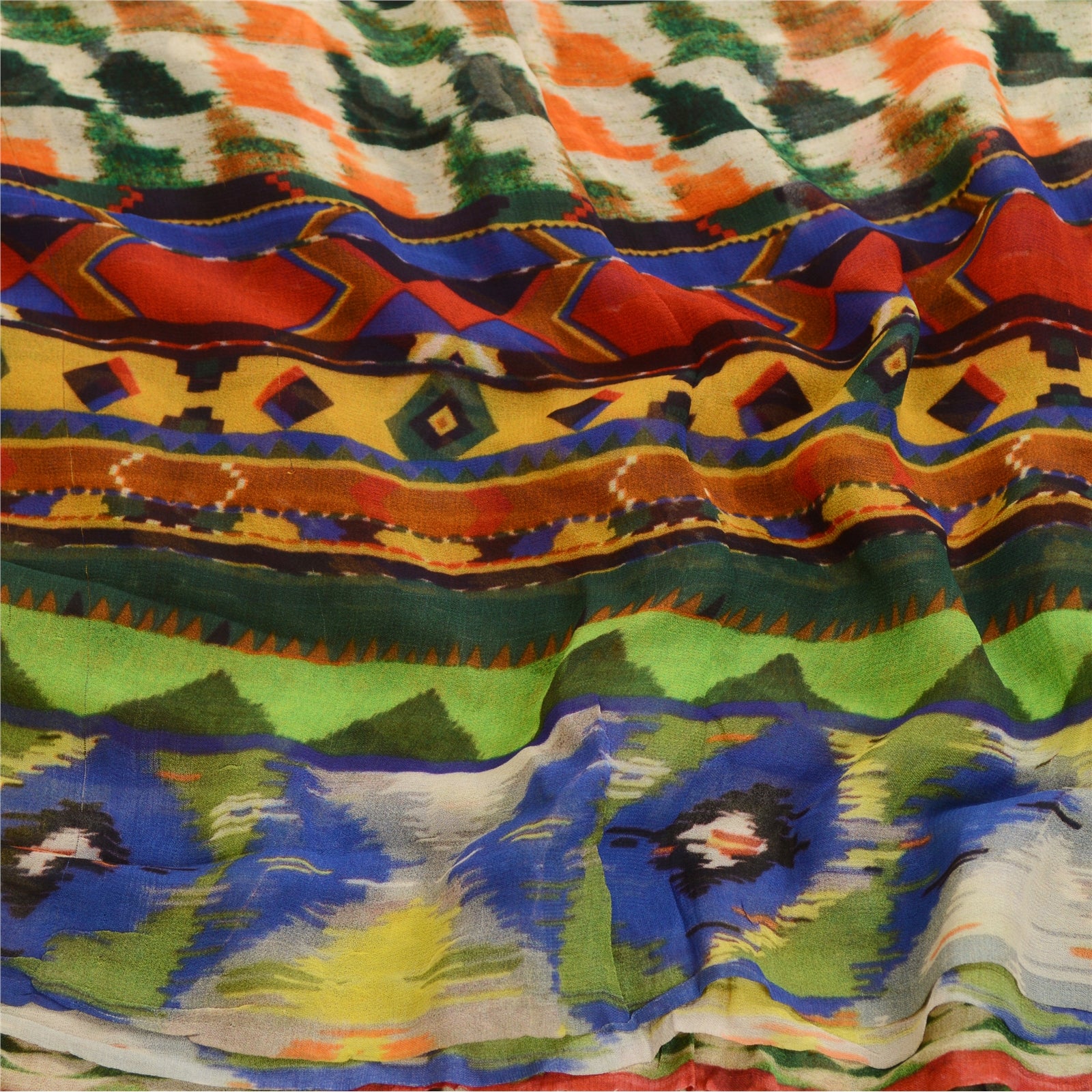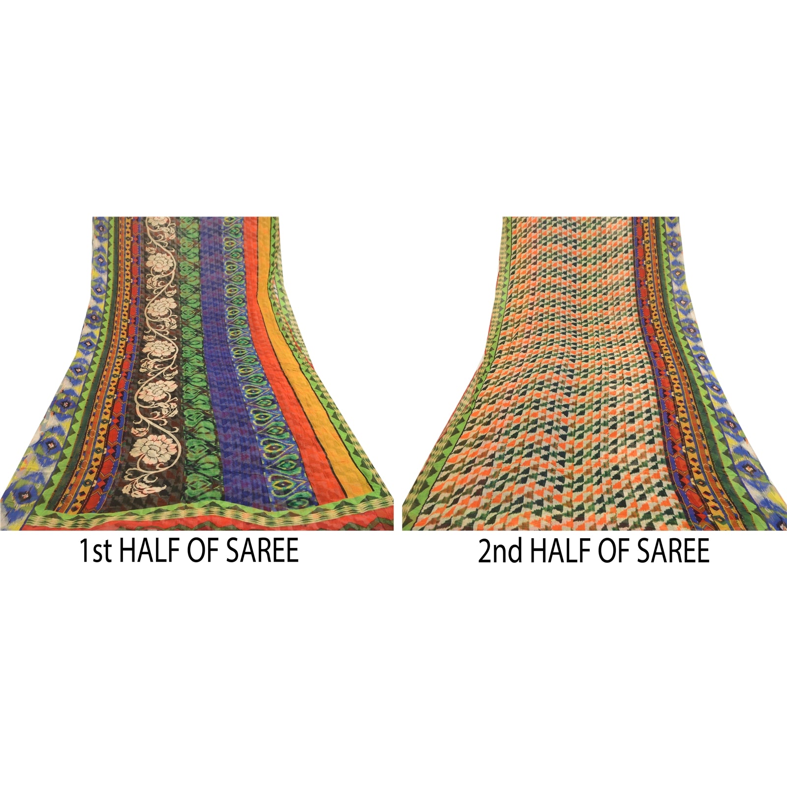 Sanskriti vintage sarier fra Indien multi-blend georgette-trykt sari i bæredygtigt stof