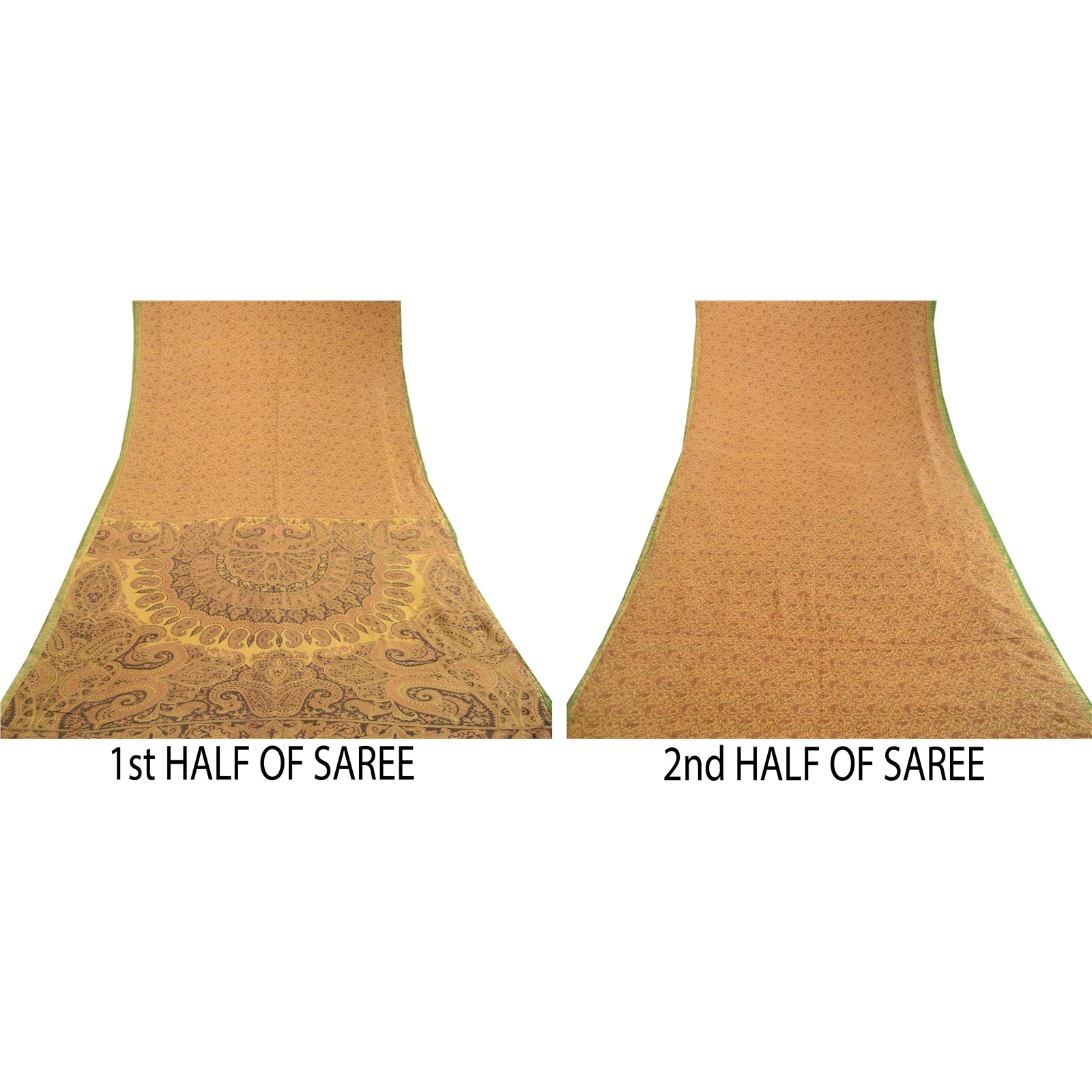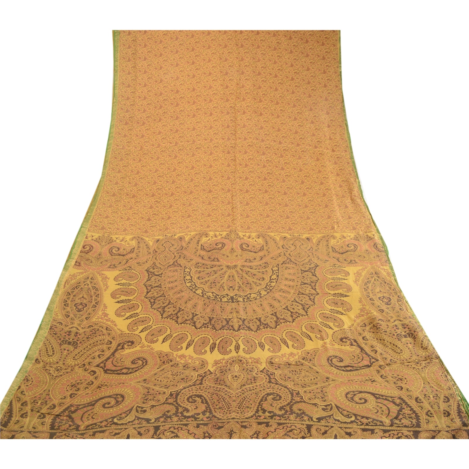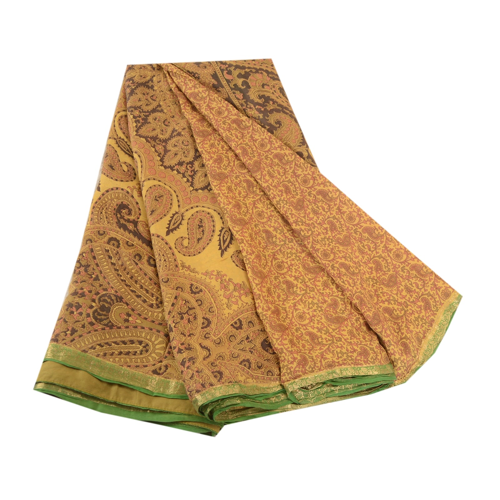 Sanskriti Vintage Sarees Grøn Indisk Ren Silke Trykt Sari Blomster Håndværk Bæredygtigt Stof