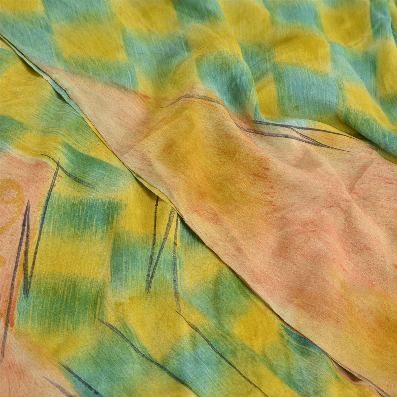 Sanskriti Vintage Sarees Grøn Ren Crepe Silke Trykt Sari Blødt Håndværk Bæredygtigt Stof