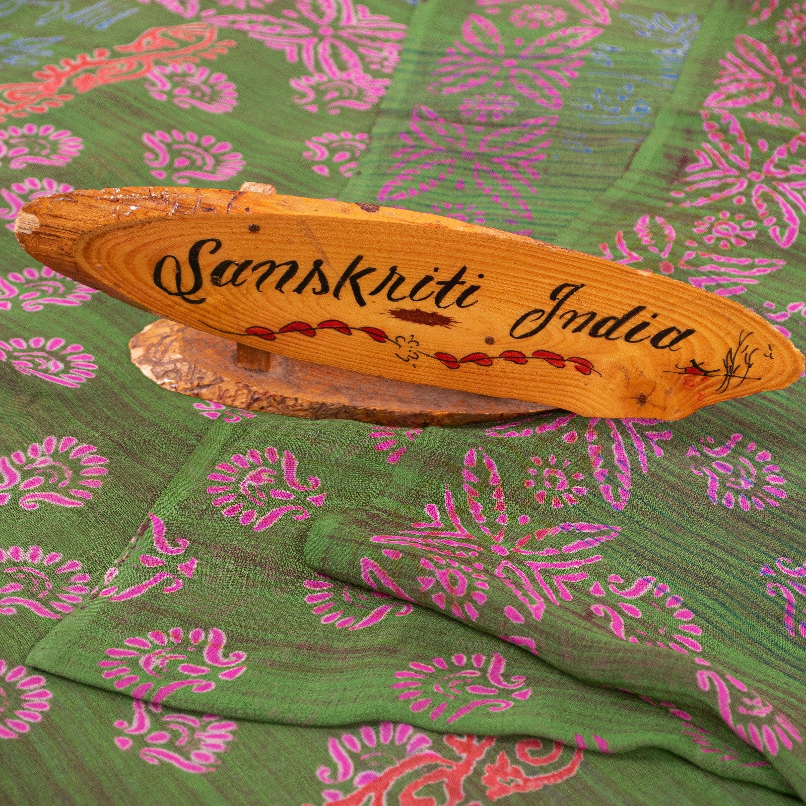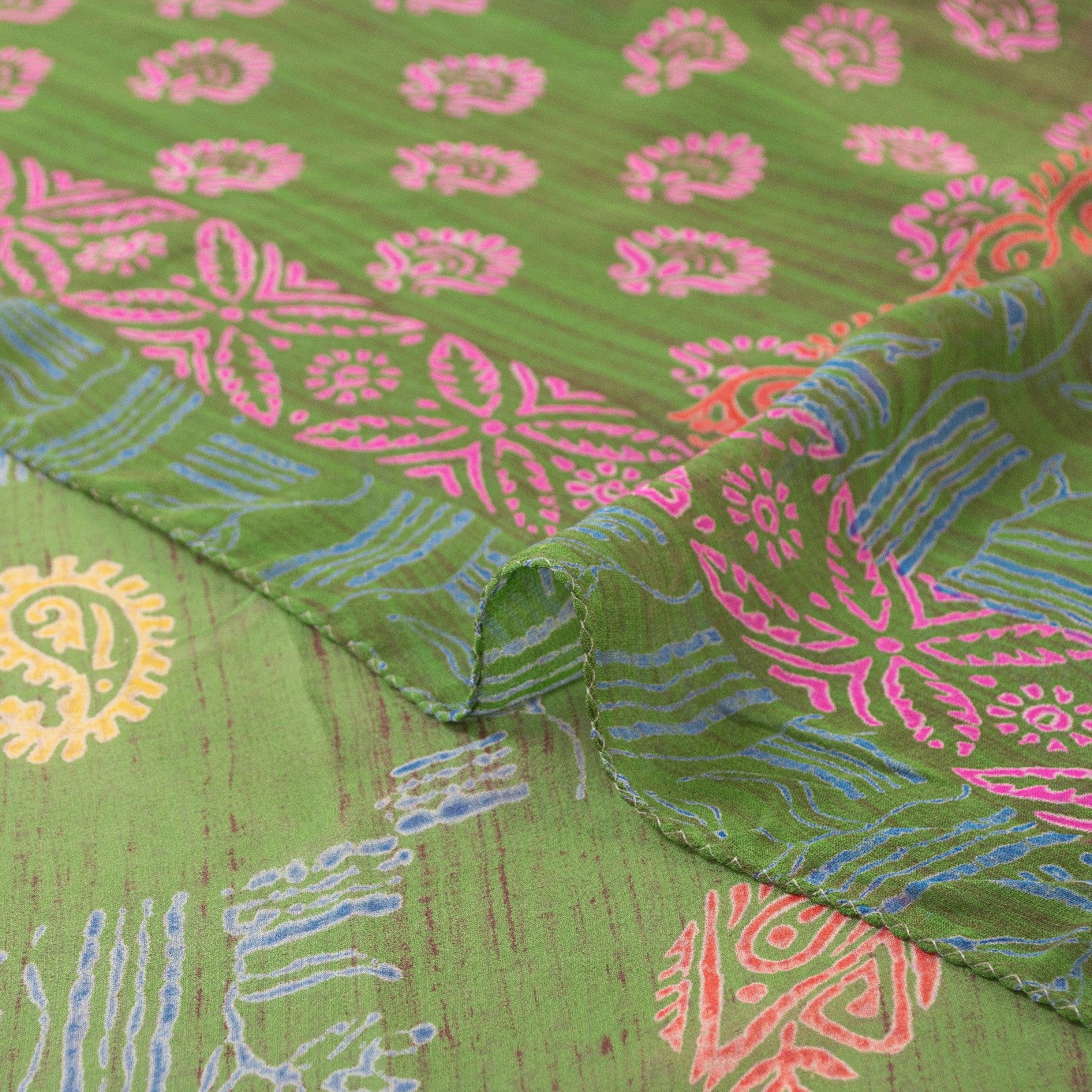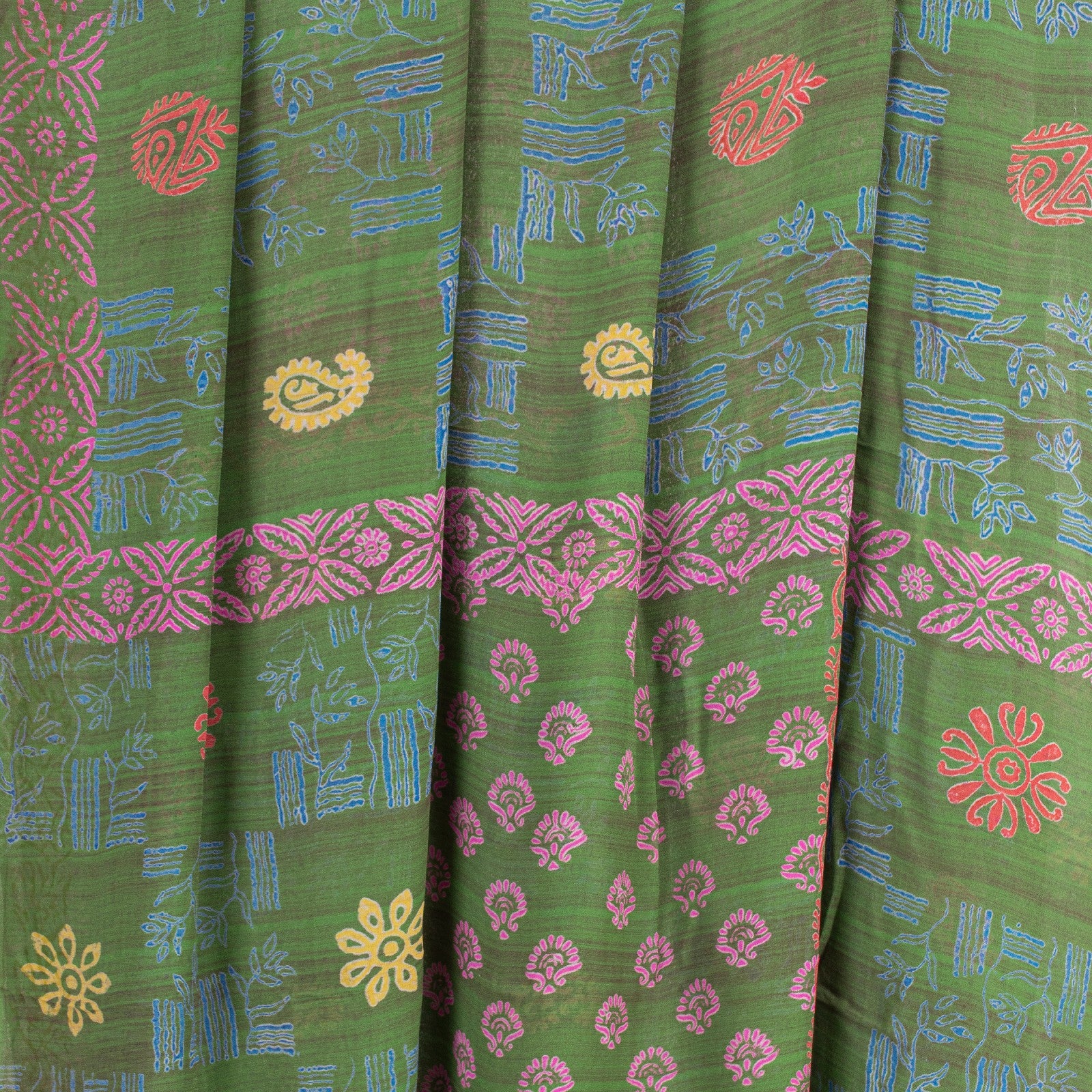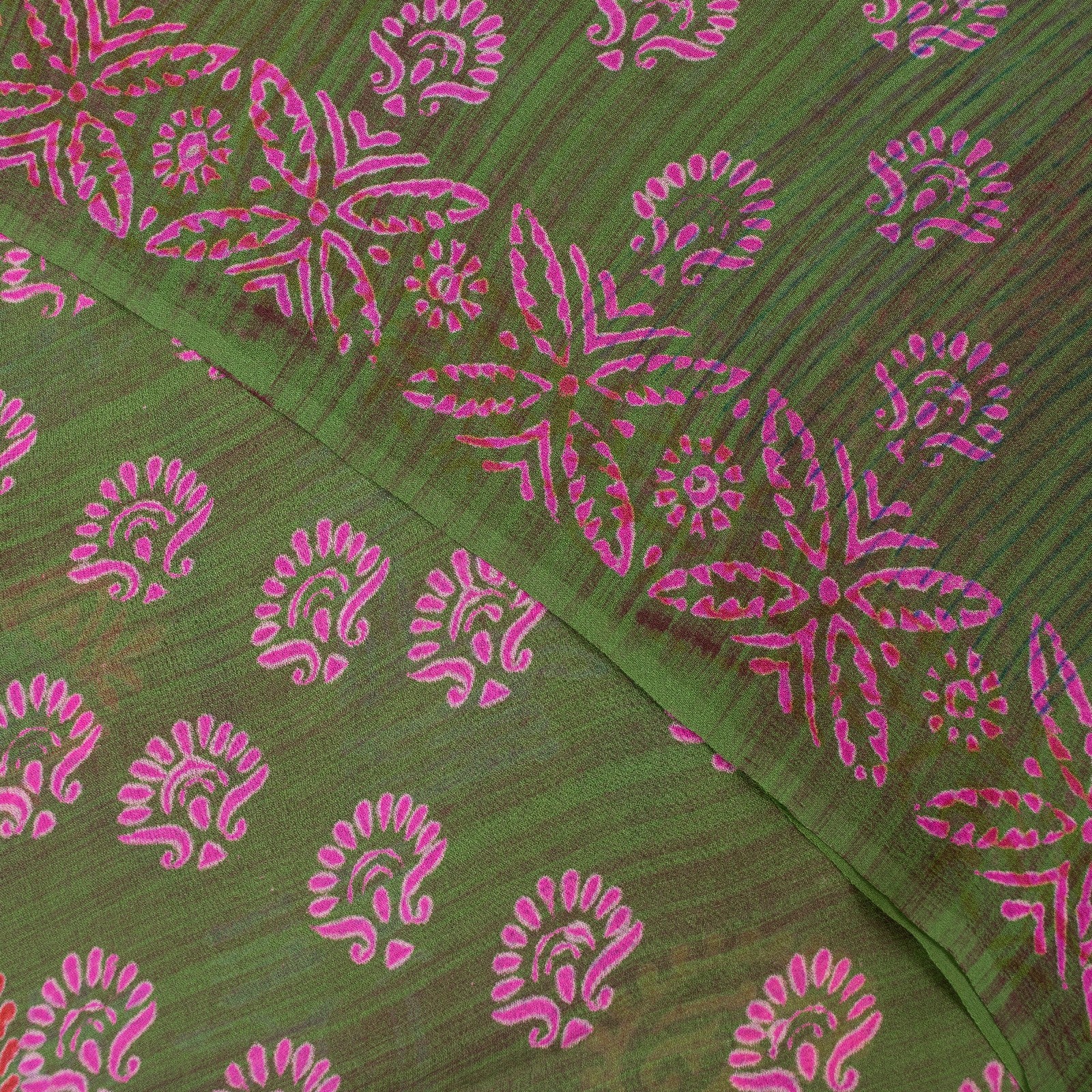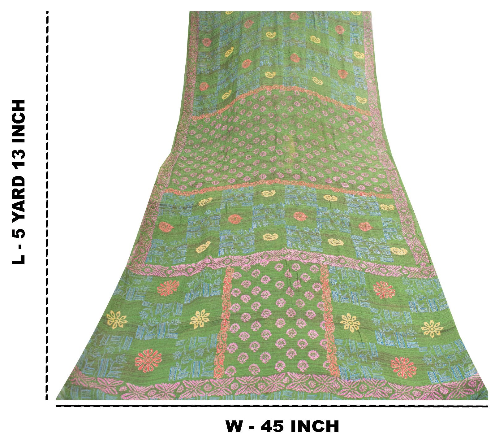 Sanskriti Vintage Sarees Green Pure Georgette Block Print Sari 5+YD Craft Fabric