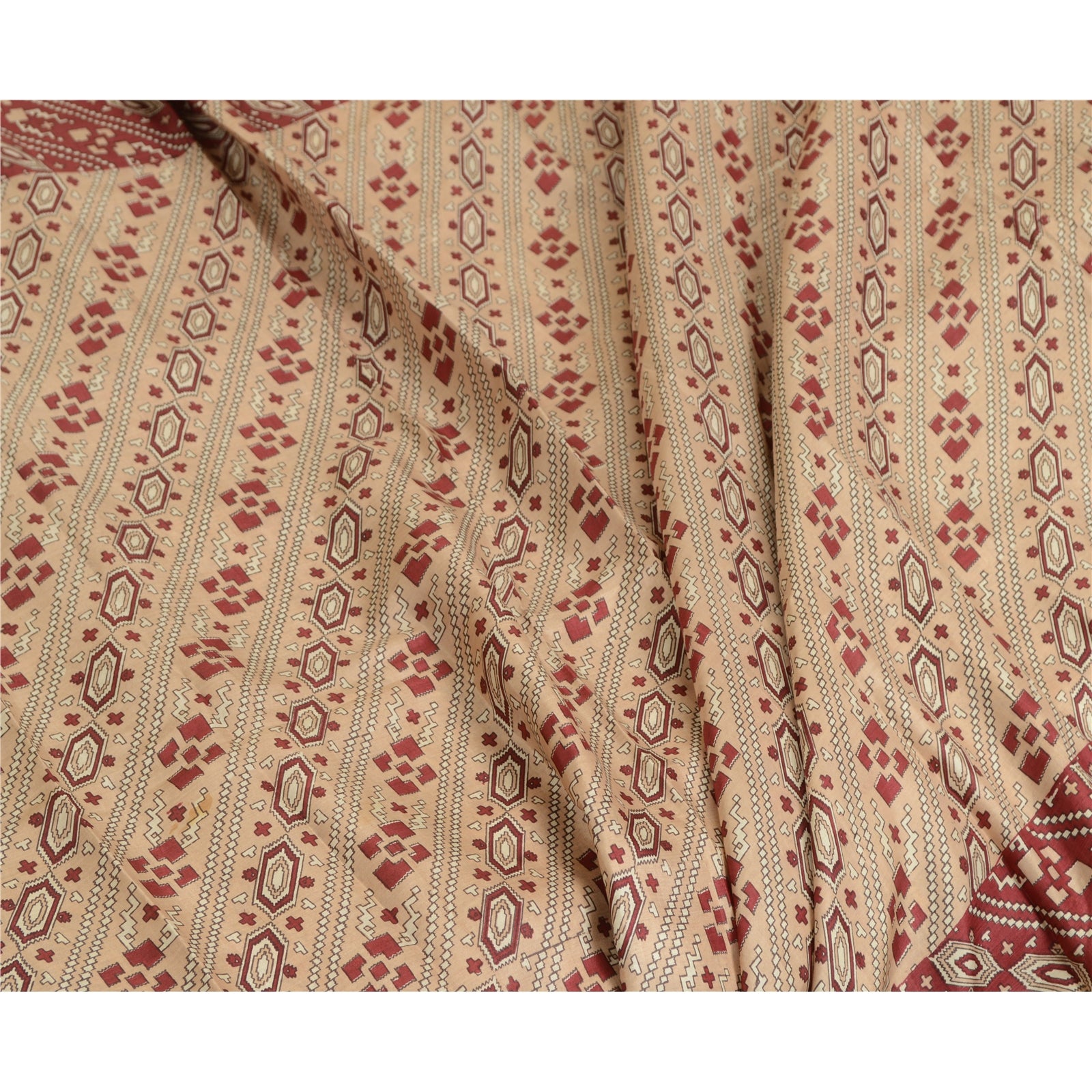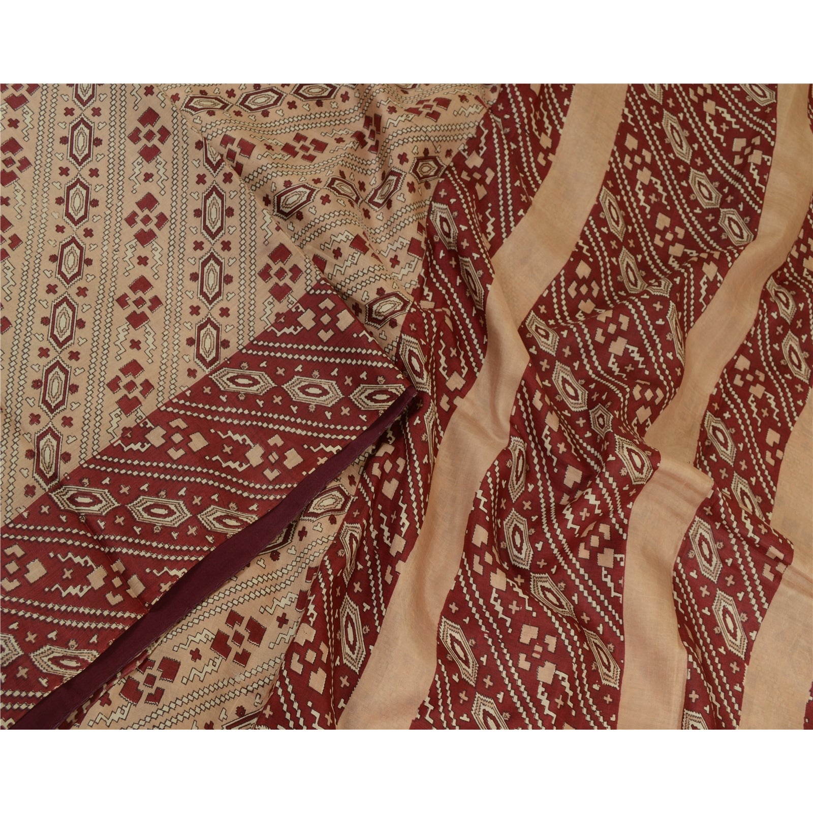 Sanskriti Vintage Sarees Indisk Brun/Rød Ren Silke Trykt Sari Håndværk Bæredygtigt Stoff