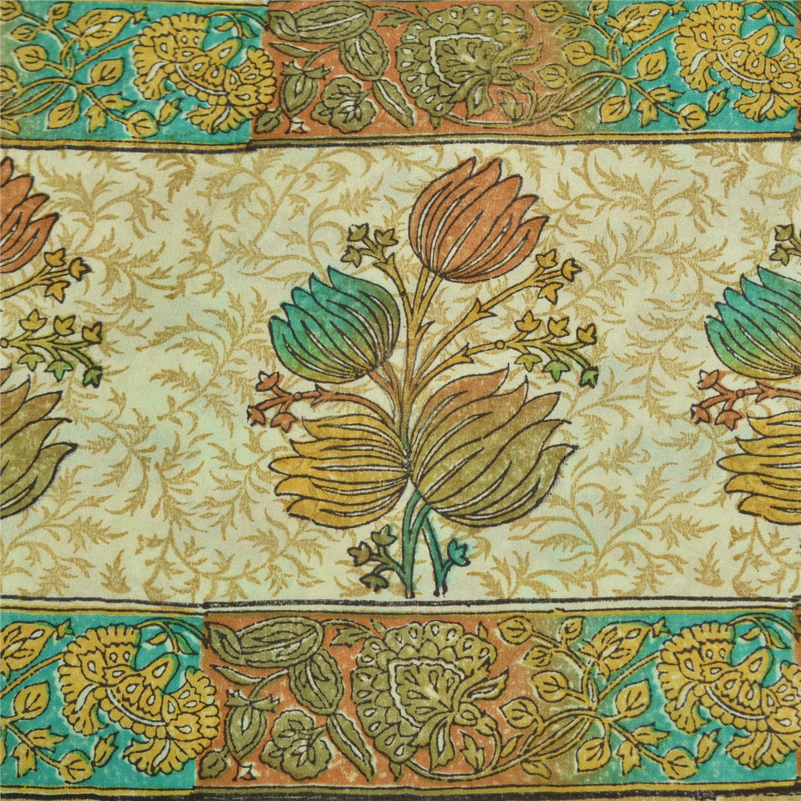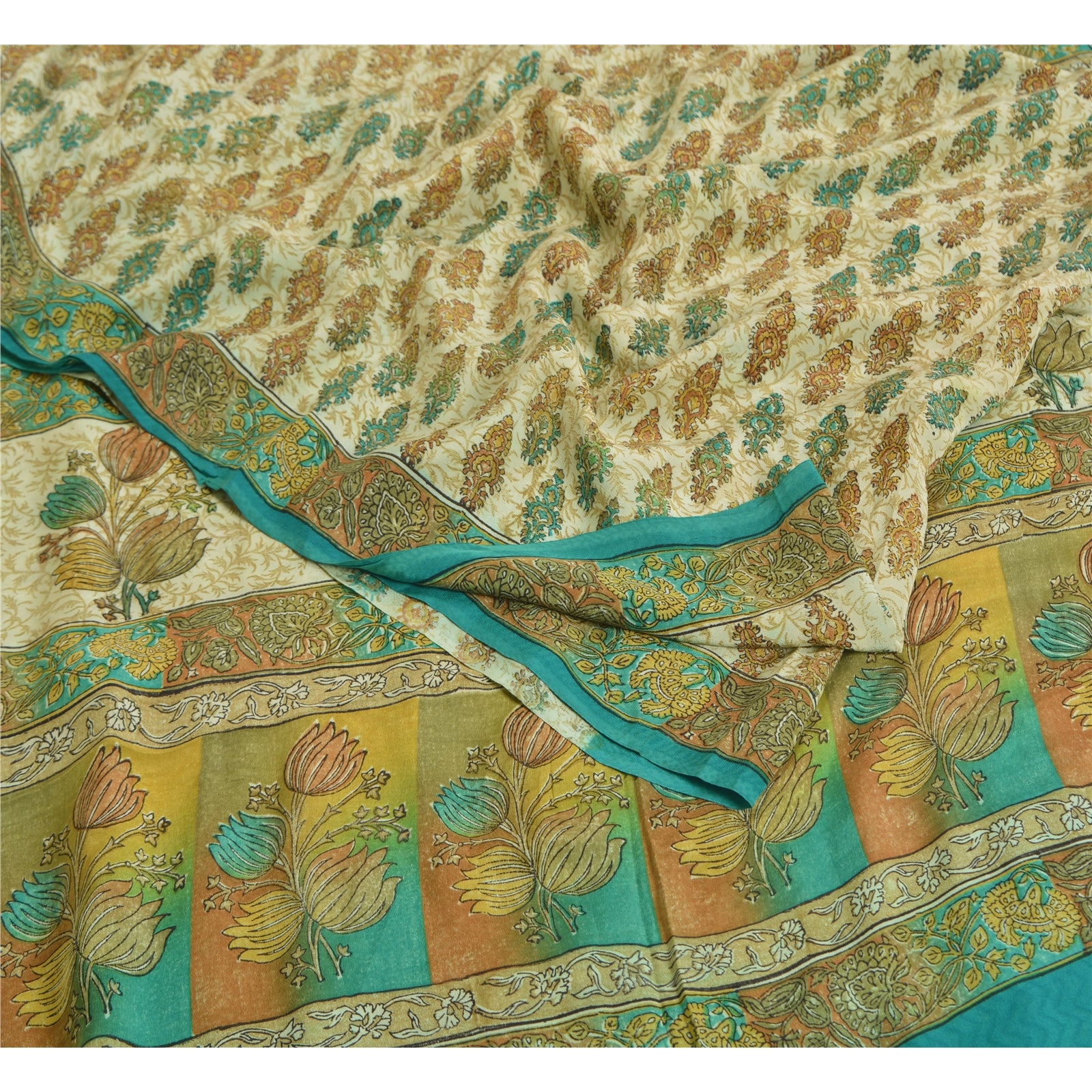 Sanskriti Vintage Sarees Indisk Cremefarvet Ren Crepe Silke Trykt Sari Håndværk Bæredygtigt Stof