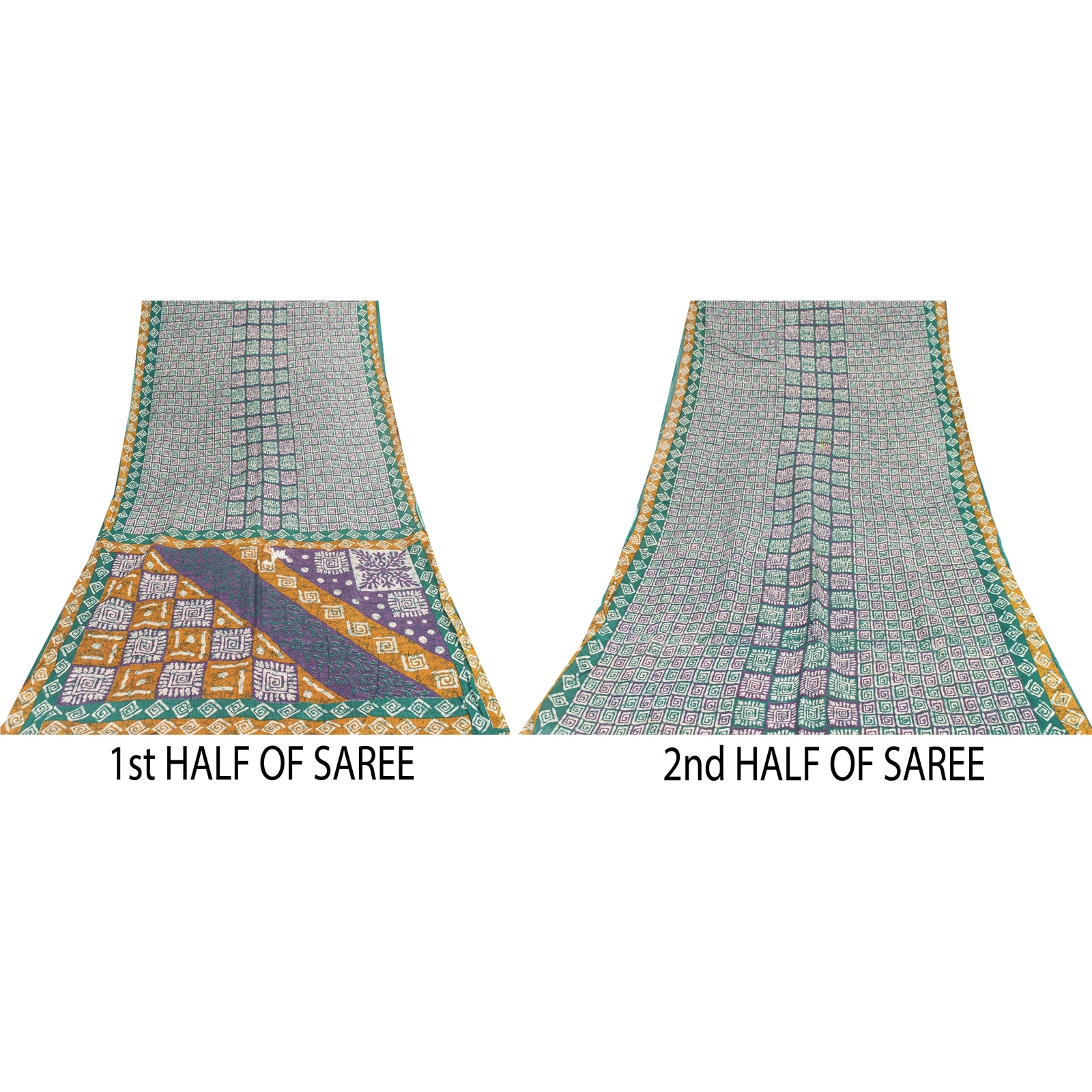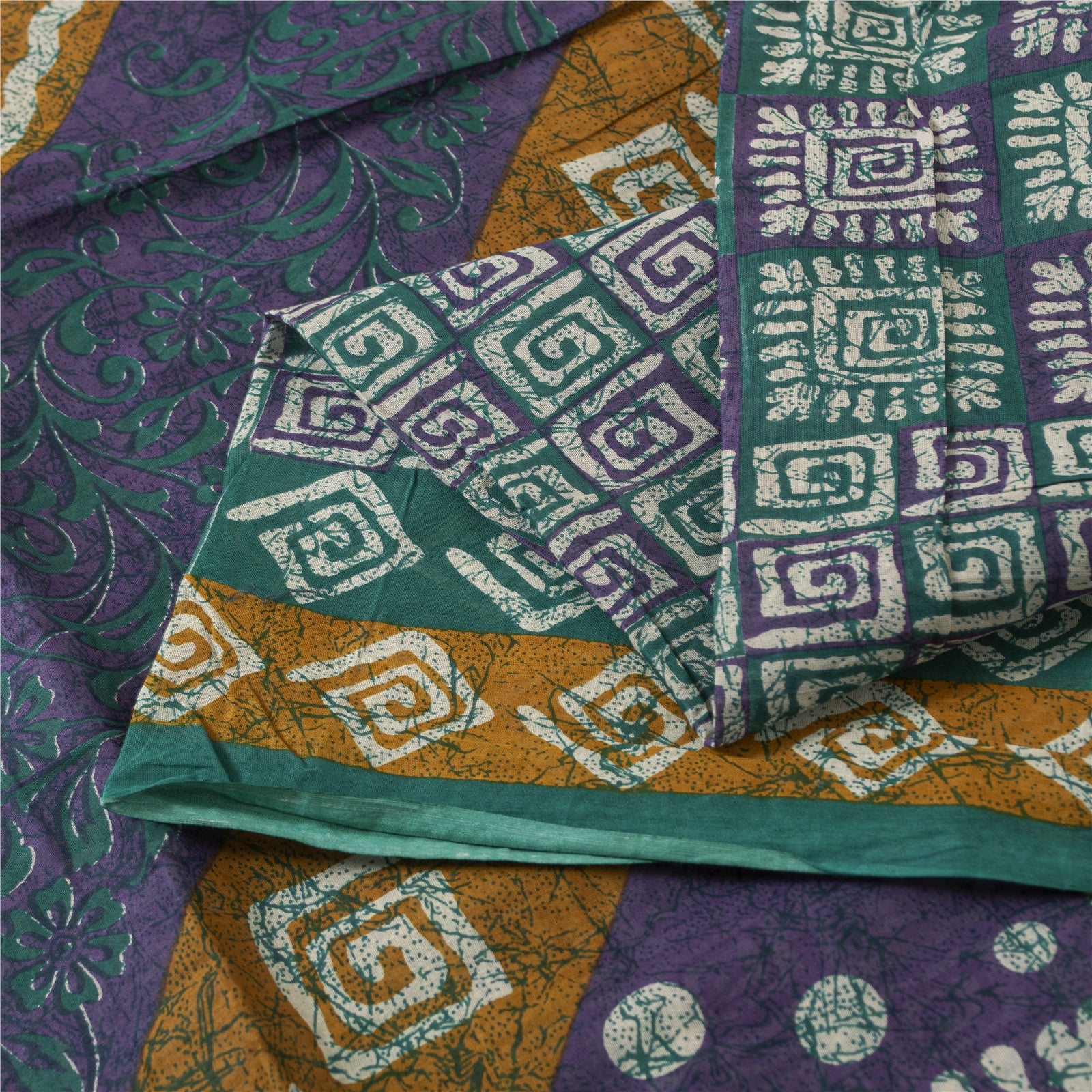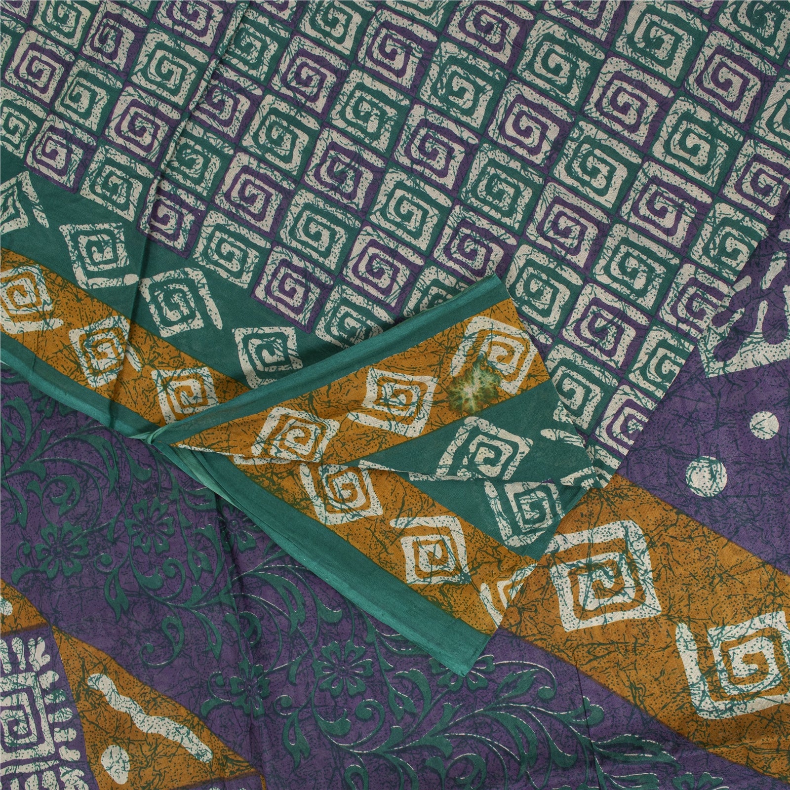 THE ITEM COLOR OR SHADE MAY BE DARKER OR LIGHTER THAN THE PICTURE. Attractive green colored pure cotton printed sari. Pallu & Border has printed floral & geometric design. Similar design in center part of saree.. This unique vintage saree can be used for various crafting ideas even if you don't want to use it as a sari. Design a dress, use it as a as window dressing, upholstery, sarongs, throw, dress making and table linen much more. Let your creative juices flow and use this decorated fabric in multiple fashion. Shipping Note: 'International buyers please note: Import duties, taxes, and charges are not included in the item price or postage cost. These charges are the buyer's responsibility. Please check with your country's customs office to determine what these additional costs will be prior to bidding or buying. Buyer will pay custom duty/tax. It is calculated and charged differently by every country. As a seller I do not have any control over it. VAT or sales tax is calculated by the platform at the time of checkout. Customs charge is payable at the time of delivery.' PCS-7399