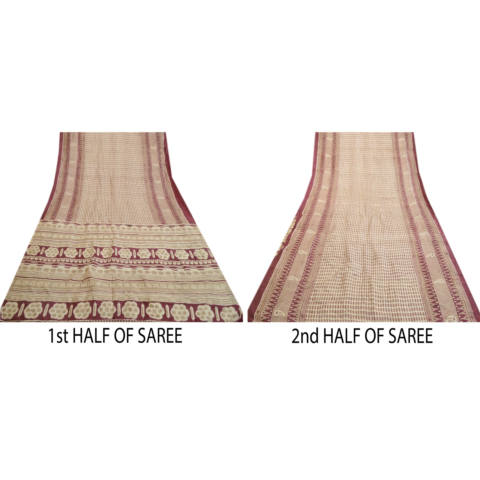 Sanskriti Vintage Sarees Indisk Elfenbenstrykt Ren Silke Sari Blødt Håndværk Bæredygtigt Stoff