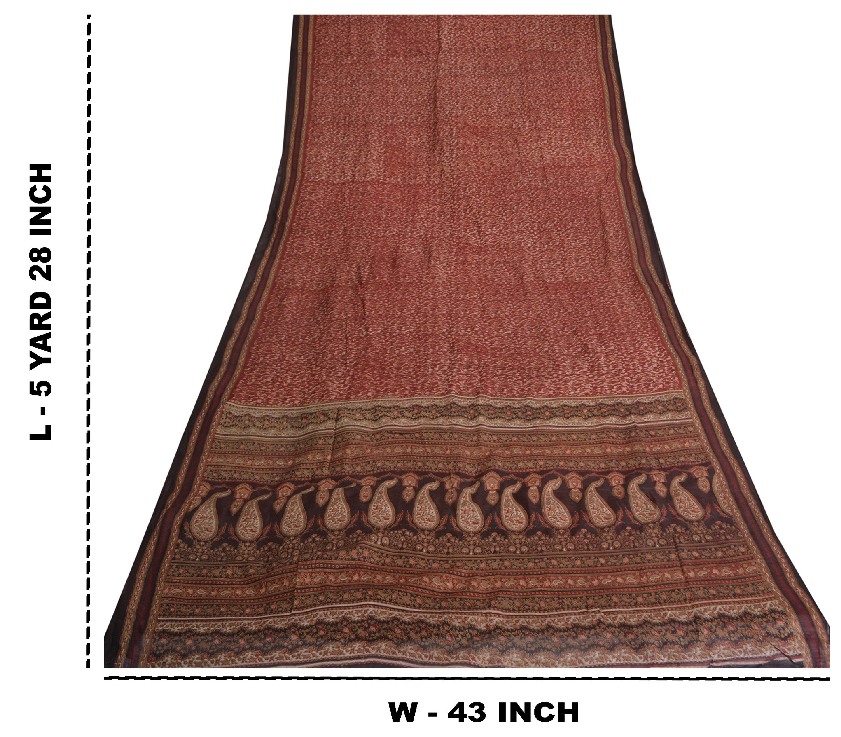 Sanskriti Vintage Sarier Indisk Rød 100% Ren Silke Trykt Sari 5yd Håndværk Bæredygtigt Stoff