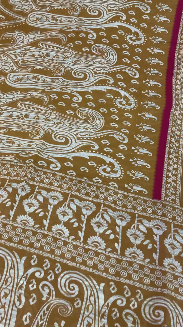 VARENS FARVE ELLER NUANCE KAN VÆRE MØRKERE ELLER LYSERE END BILLEDET. Attraktiv sari i ren bomuld med tryk i safranfarvet. Pallu & Border har trykt blomster- og paisleydesign. Lignende design i den midterste del af sarien. Denne unikke vintage sari kan bruges til forskellige kreative idéer, selvom du ikke ønsker at bruge den som sari. Design en kjole, brug den som vinduesdekoration, polstring, saronger, tæppe, kjolesyning og bordlinned og meget mere. Lad dine kreative safter flyde, og brug dette dekorerede stof på mange måder. Forsendelsesnotat: Internationale købere bedes bemærke: Importafgifter, skatter og gebyrer er ikke inkluderet i varens pris eller portoomkostninger. Disse gebyrer er købers ansvar. Kontakt venligst dit lands toldkontor for at finde ud af, hvad disse ekstra omkostninger vil være, inden du byder eller køber. Køber betaler told/skat. Det beregnes og opkræves forskelligt fra land til land. Som sælger har jeg ingen kontrol over det. Moms eller salgsafgift beregnes af platformen ved kassen. Toldgebyret skal betales ved levering. PCS-6932