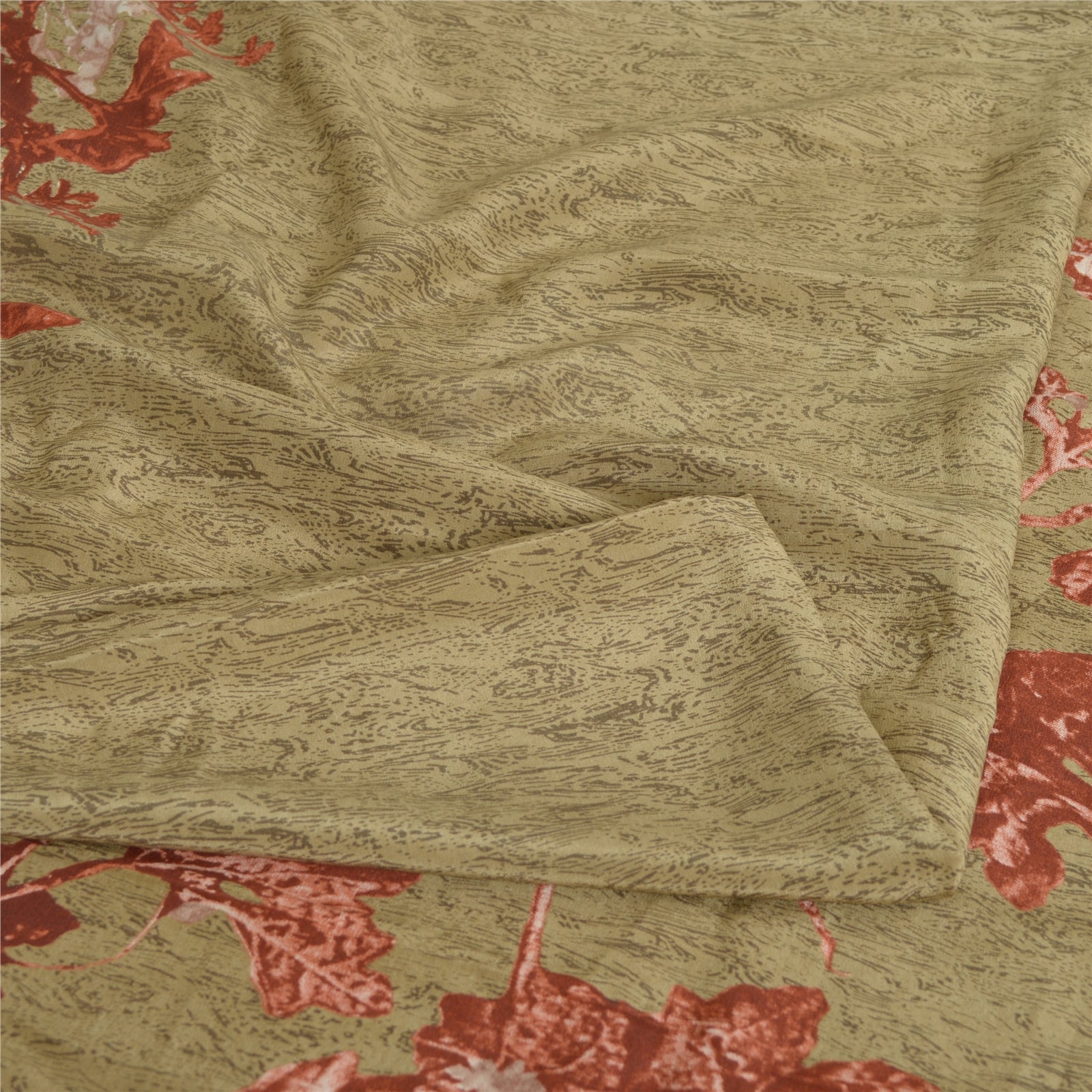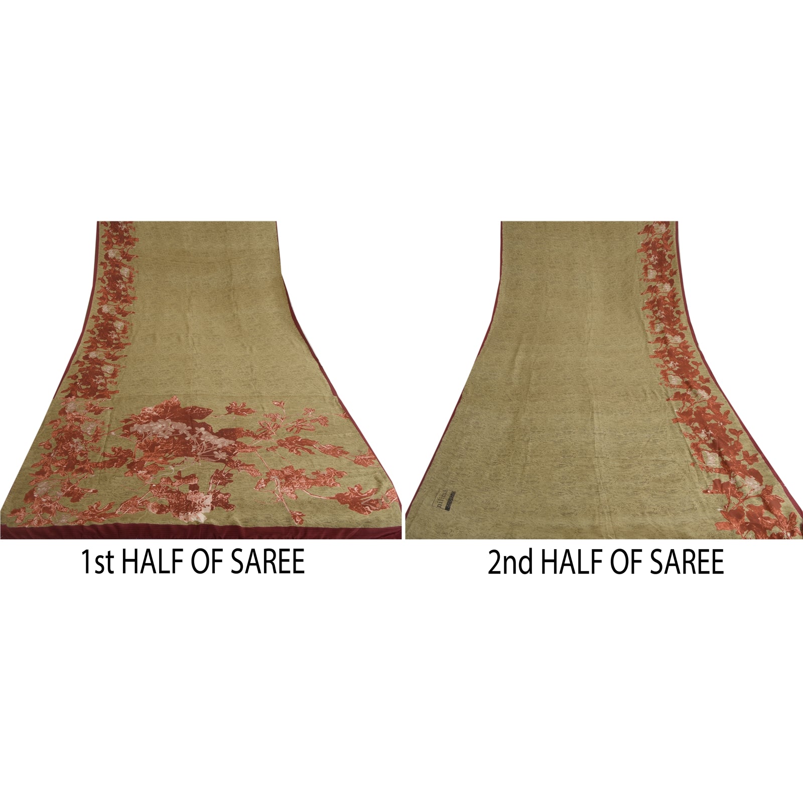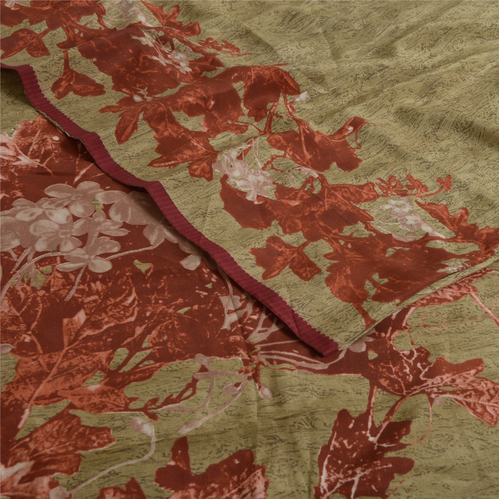 Sanskriti Vintage Sarees Olivengrøn/Rød Print Ren Crepe Silke Sari Håndværksmæssigt Bæredygtigt Stoff