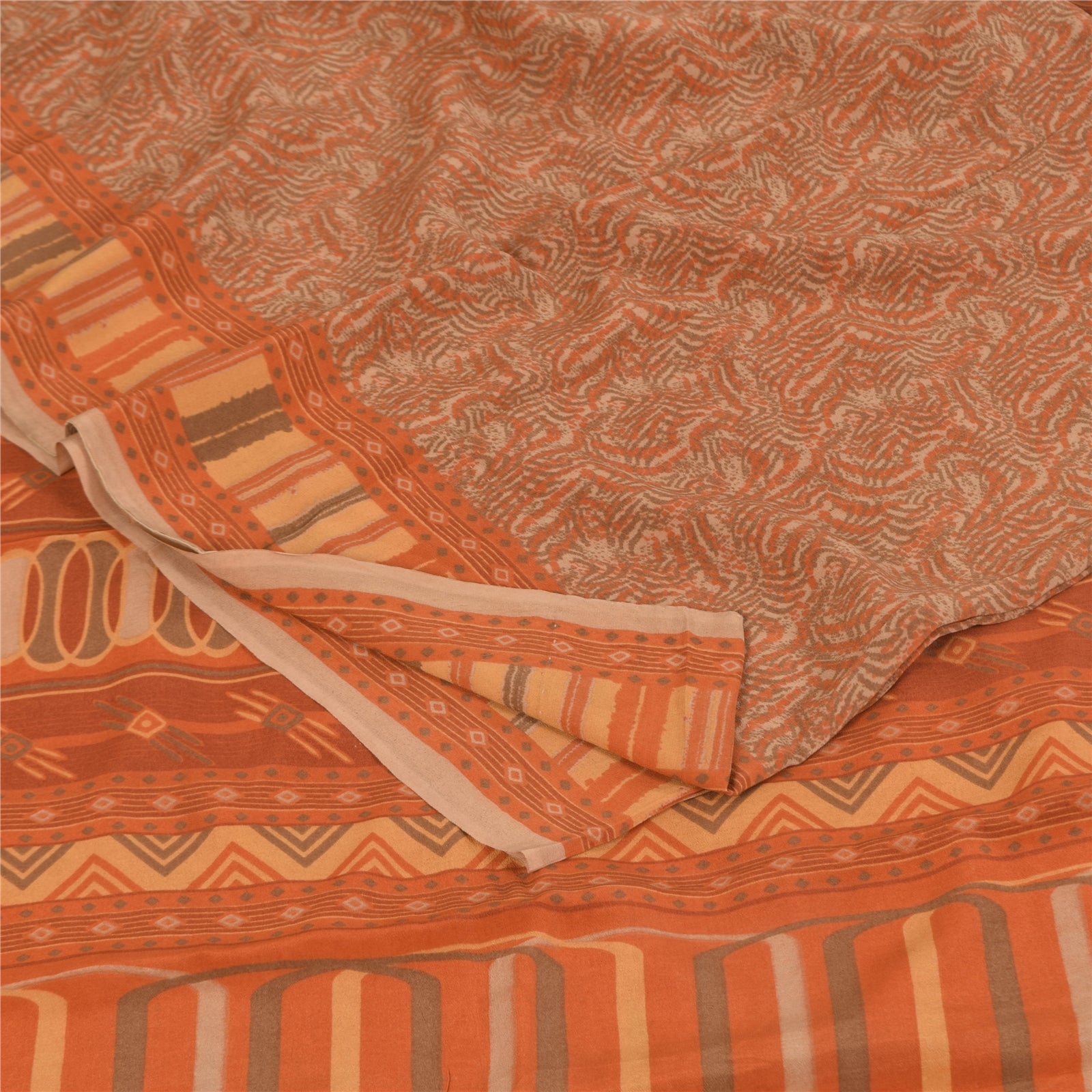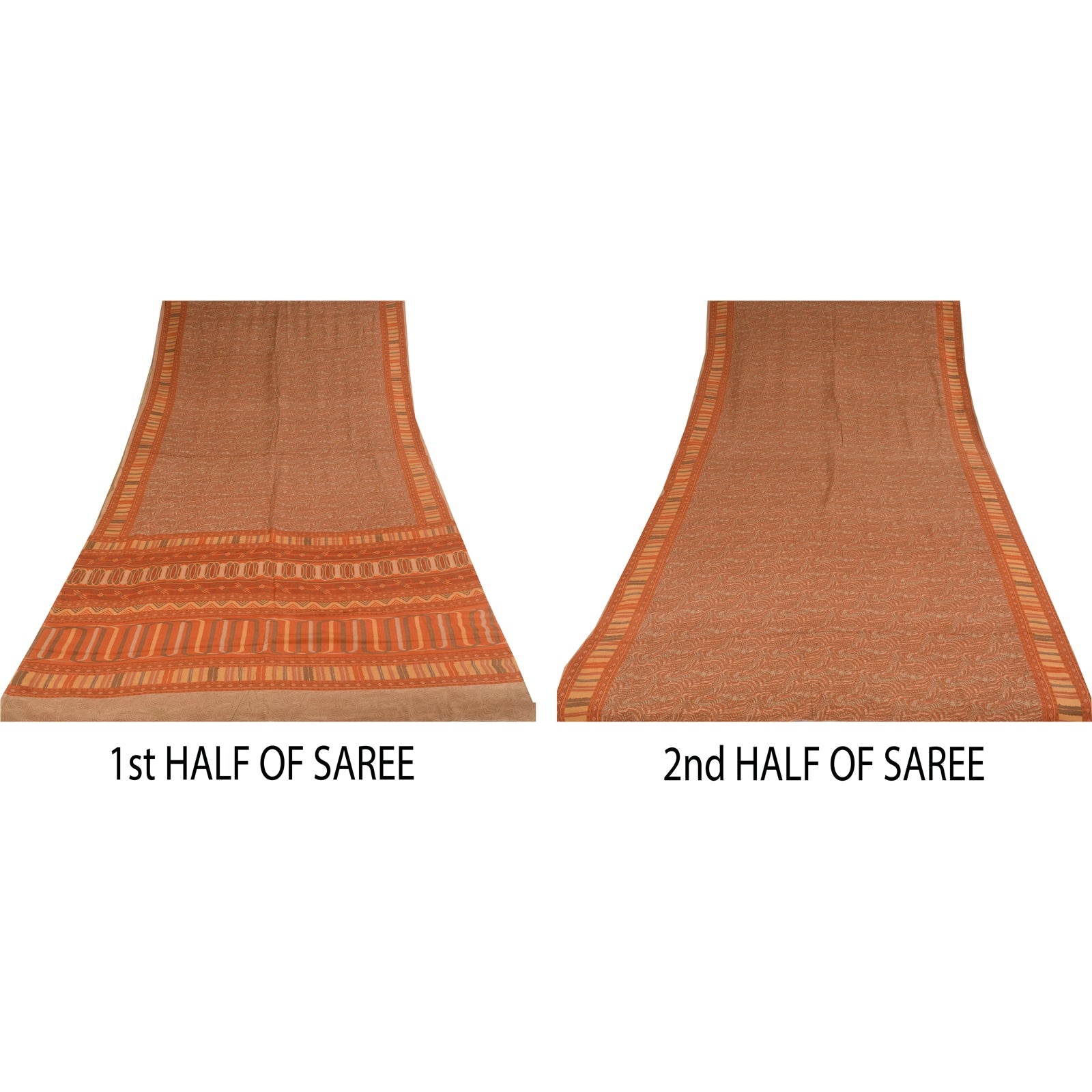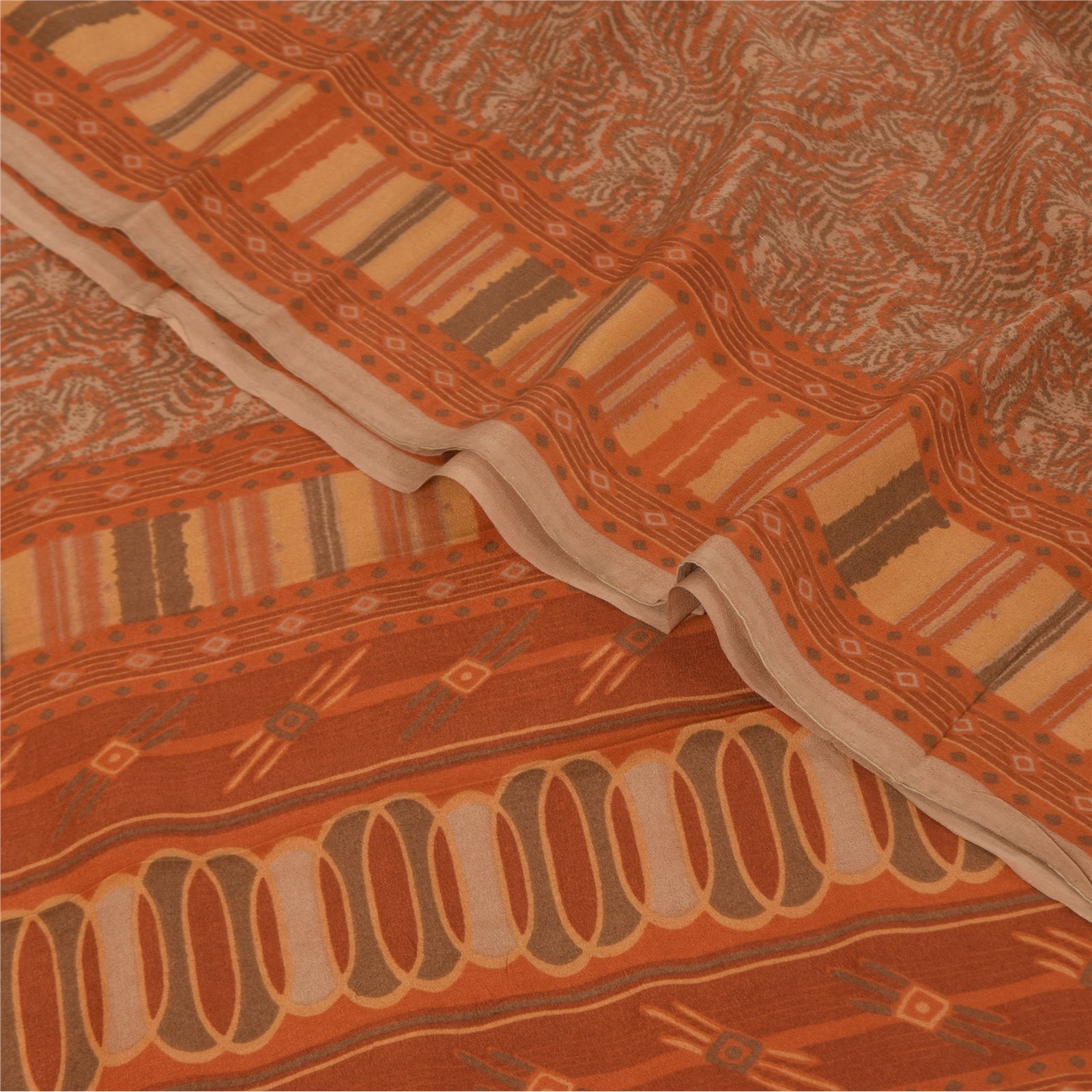 Sanskriti Vintage Sarier Orange/Brun Ren Crepe Trykt Sari 5+ yard Håndværk Bæredygtigt Stoff