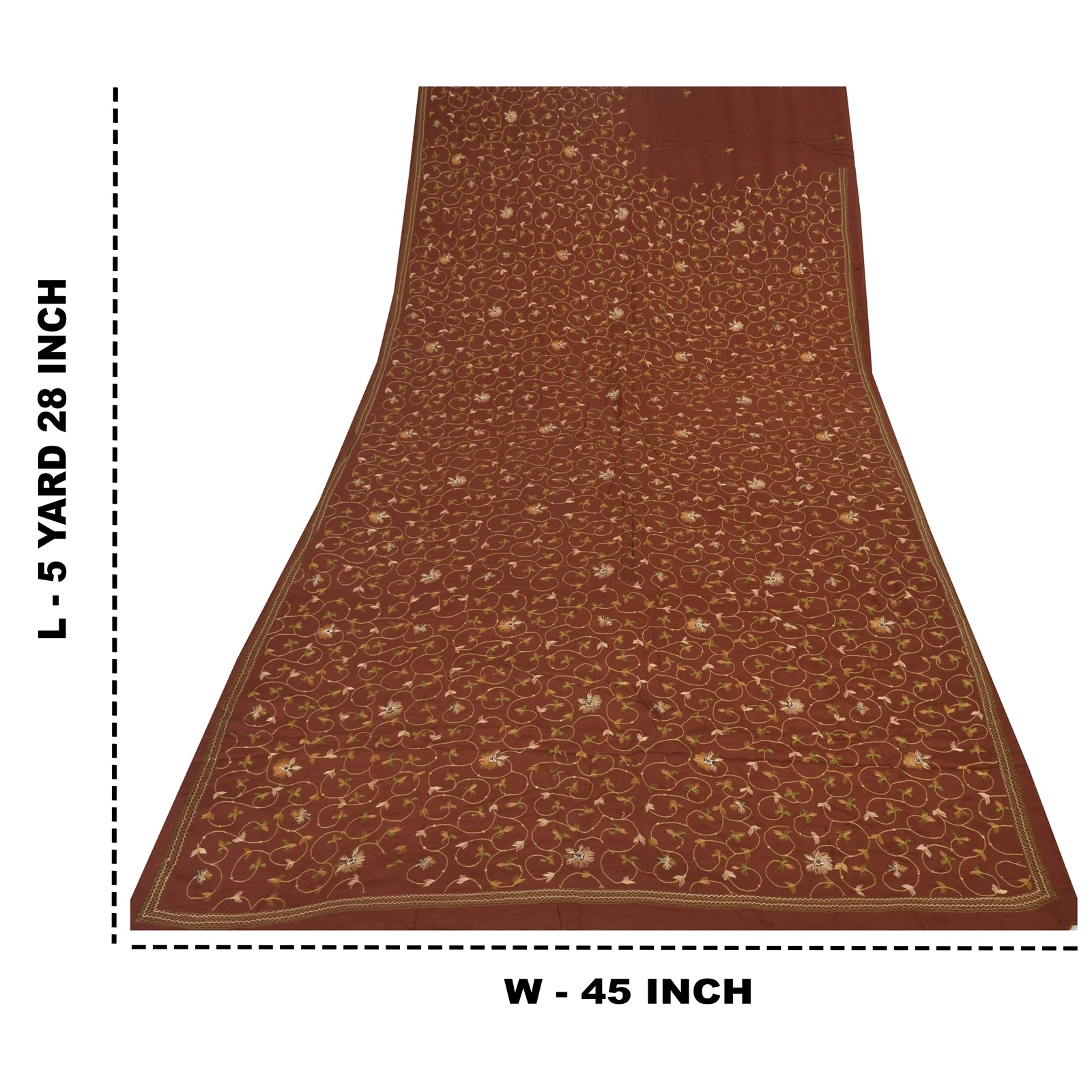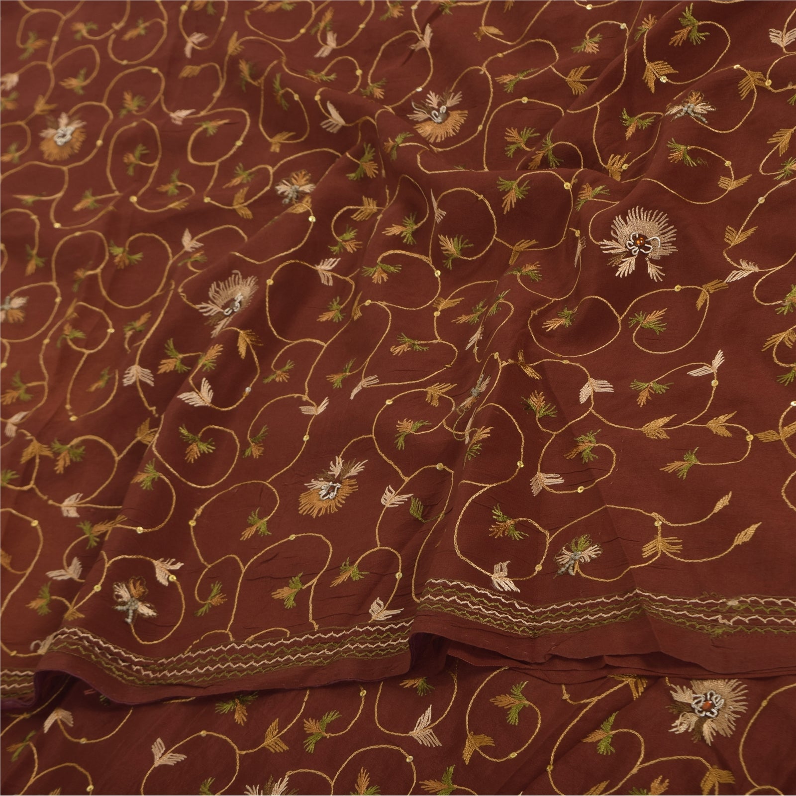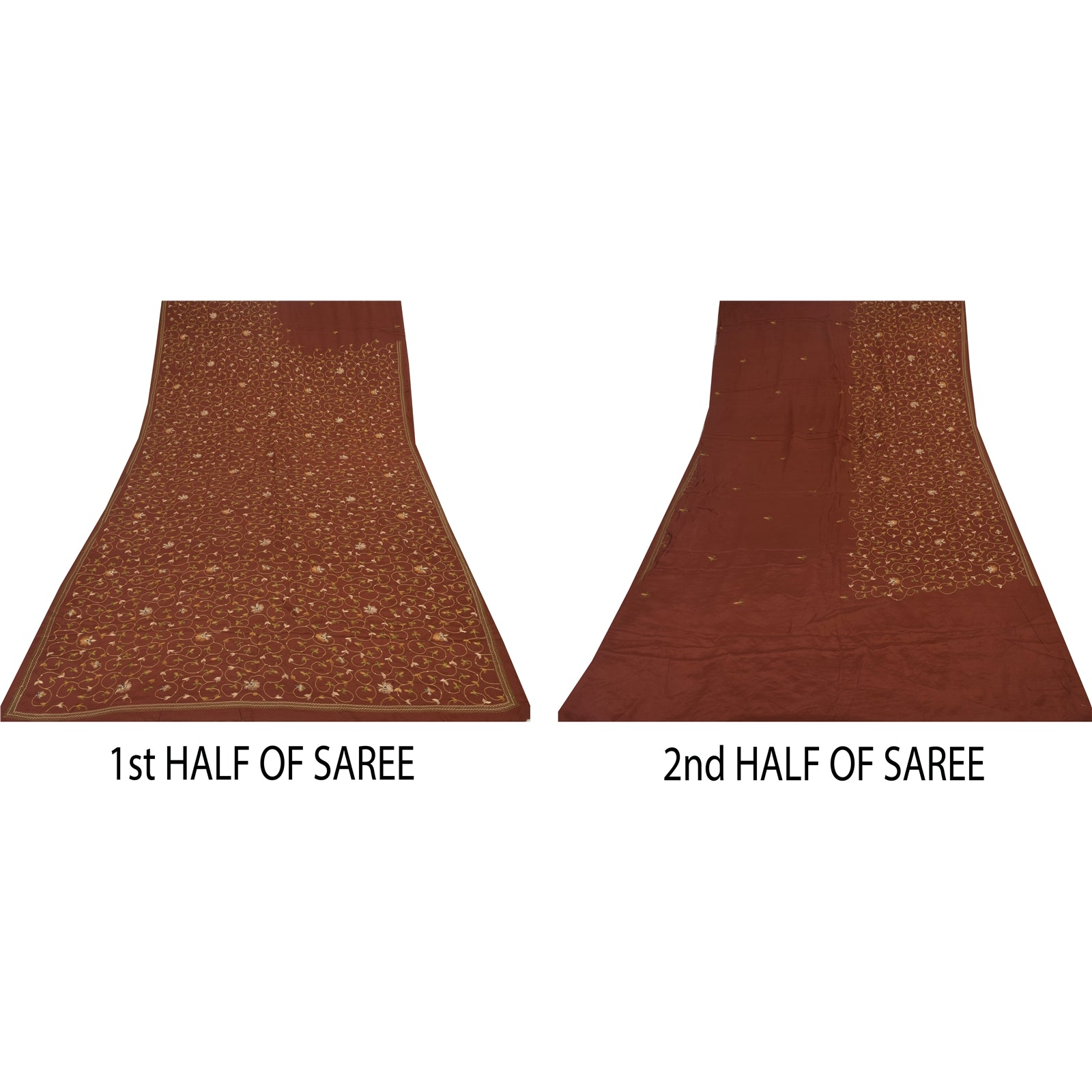 Sanskriti Vintage Sarier Orange Håndperlet Suzani Ren Crepe Sari 5+ yards Bæredygtigt Stof