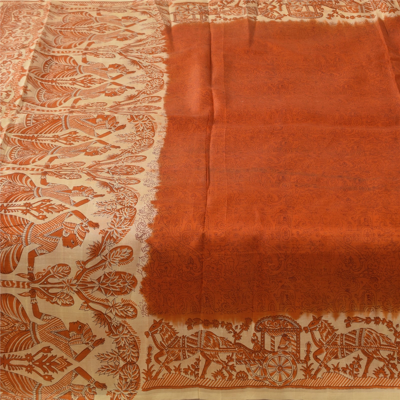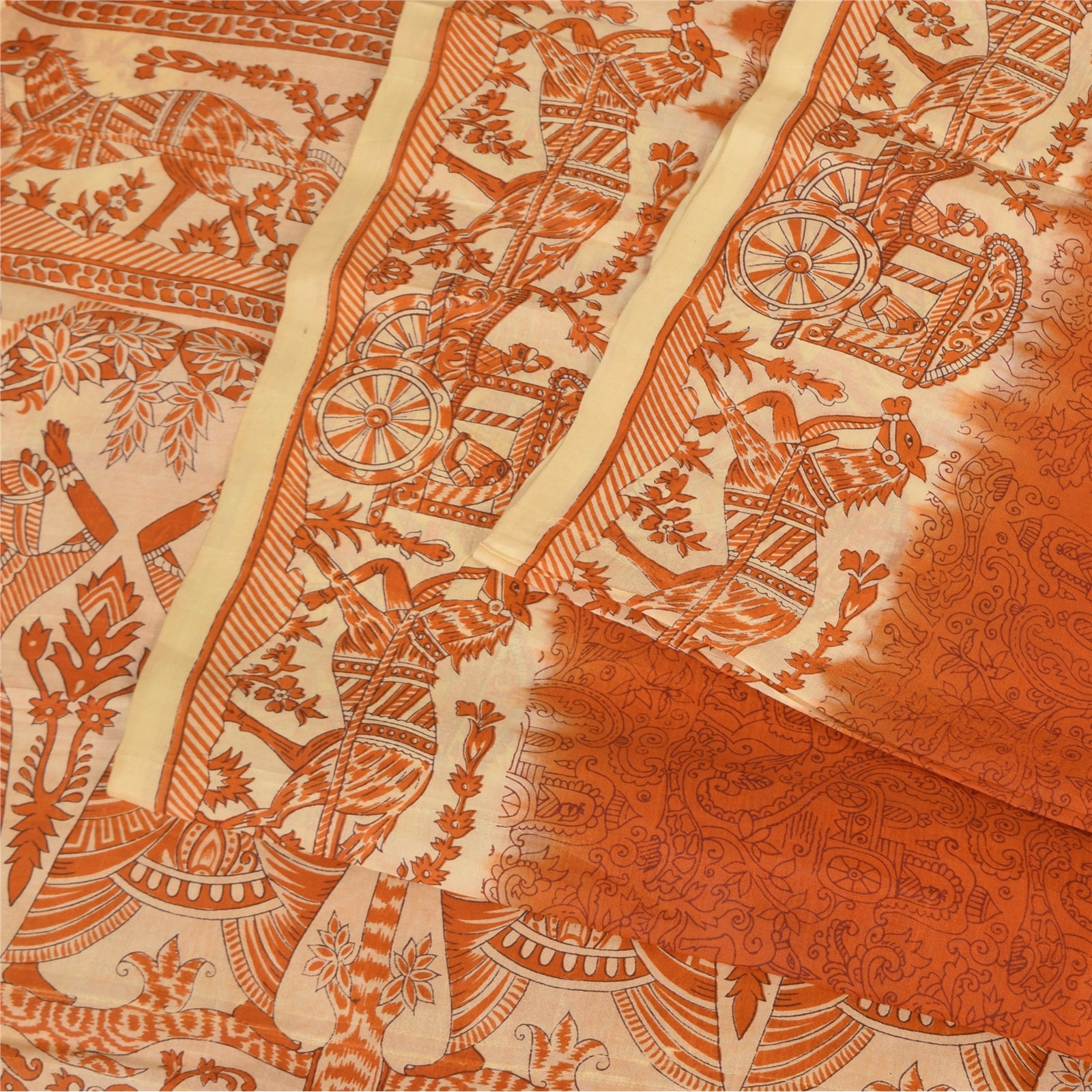 Sanskriti Vintage Sarier Orange Mennesketrykt Ren Silke Sari 5+ yard Håndværk Bæredygtigt Stoff