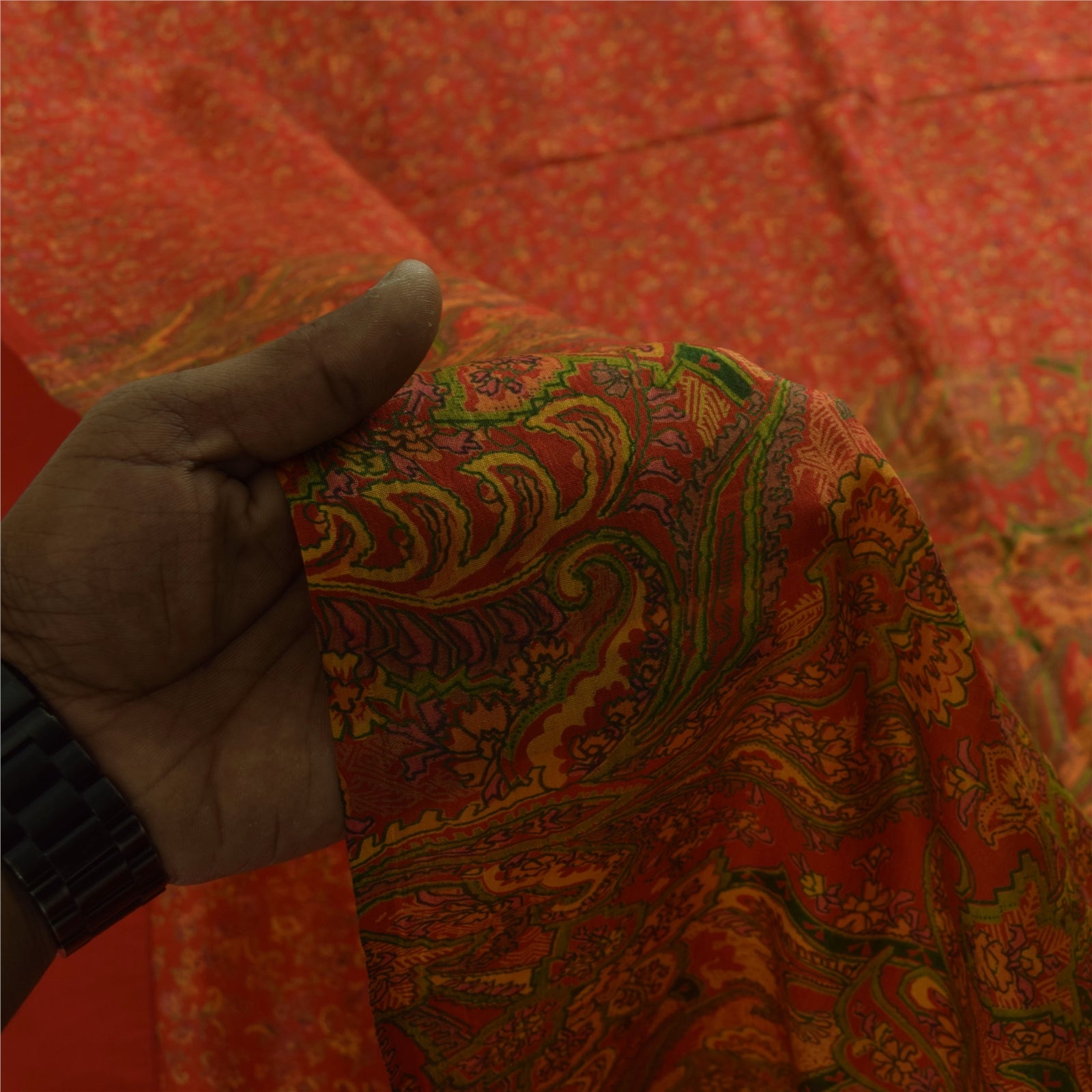 Sanskriti Vintage Sarees Orange Indisk Ren Silke Trykt Sari 6yd Håndværksstof