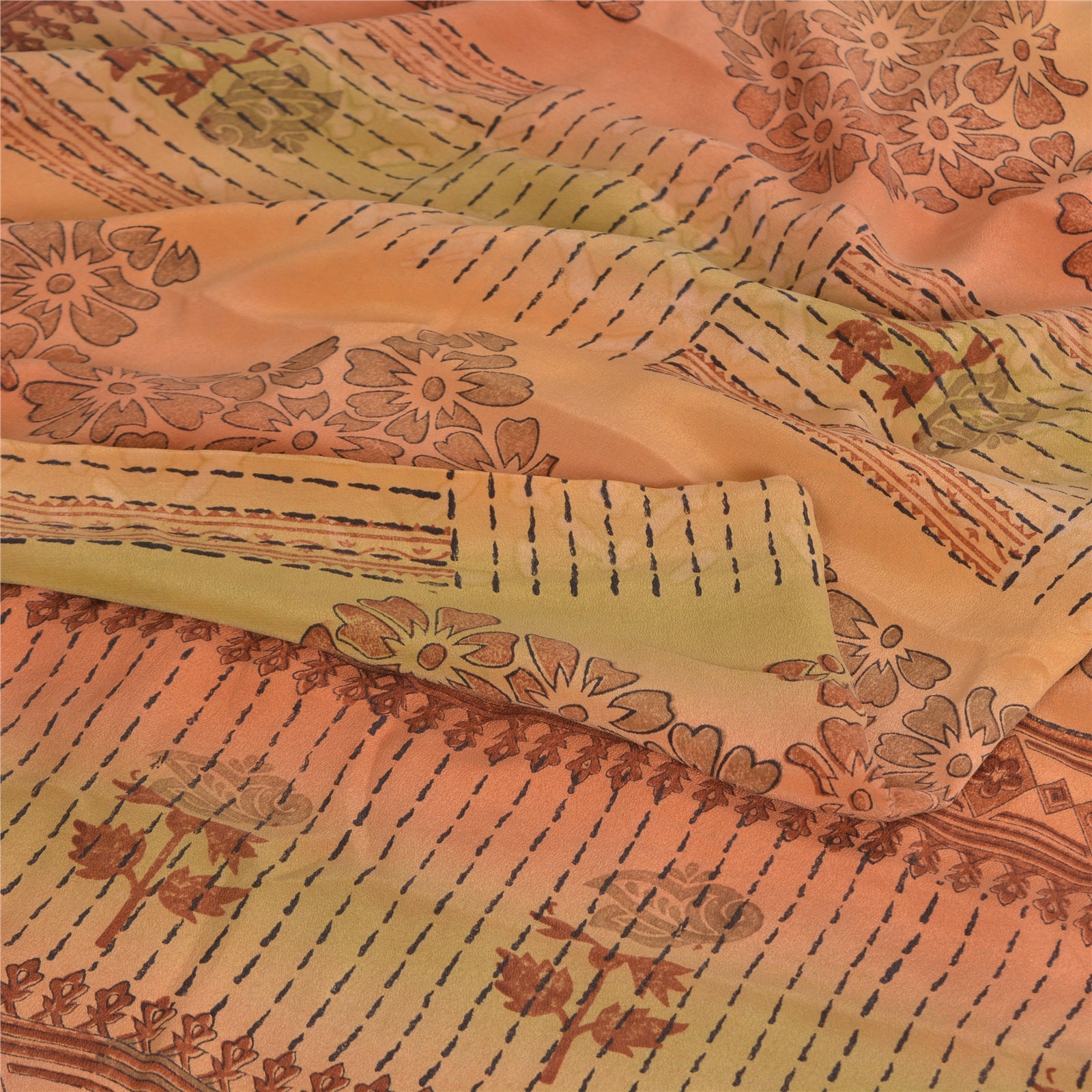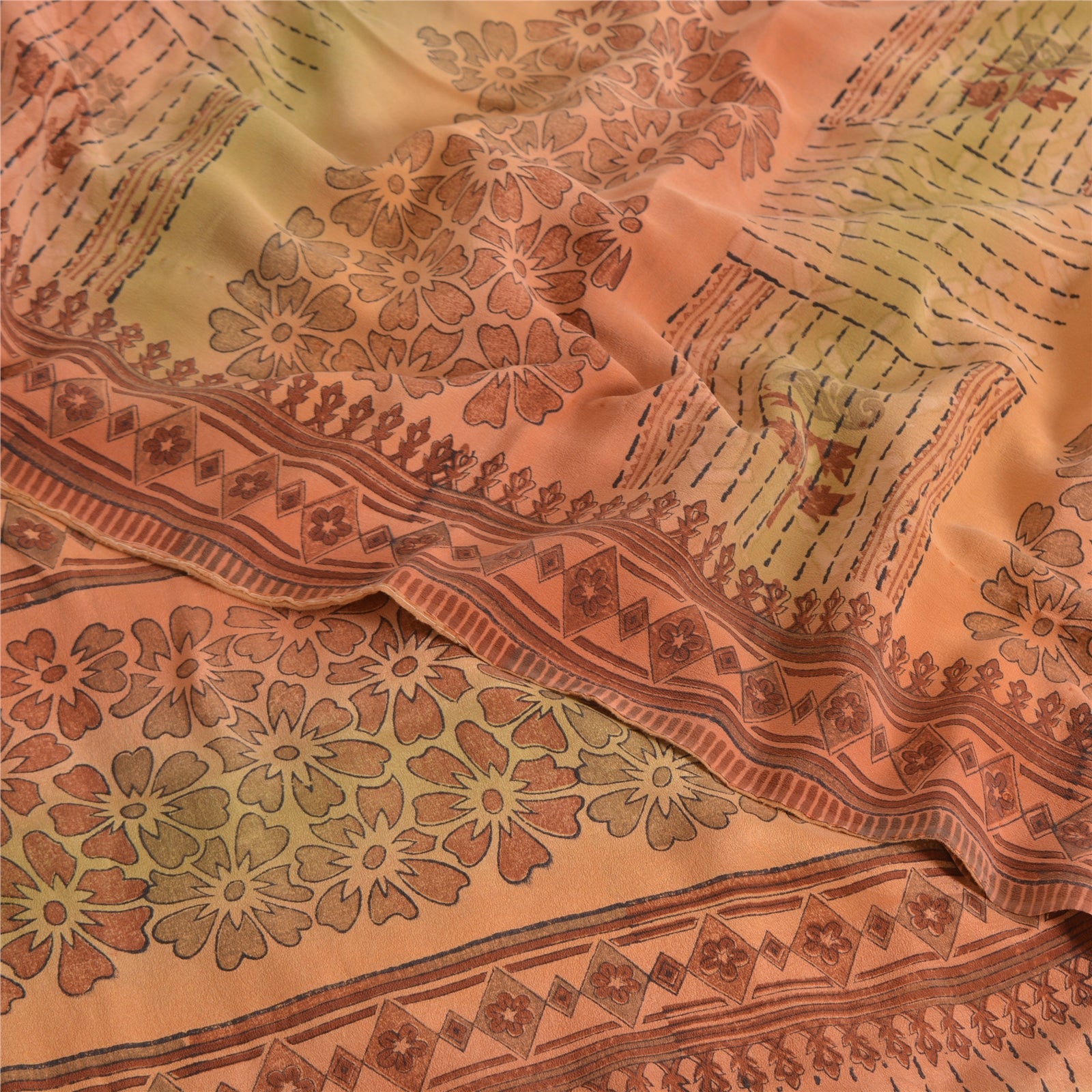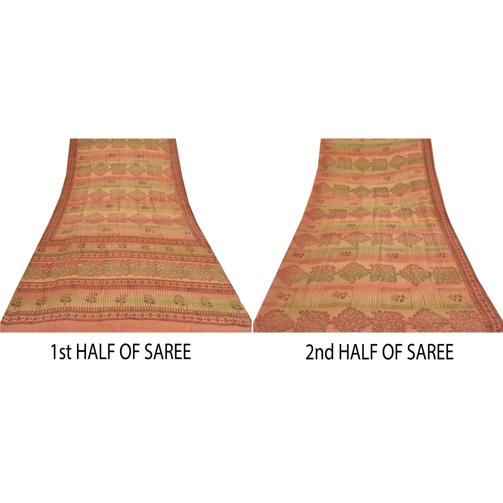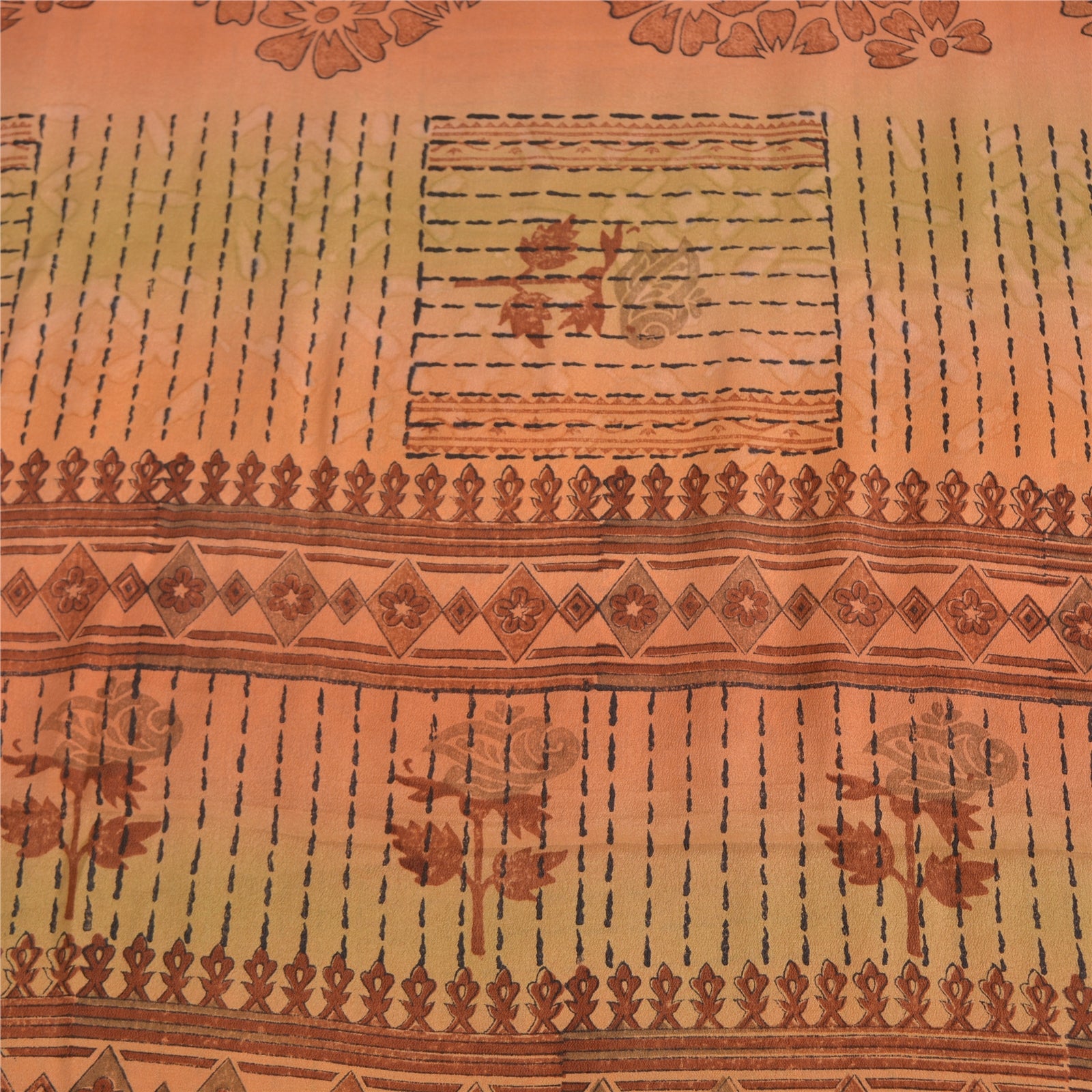 Sanskriti Vintage Sarier Orange Ren Crepe Silke Trykt Sari 5yd Håndværk Bæredygtigt Stoff