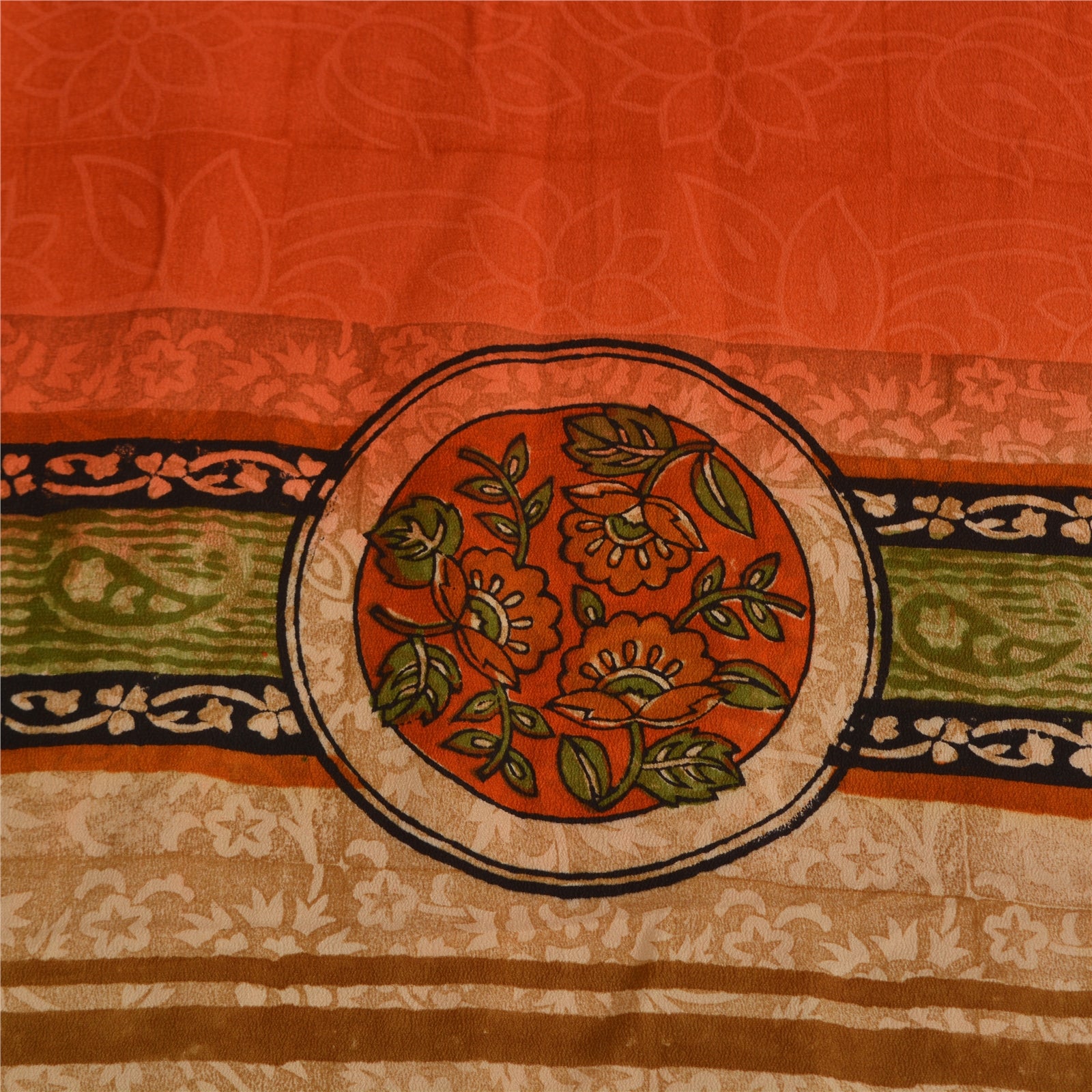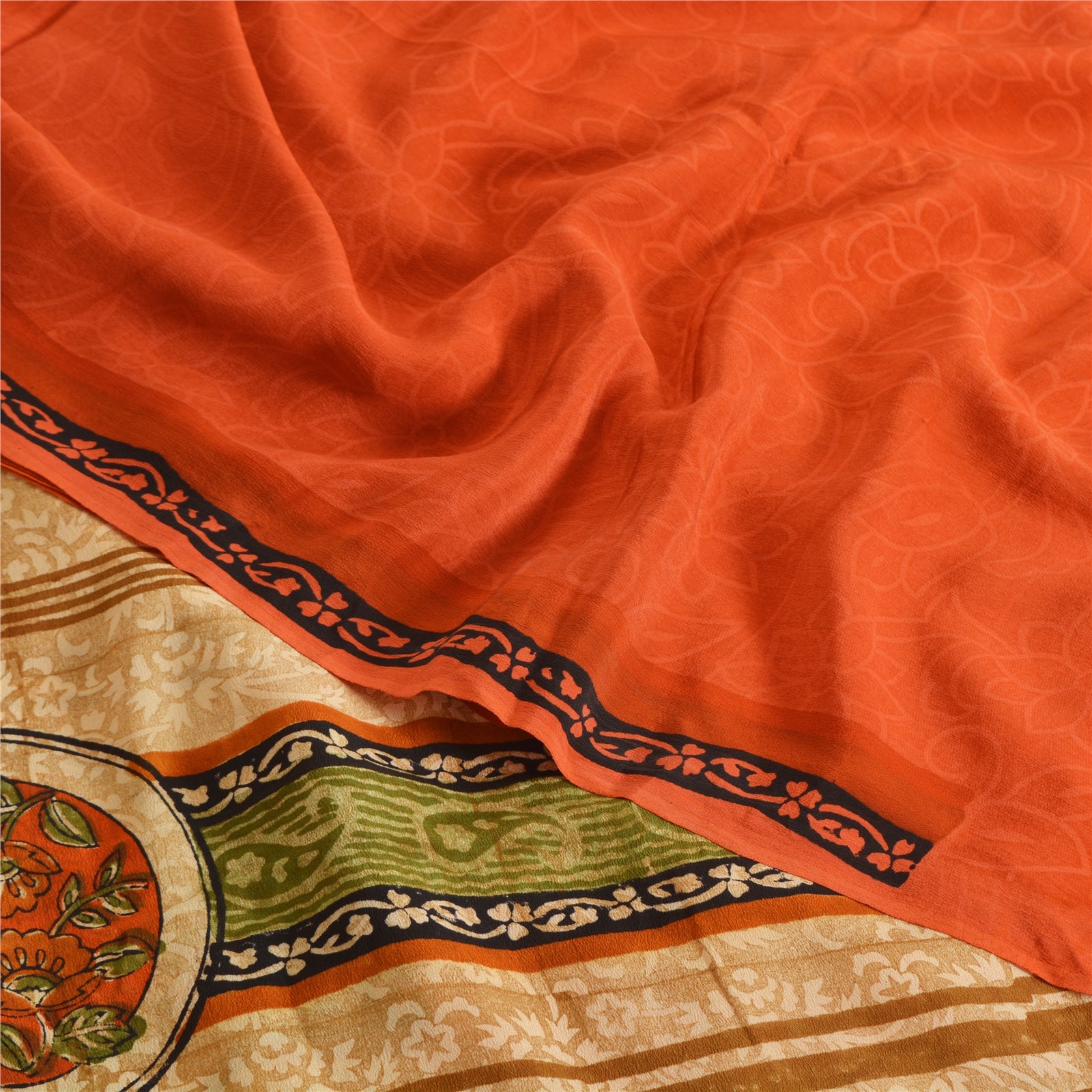 Sanskriti Vintage Sarier Orange Ren Crepe Silke Trykt Sari 5yd Håndværk Bæredygtigt Stoff