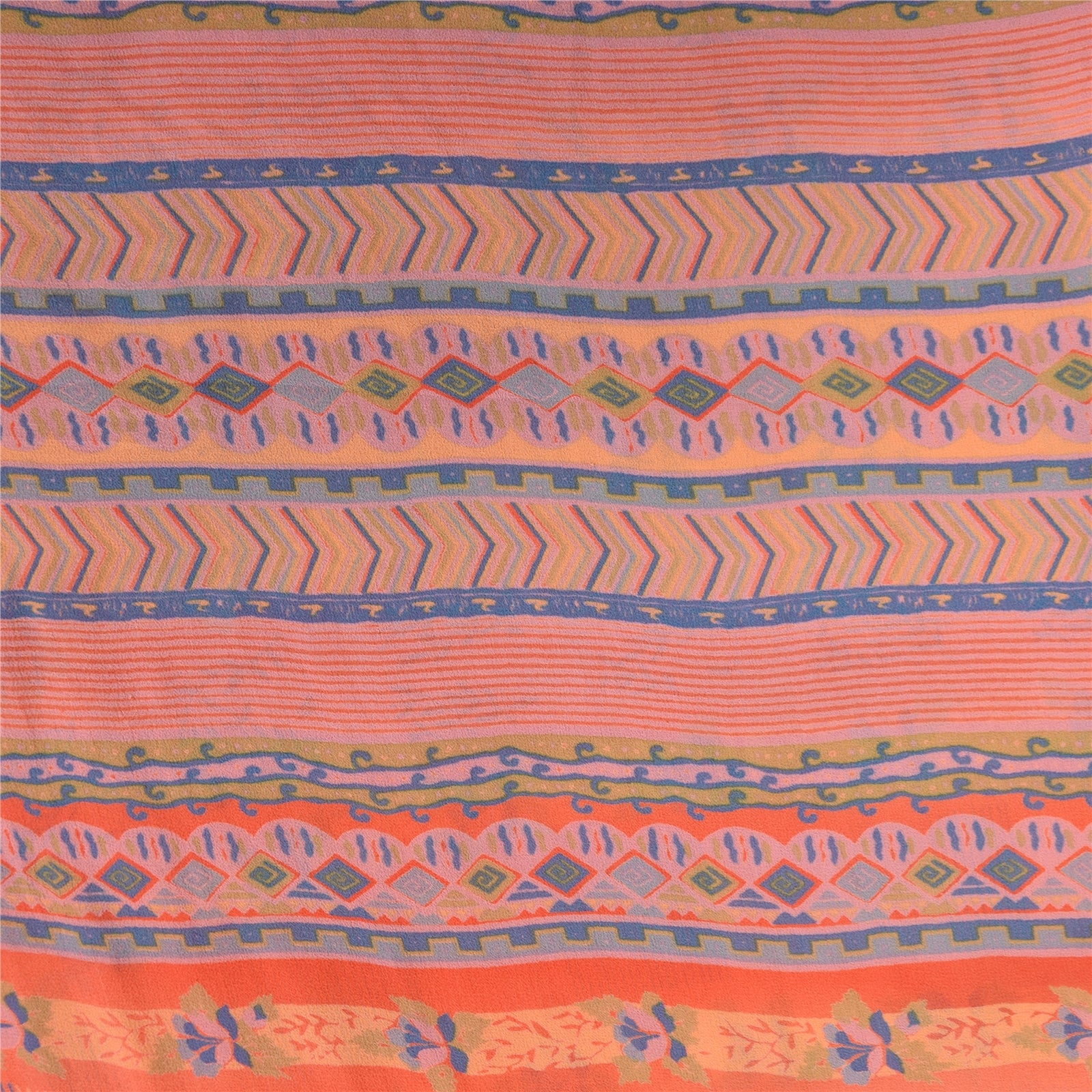Sanskriti Vintage Sarees Peach Pure Georgette Silk Print Sari 5+yd Craft Fabric
