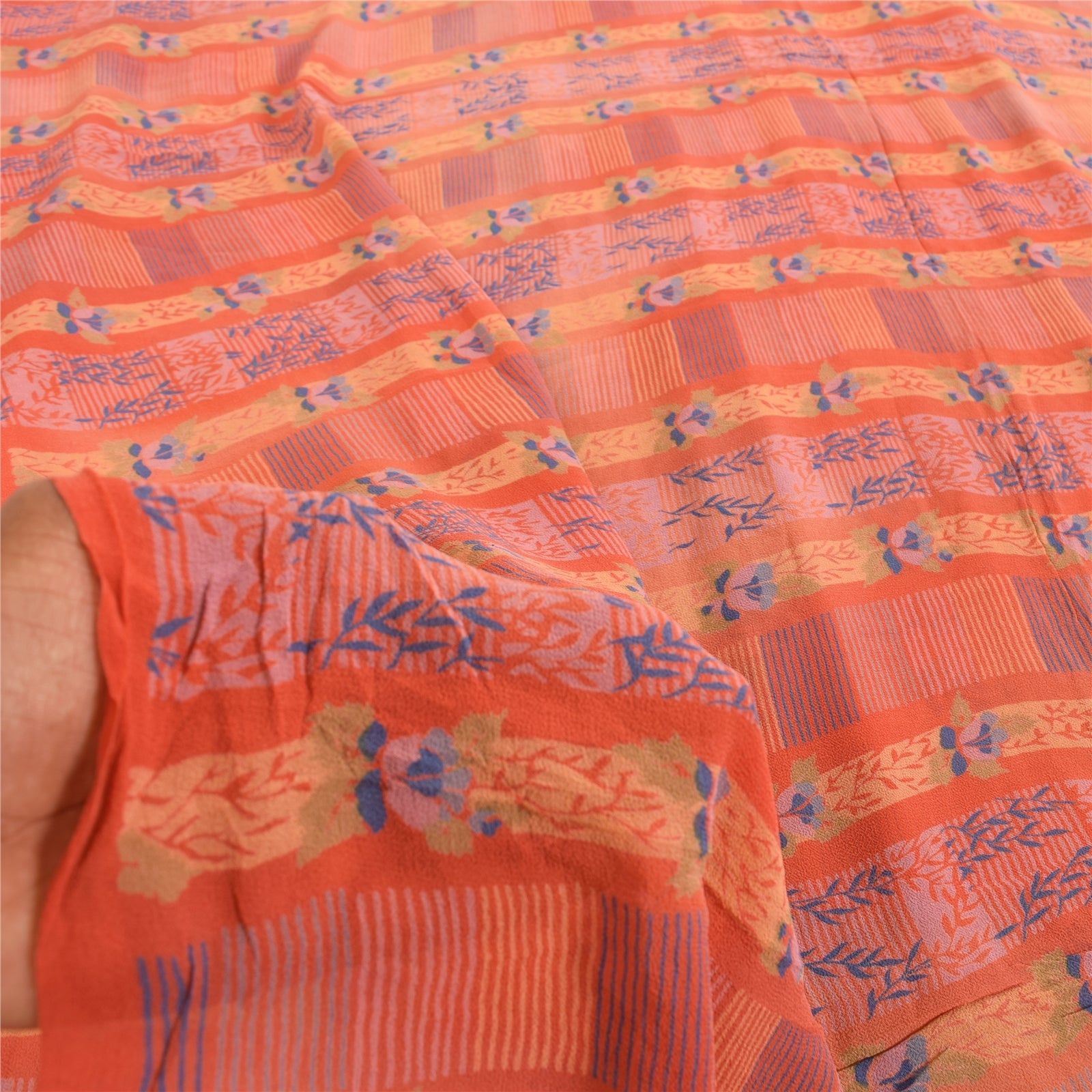 THE ITEM COLOR OR SHADE MAY BE DARKER OR LIGHTER THAN THE PICTURE.' Beautiful dark peach colored pure georgette silk printed saree. Pallu & Border has printed floral & lines design. Similar design in center part of saree. What is special about this saree? Brilliant design on soft fabric is really enhancing the beauty of the saree. This unique vintage saree can be used for various crafting ideas even if you don't want to use it as a sari. Design a dress, use it as a as window dressing, upholstery, sarongs, throw, dress making and table linen much more. Let your creative juices flow and use this decorated fabric in multiple fashion. International buyers please note: Import duties, taxes, and charges are not included in the item price or postage cost. These charges are the buyer's responsibility. Please check with your country's customs office to determine what these additional costs will be prior to bidding or buying.Buyer will pay custom duty/tax. It is calculated and charged differently by every country. As a seller I do not have any control over it. VAT or sales tax is calculated by the platform at the time of checkout. Customs charge is payable at the time of delivery. PRG-14689