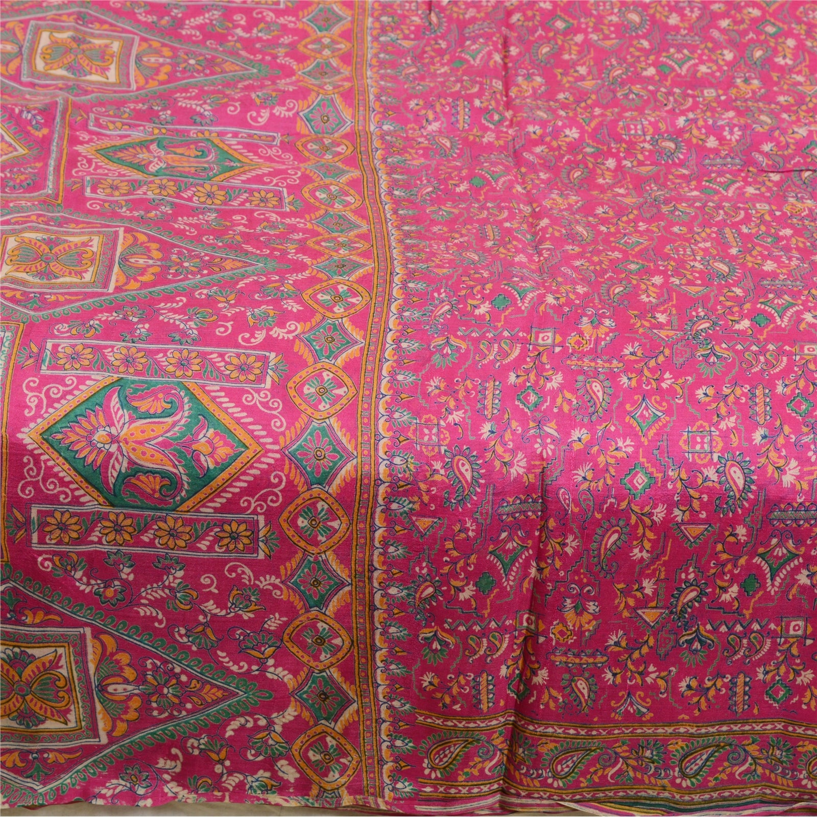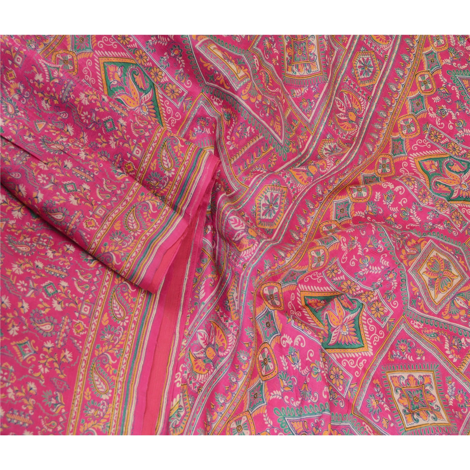 Sanskriti Vintage Sarees Pink 100% Ren Silke Trykt Sari Håndlavet 5 Yard Bæredygtigt Stof