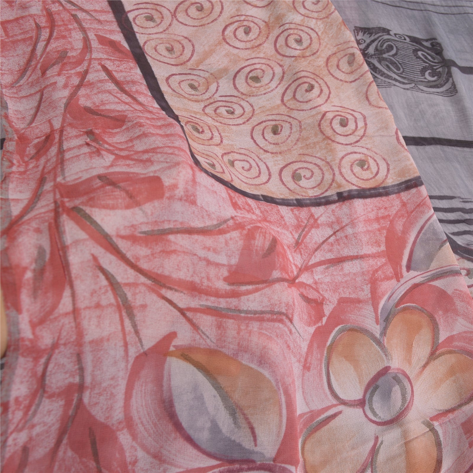 Sanskriti Vintage Sarees Pink & Gray Pure Georgette Silk Print Sari Craft Fabric