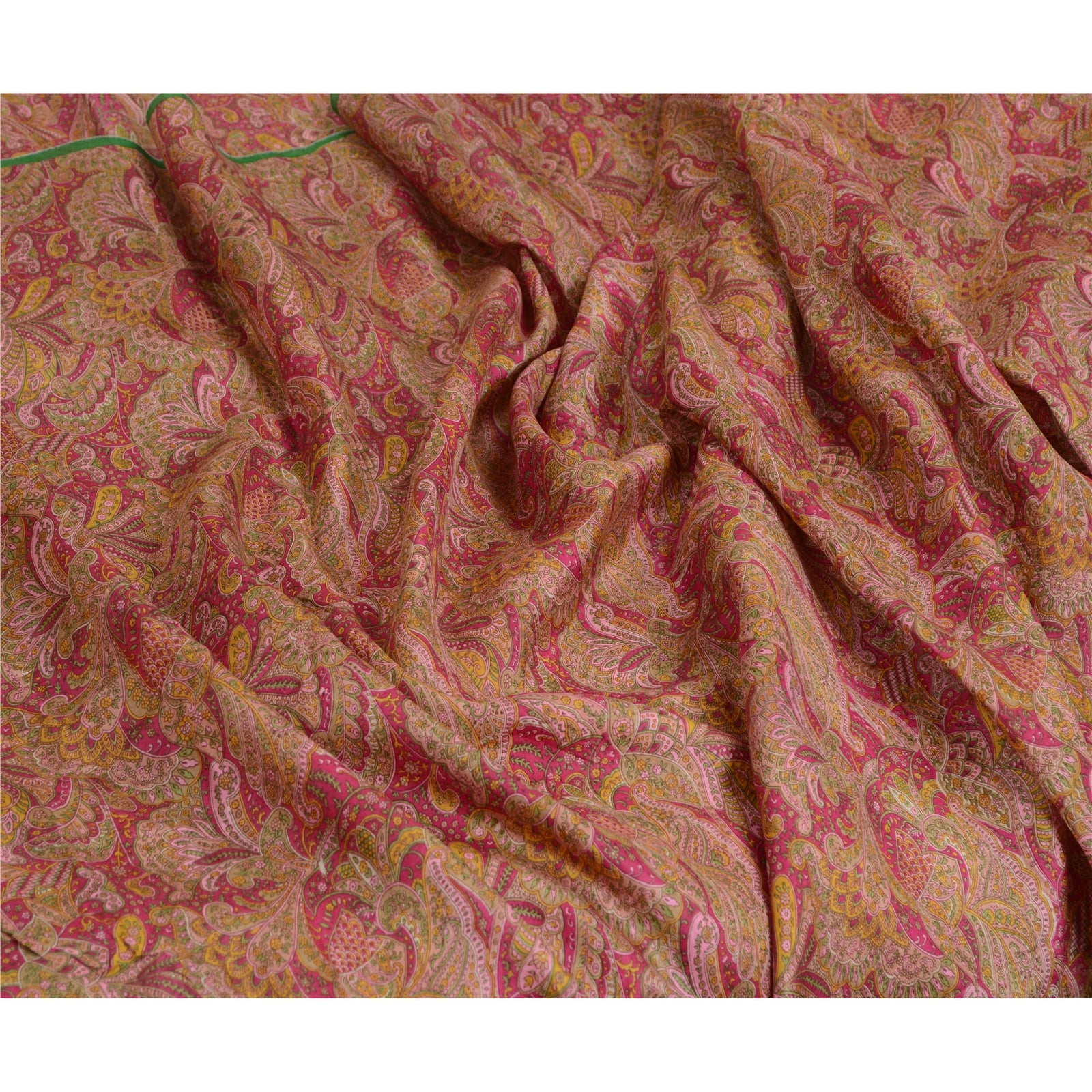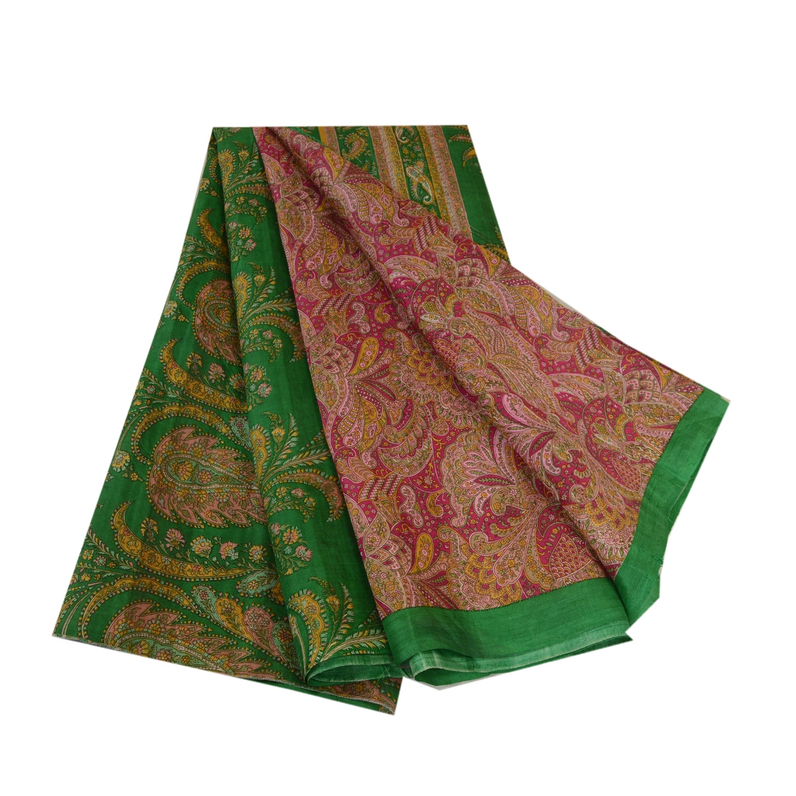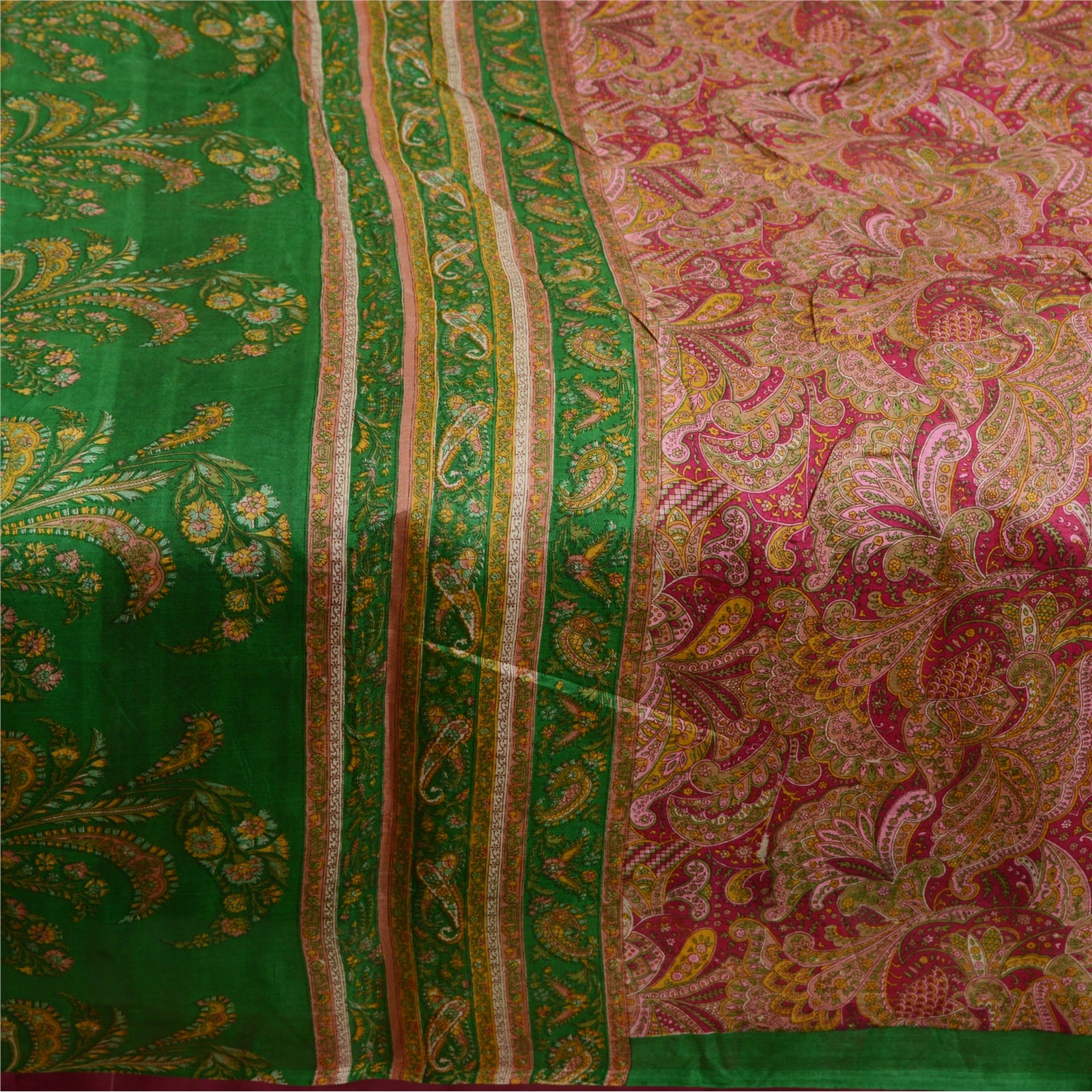 Sanskriti Vintage Sarees Pink & Green Printed Pure Silk Sari Blomsterhåndværk Bæredygtigt Stoff