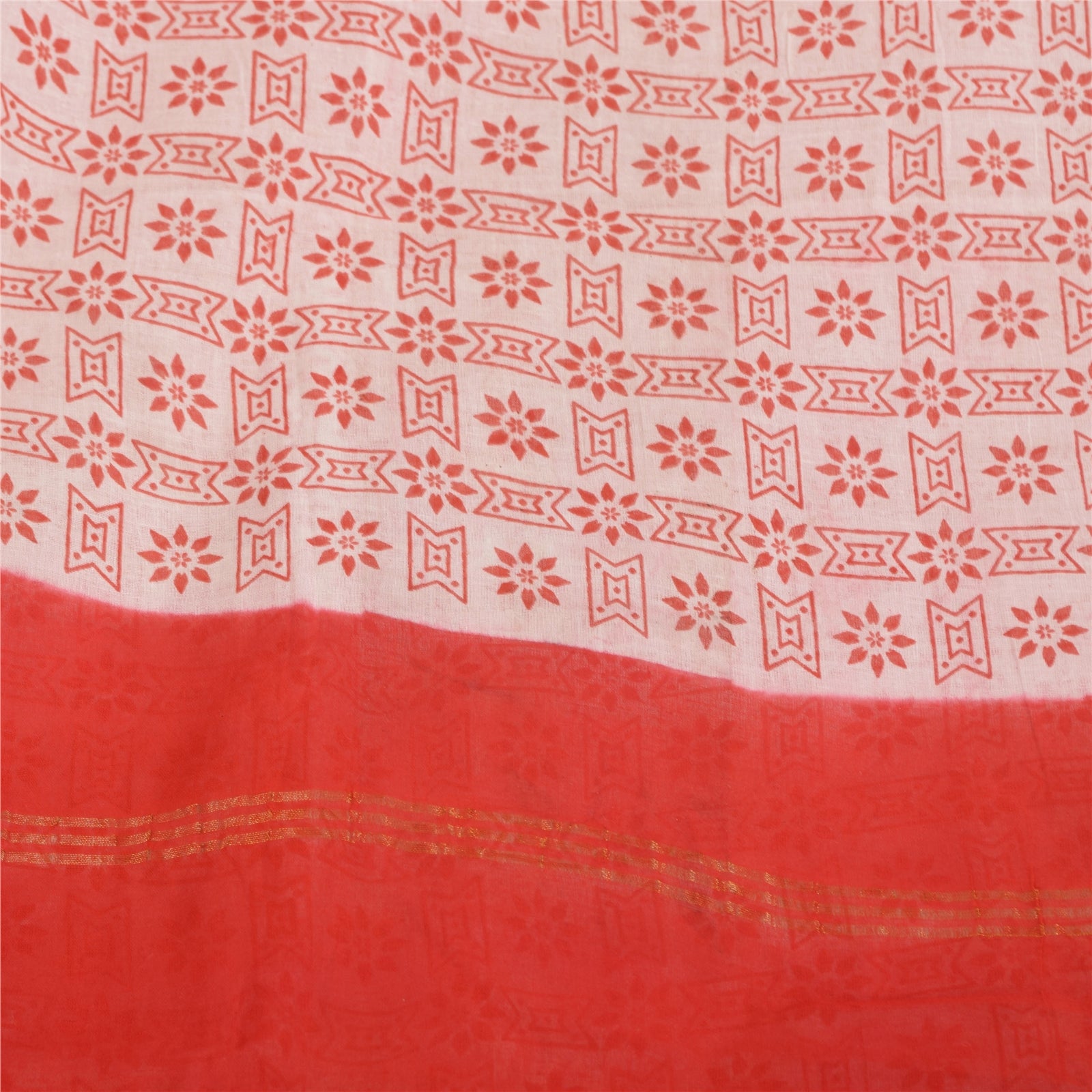 Sanskriti Vintage Sarees Pink & Rød Ren Bomuld Trykt & Zari Vævet Stof 5+ yard