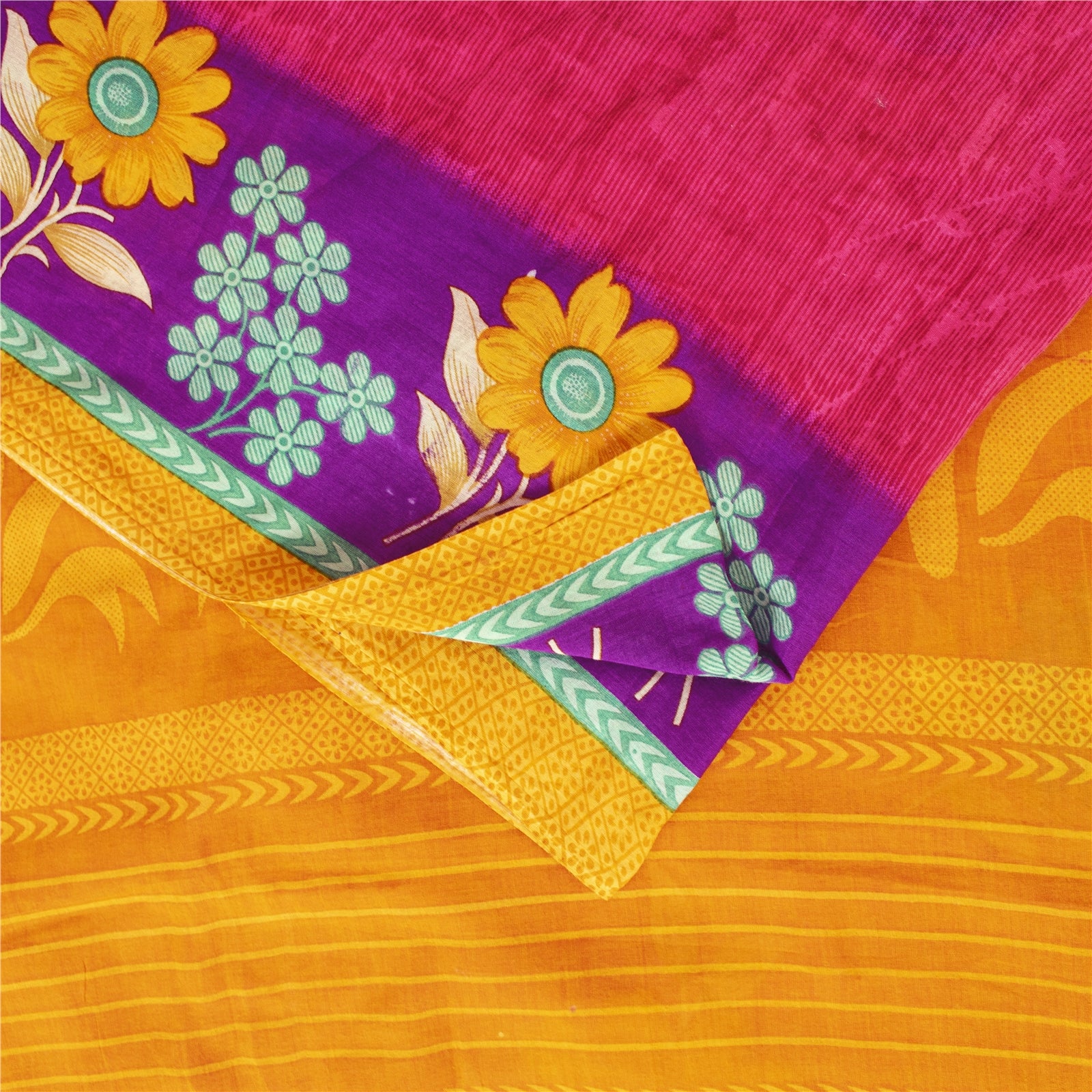 THE ITEM COLOR OR SHADE MAY BE DARKER OR LIGHTER THAN THE PICTURE. Attractive pink & yellow colored pure cotton printed sari. Pallu & Border has printed floral design. Similar design in center part of saree.. This unique vintage saree can be used for various crafting ideas even if you don't want to use it as a sari. Design a dress, use it as a as window dressing, upholstery, sarongs, throw, dress making and table linen much more. Let your creative juices flow and use this decorated fabric in multiple fashion. Shipping Note: 'International buyers please note: Import duties, taxes, and charges are not included in the item price or postage cost. These charges are the buyer's responsibility. Please check with your country's customs office to determine what these additional costs will be prior to bidding or buying. Buyer will pay custom duty/tax. It is calculated and charged differently by every country. As a seller I do not have any control over it. VAT or sales tax is calculated by the platform at the time of checkout. Customs charge is payable at the time of delivery.' PCS-7212