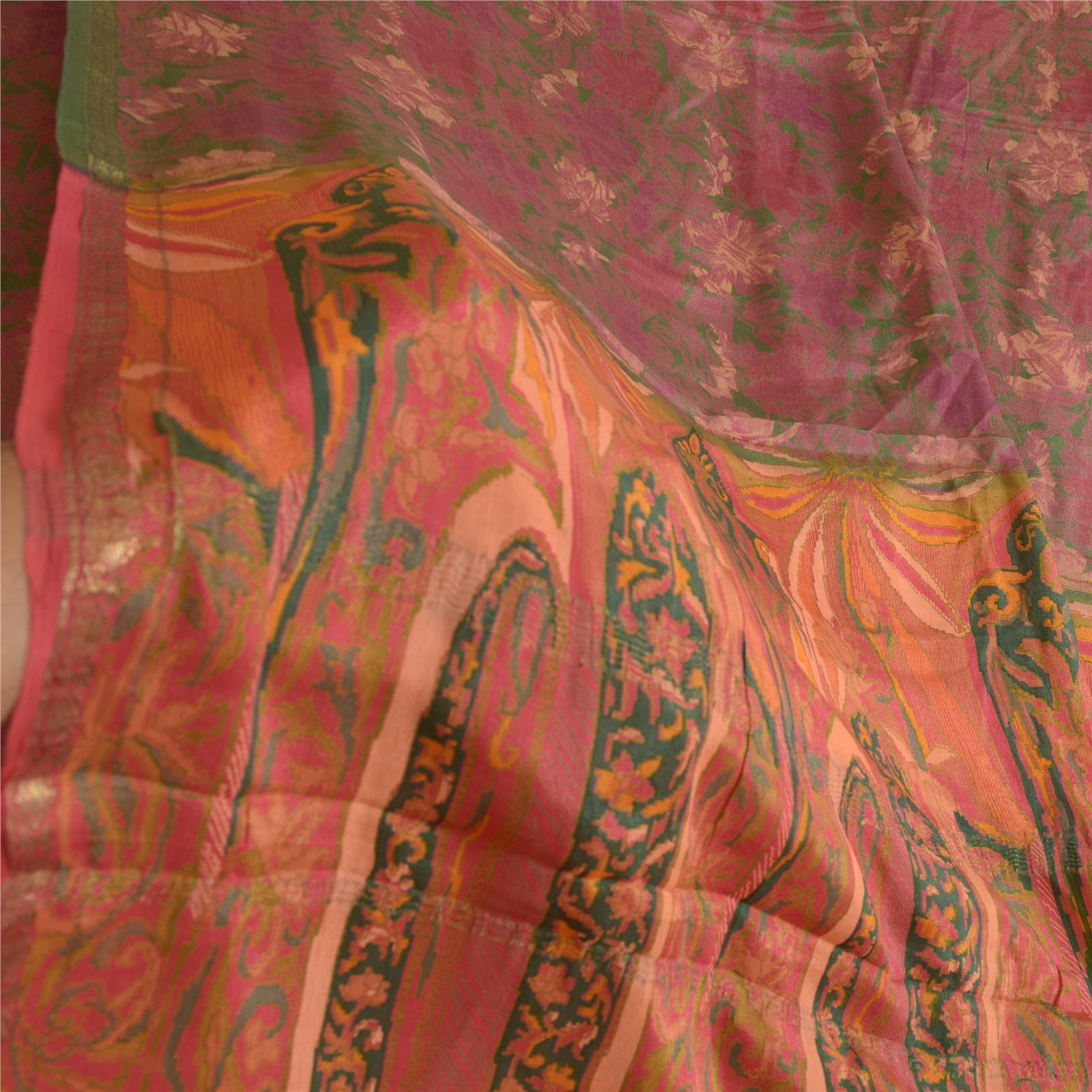 Sanskriti Vintage Sarees Pink Zari Border Ren Silke Trykt Sari Håndværk Bæredygtigt Stoff