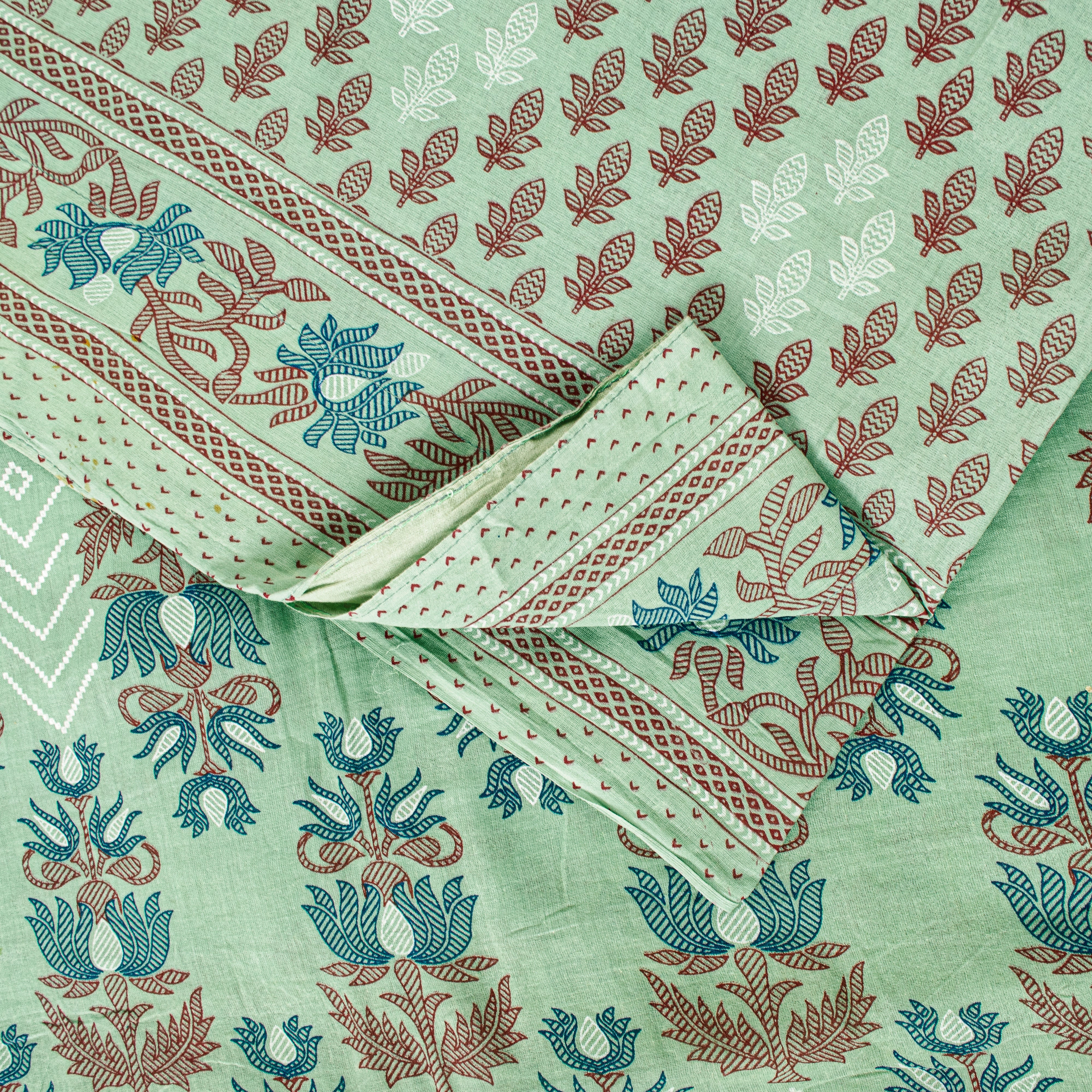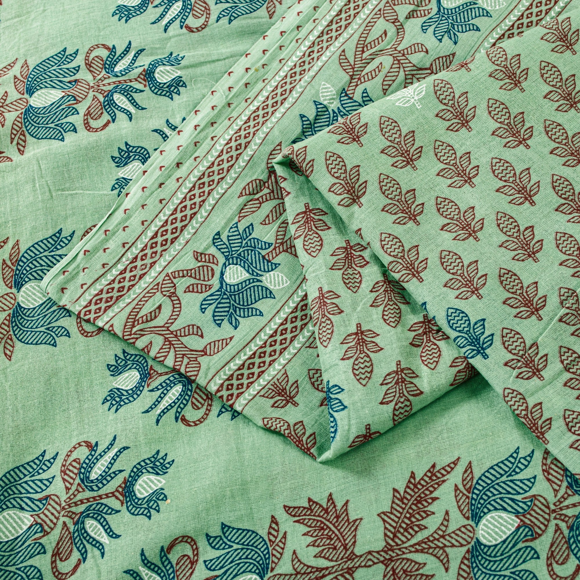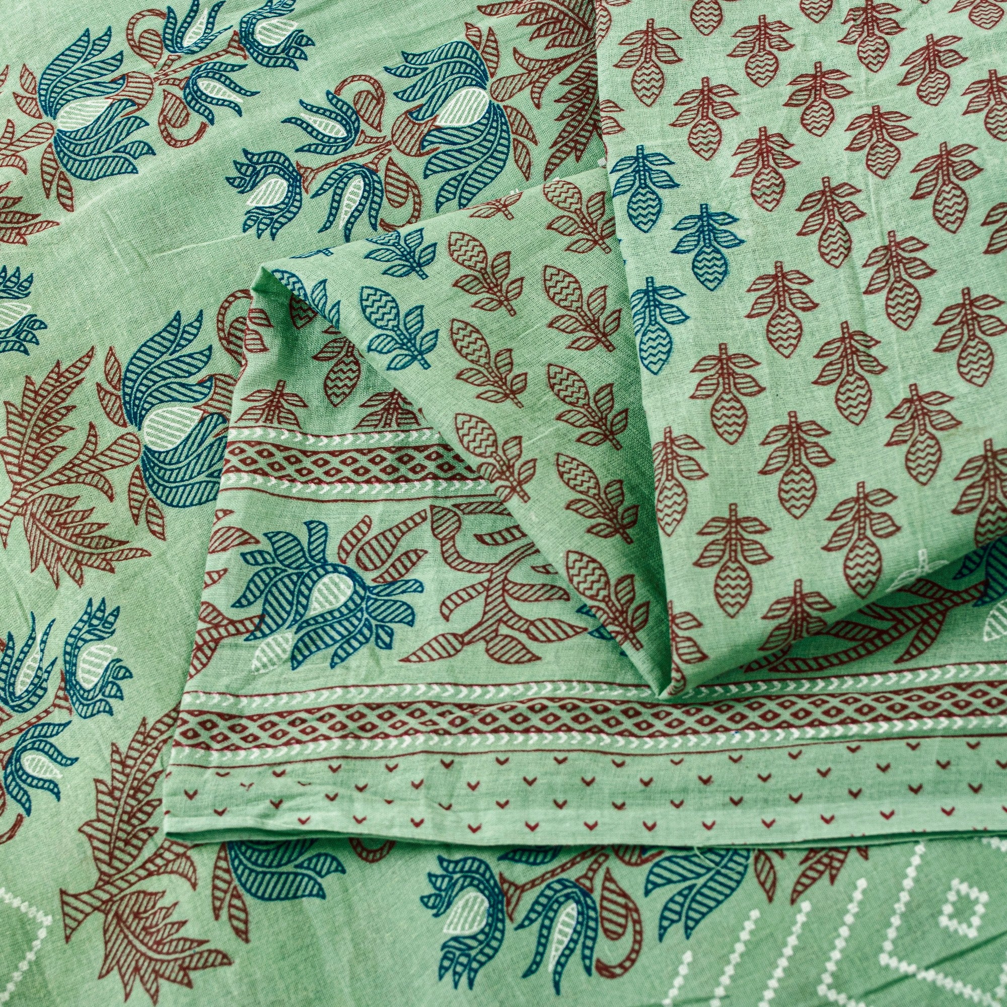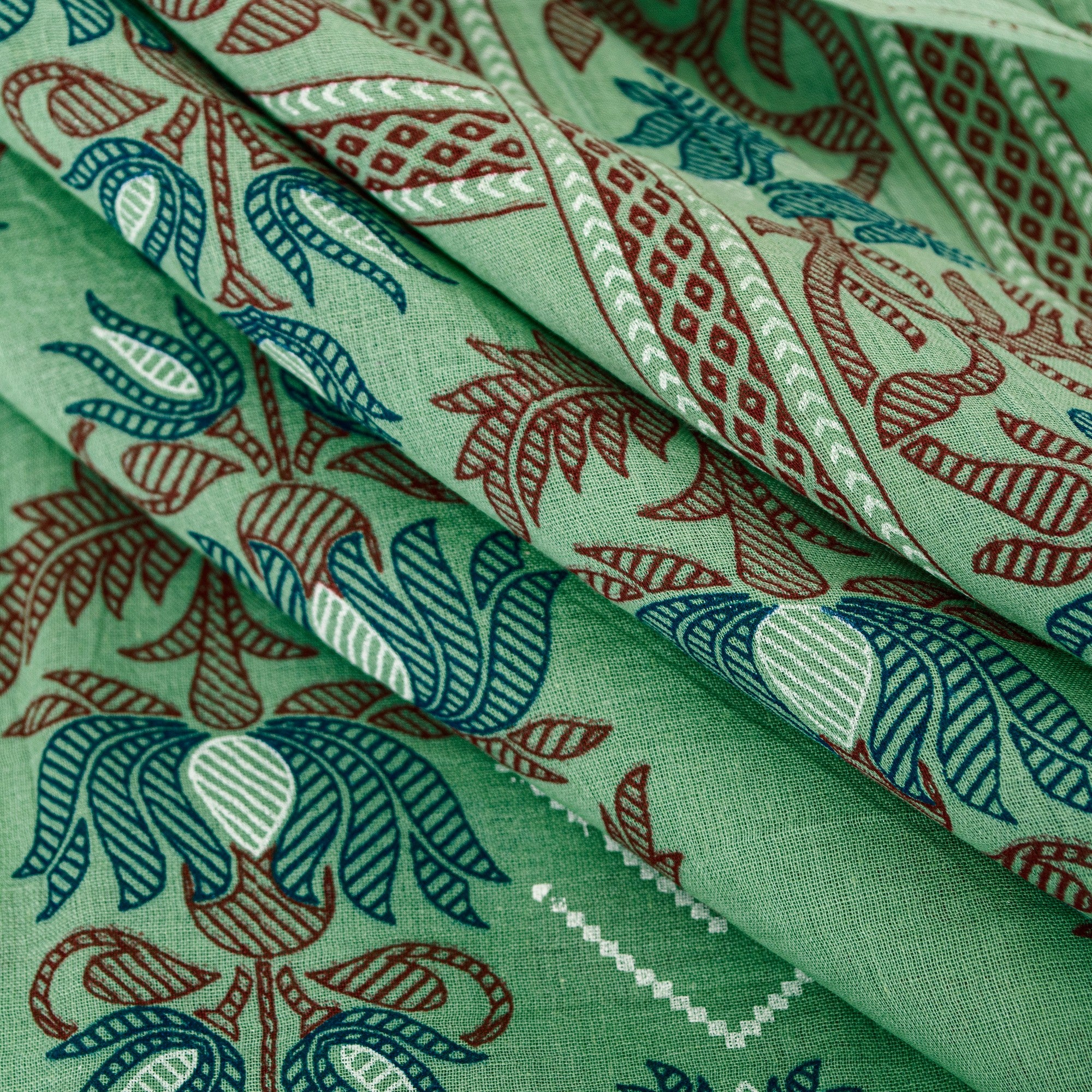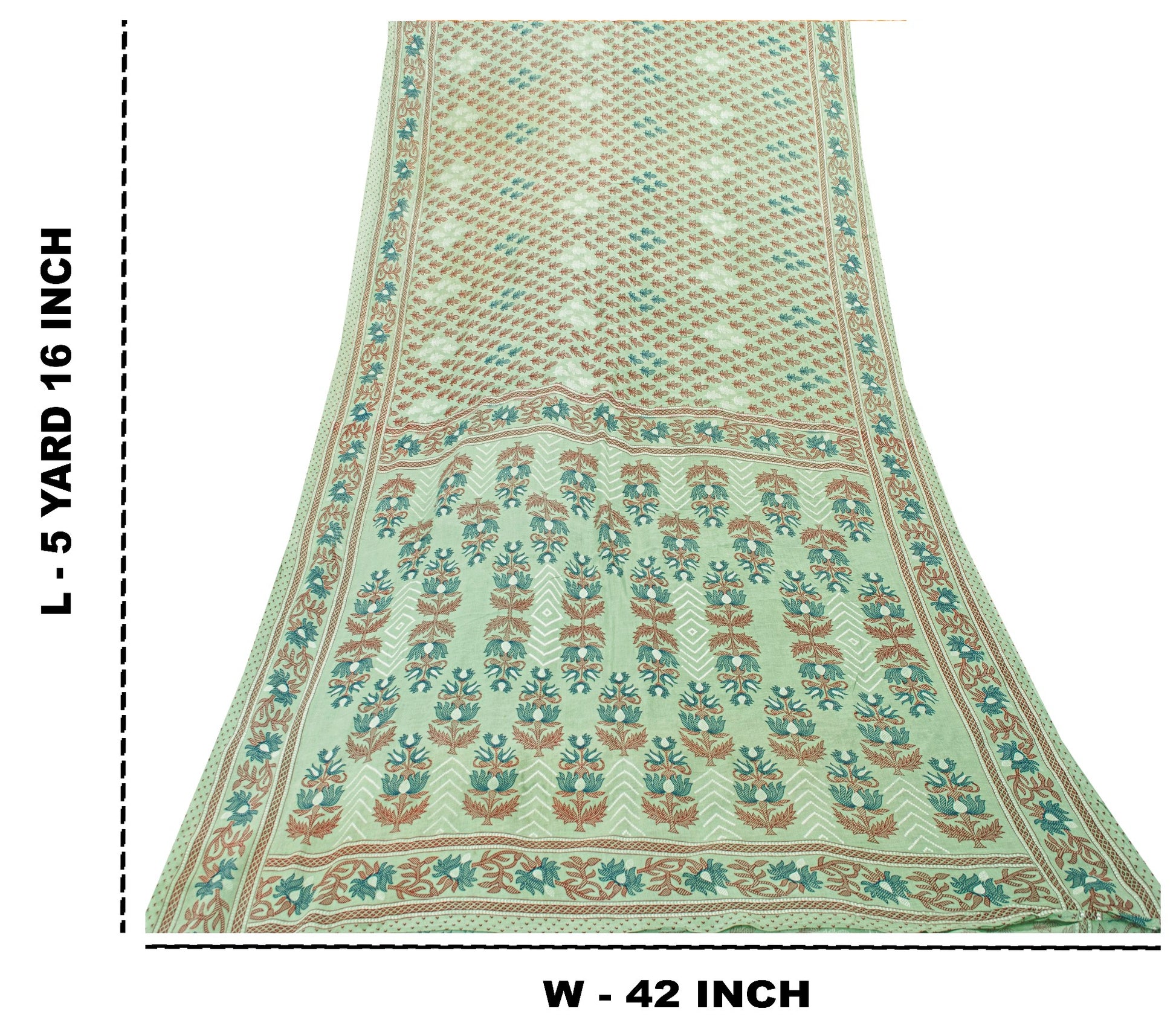 Sanskriti Vintage Sarees Pista Green Pure Cotton Floral Print 5+YD Home DecoSari