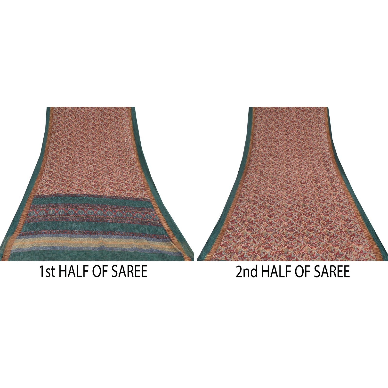Sanskriti Vintage Sarees Red Pure Georgette Silk Printed Sari 5Yd Craft Fabric