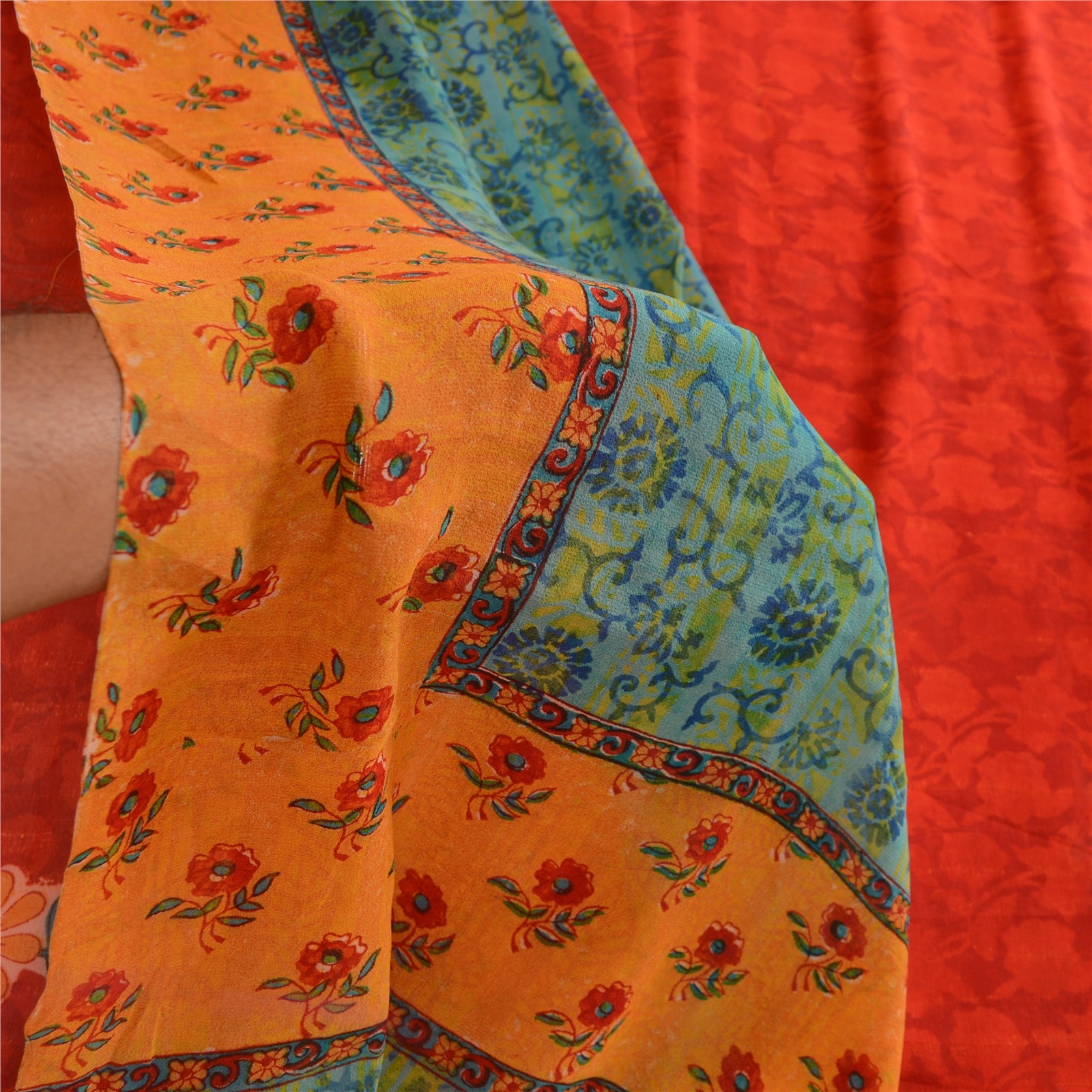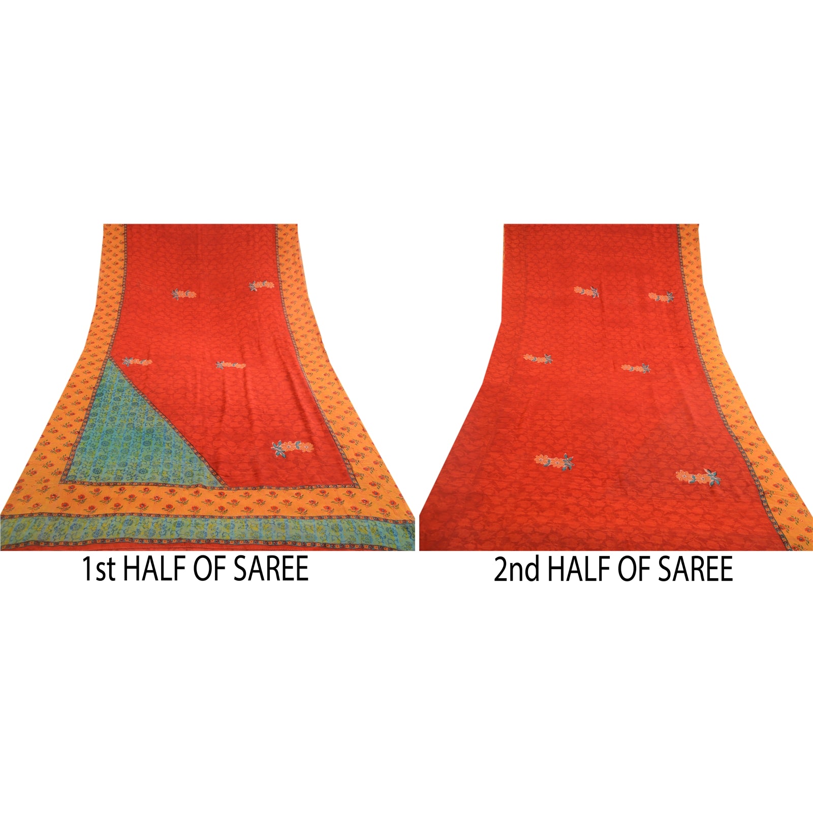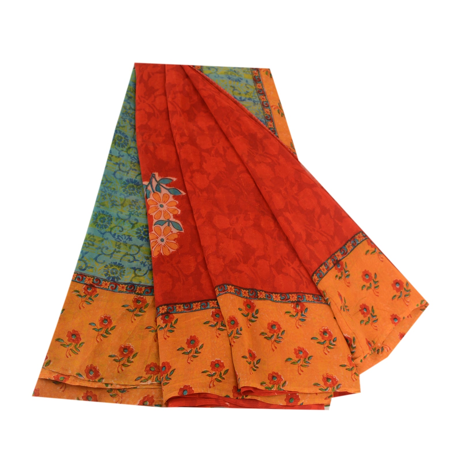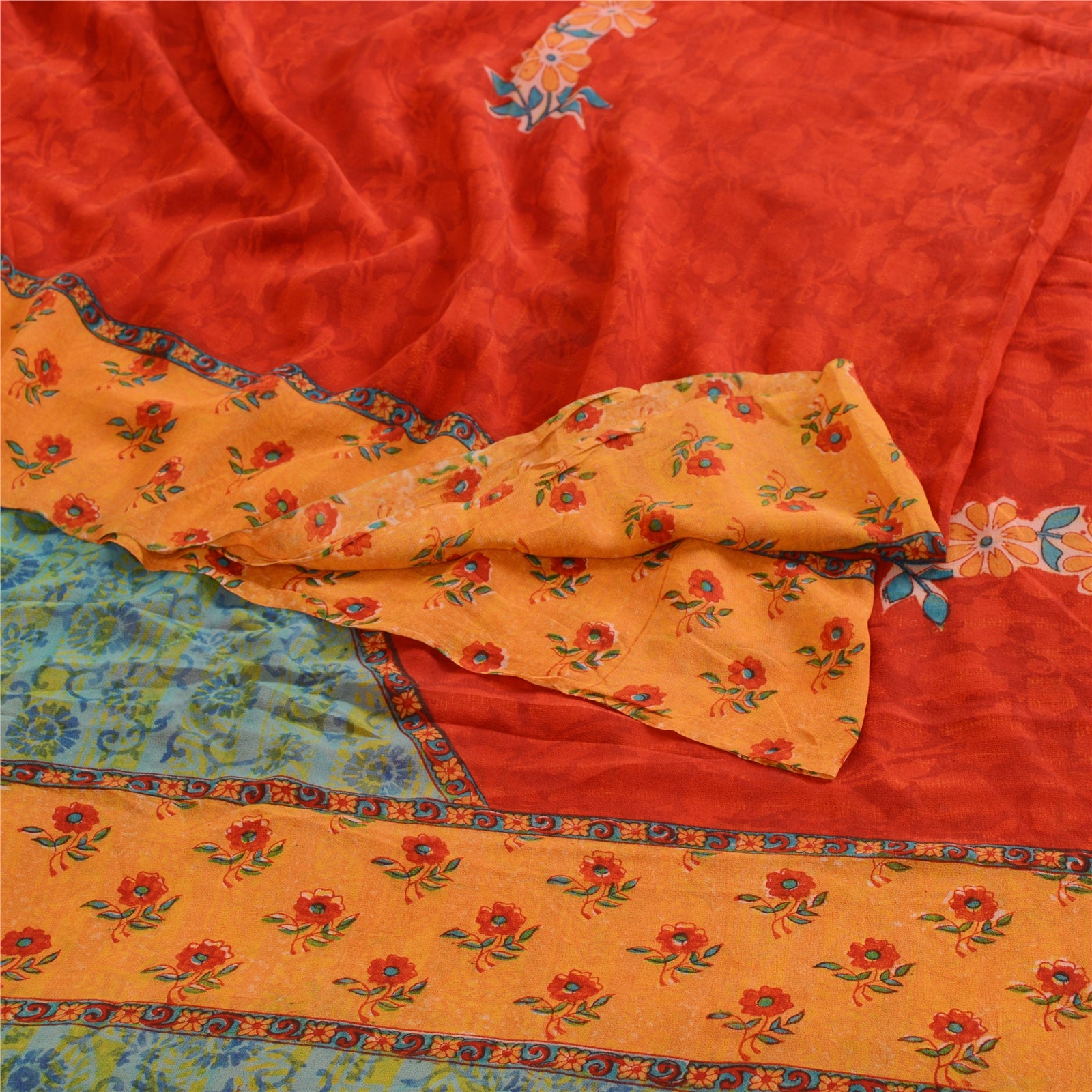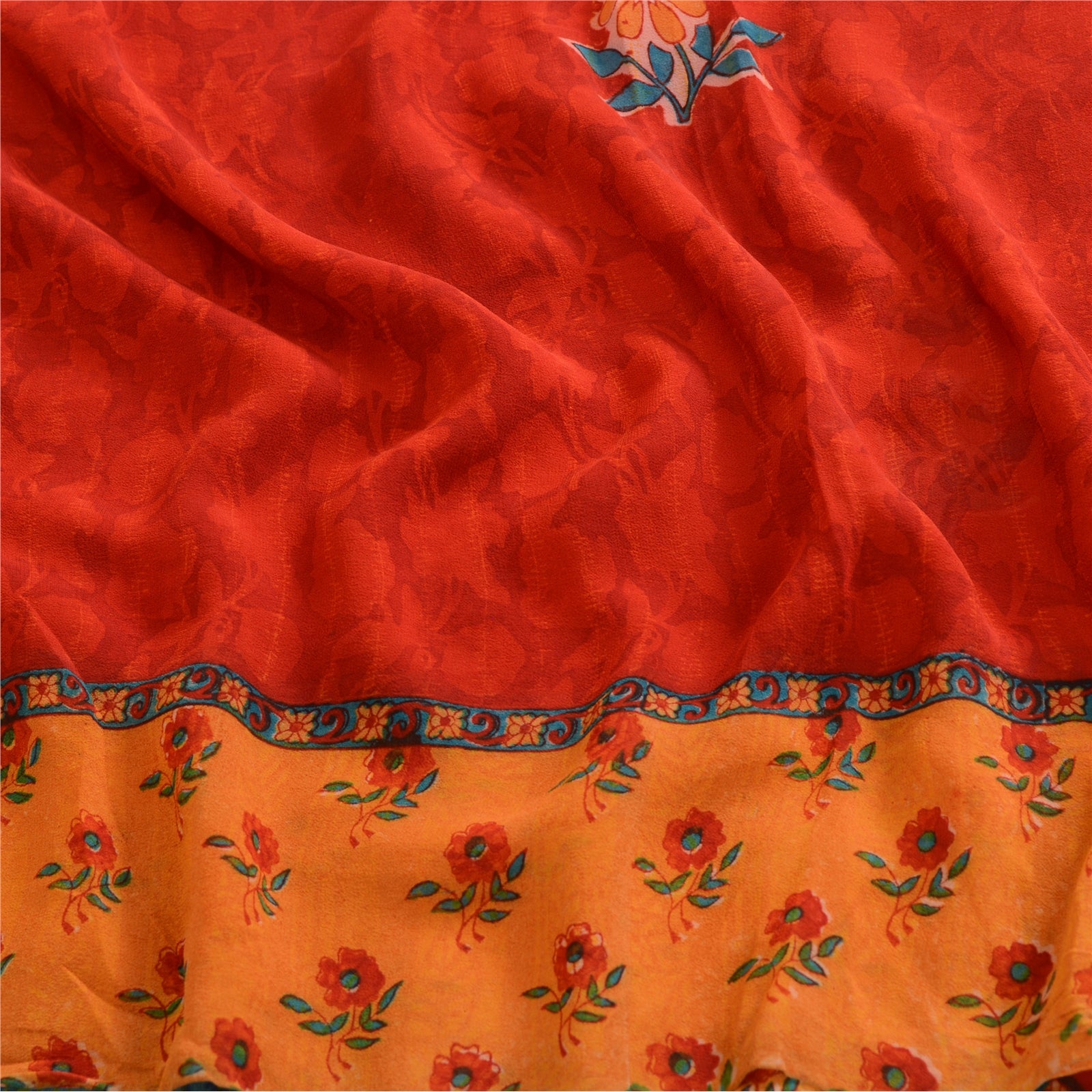 Sanskriti Vintage Sarees Rød Ren Georgette Silke Trykt Sari Blødt Håndværk Bæredygtigt Stoff