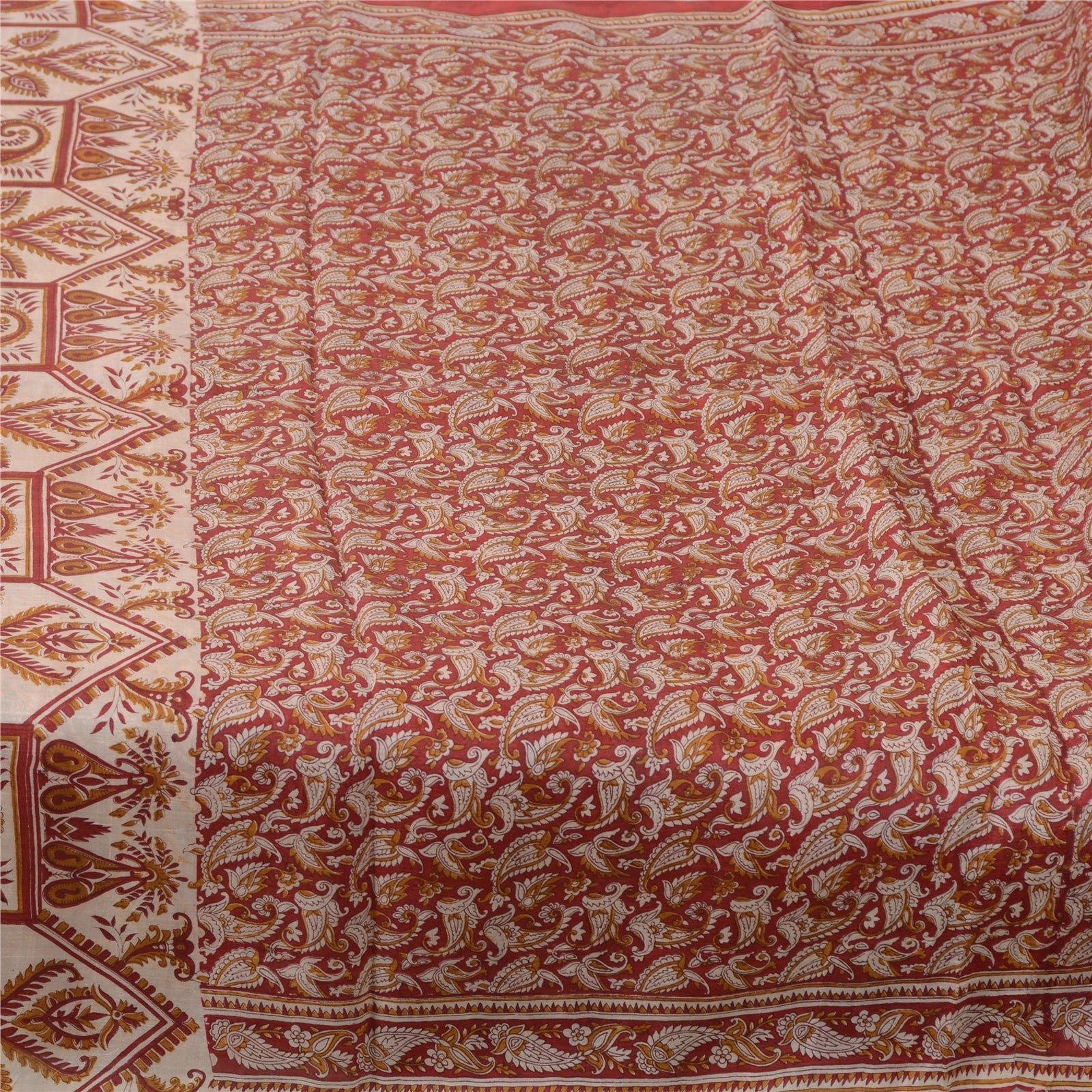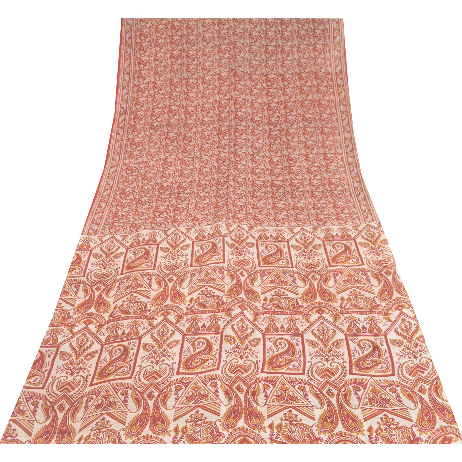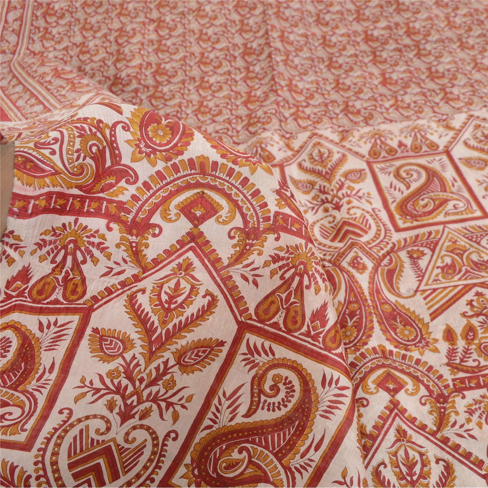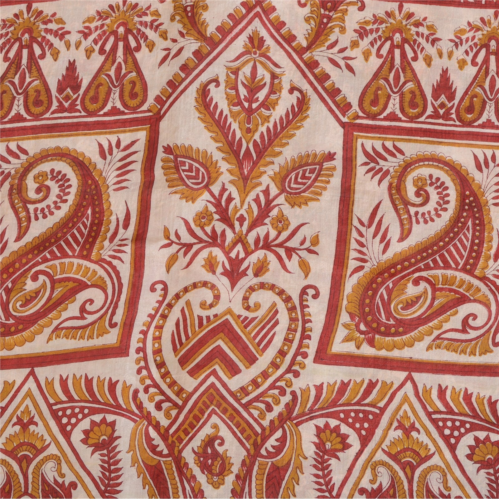 Sanskriti Vintage Sarees Red Quilting Felting Craft Fabric Pure Silk Print Sari