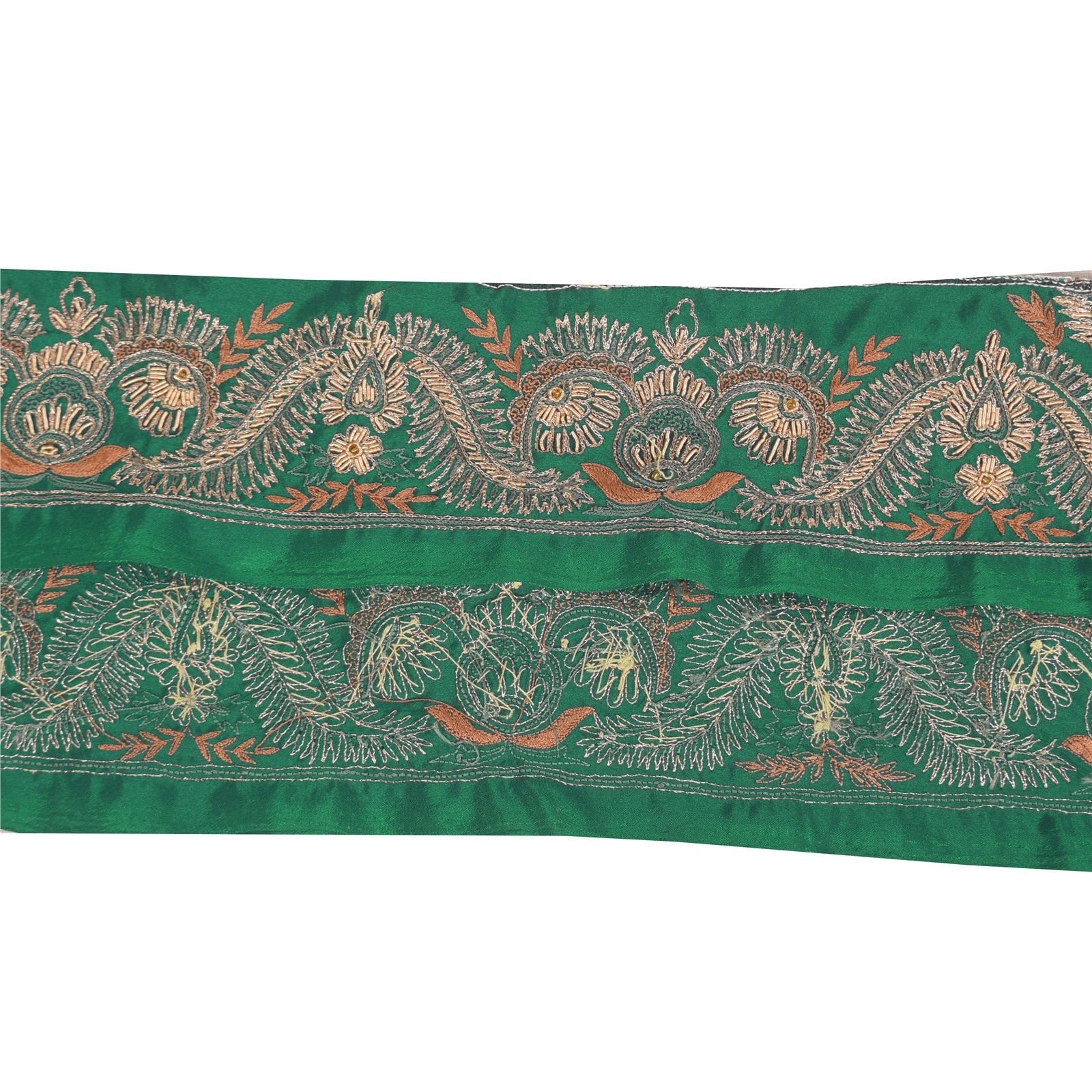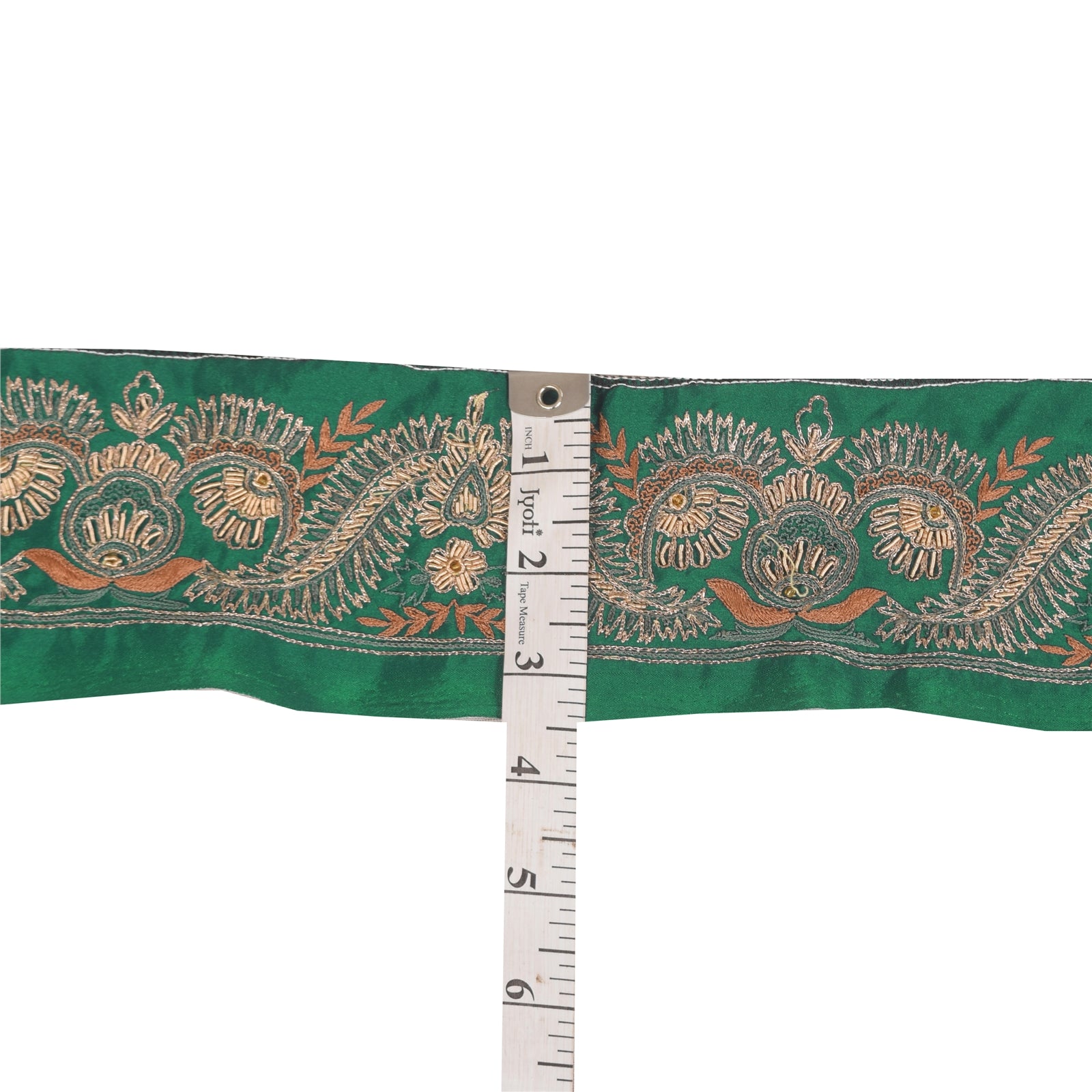 Sanskriti Vintage Sari Border Hand Beaded Zardozi 1 YD Trim 2.5 W Green Lace