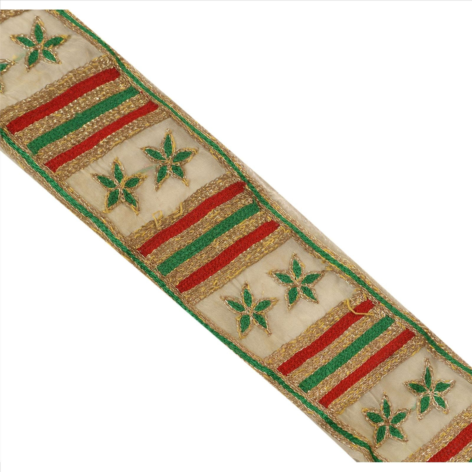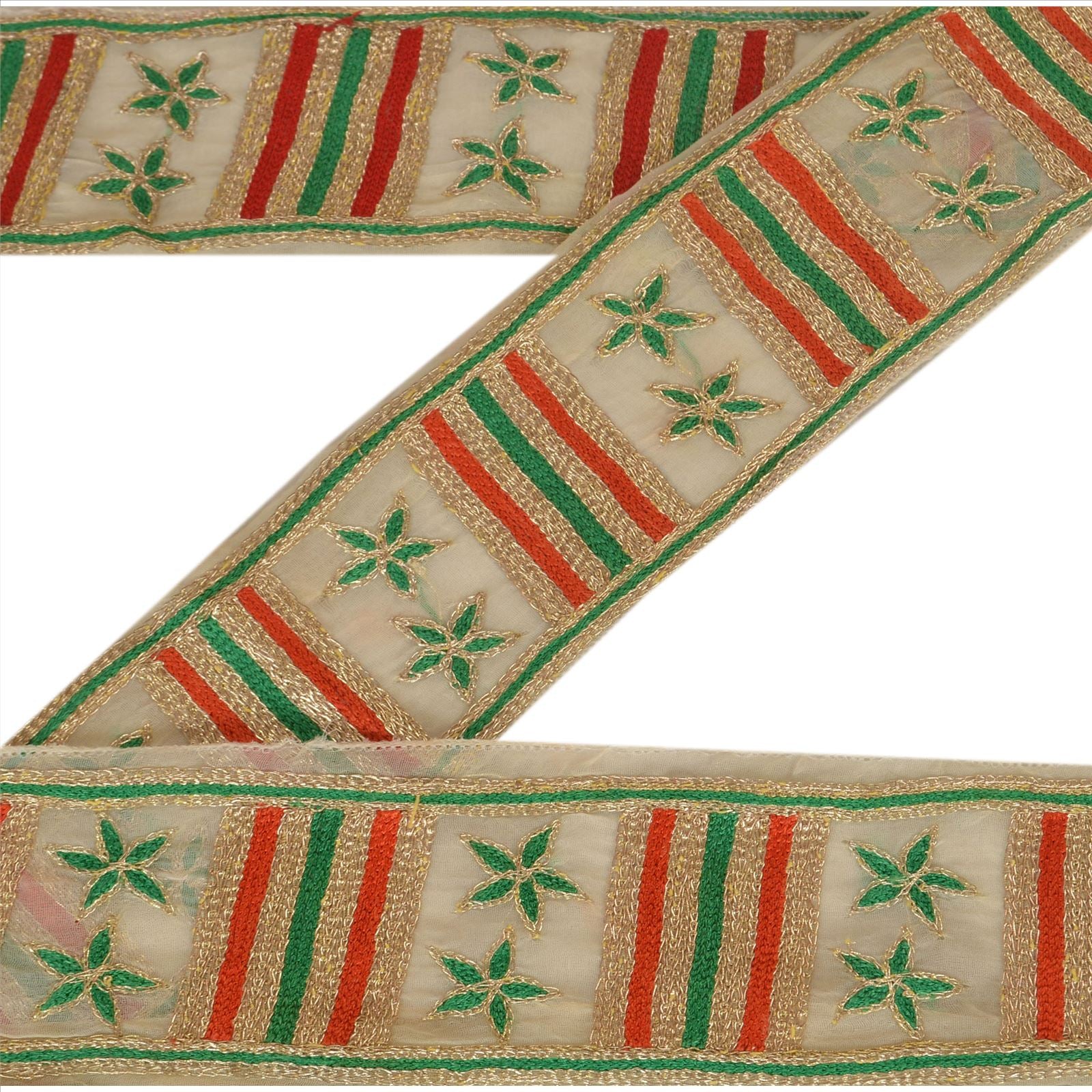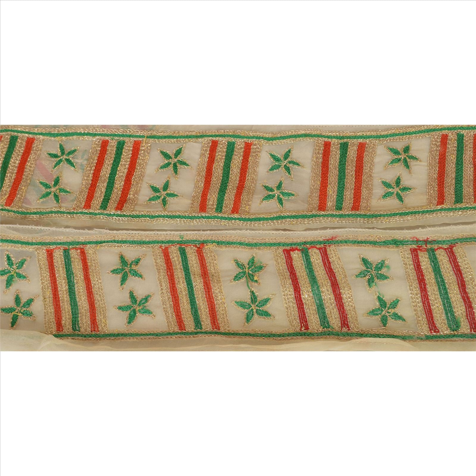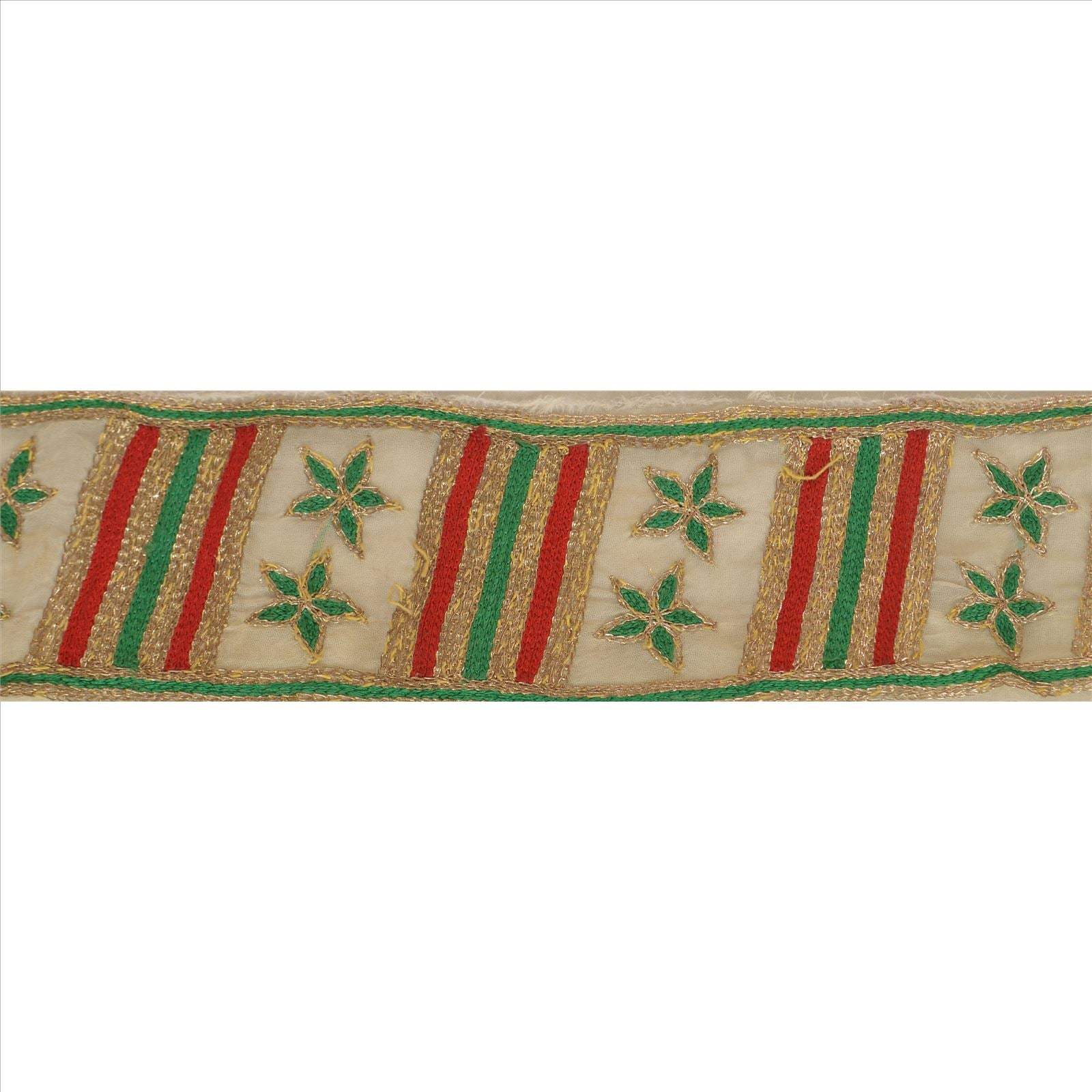 Sanskriti Vintage Sari Bord Håndbroderet 1Yd Indisk Kant Sycreme Blonde