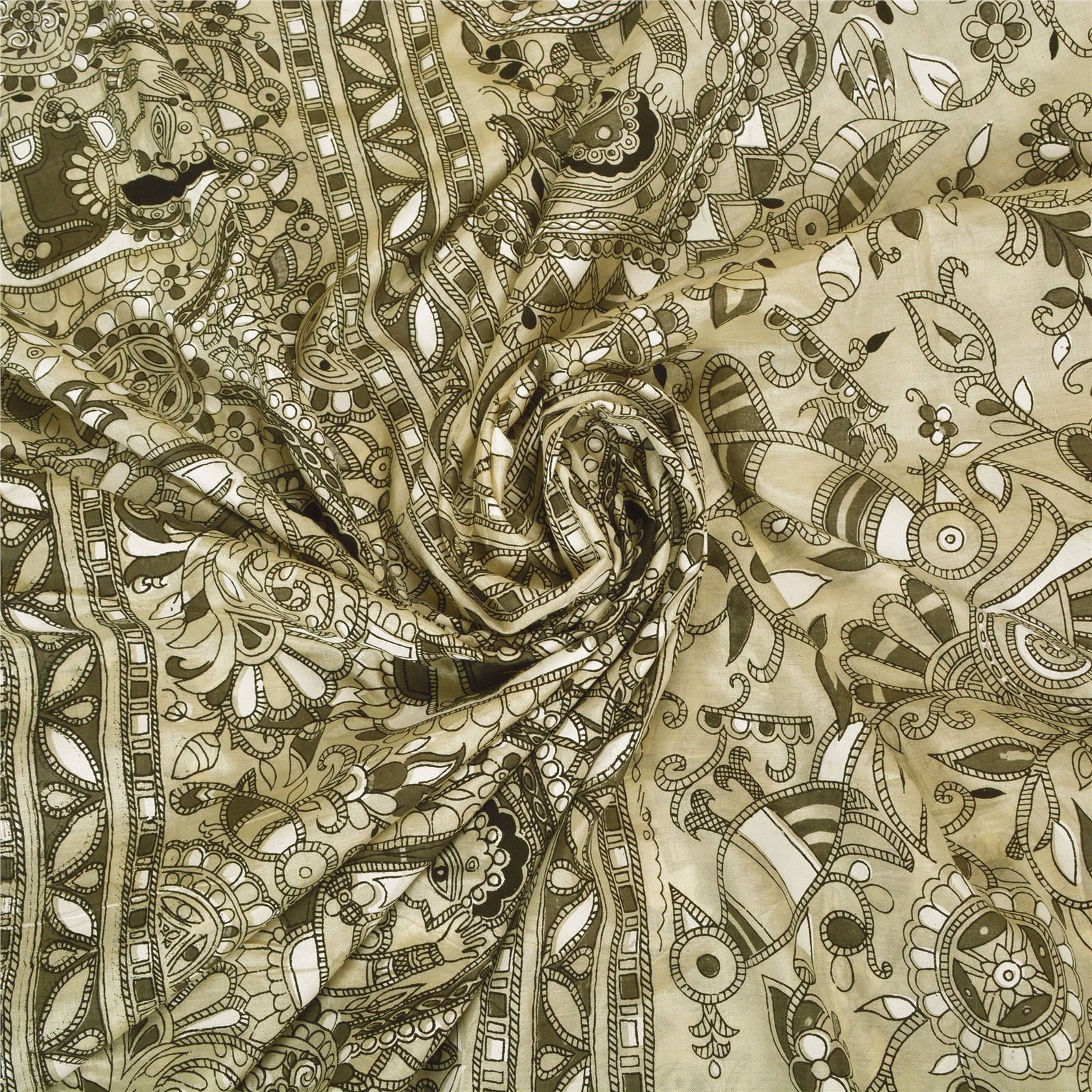 Vi tilbyder en sari i 100% ren bomuld med hvid bund og Madhubani-print. Pallu & Border har et traditionelt trykt blomster- og påfuglemønster. Du kan se lignende trykte arbejde i midten af sarien. Da varen er vintage, kan der forventes mindre pletter og defekter. Denne tunge sari kan også bruges til forskellige kreative idéer. Brug den til kjoledesign, som tæppe, som vinduesdekoration, polstring, bordlinned og meget mere. Slip dine kreative safter løs!