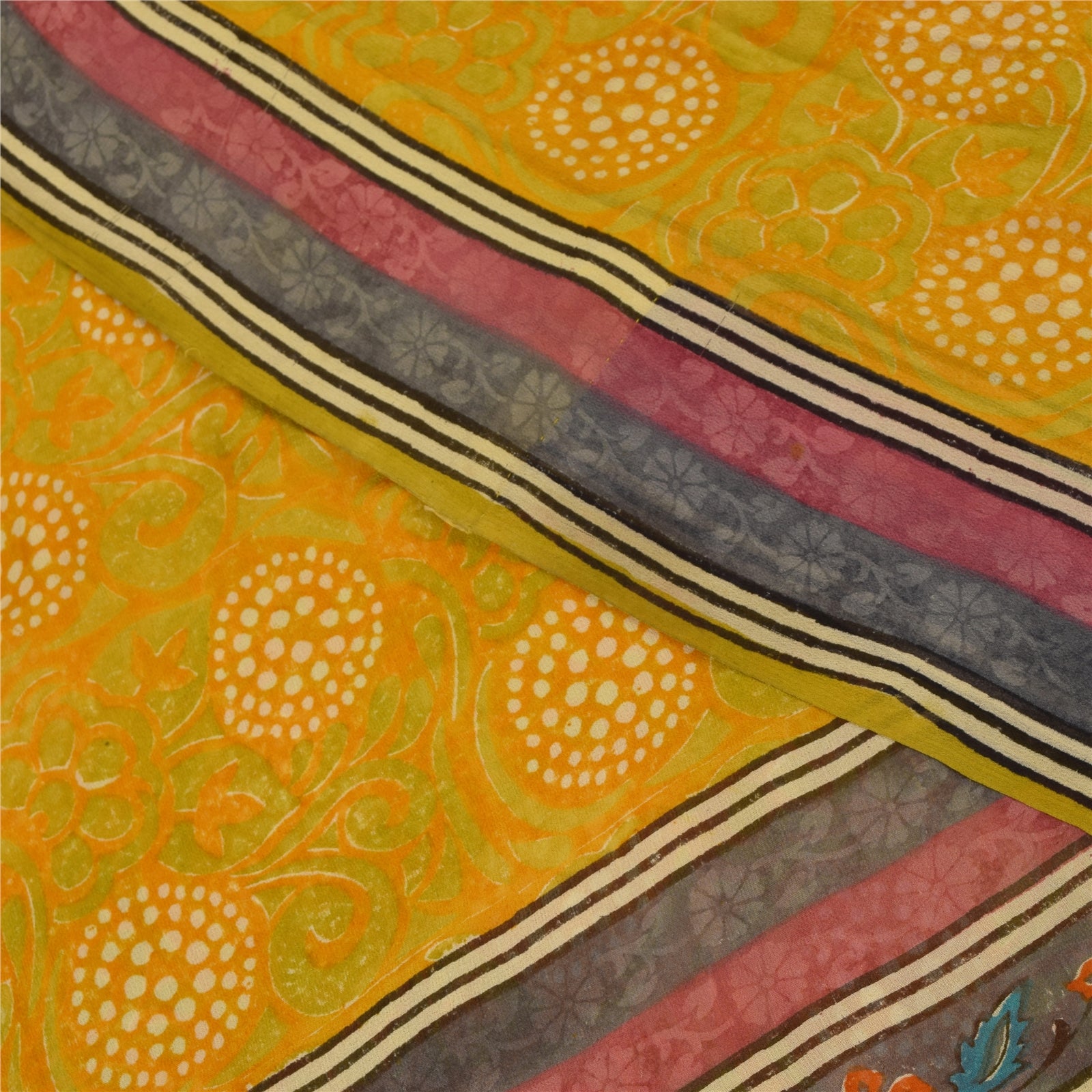 Sanskriti Vintage Yellow Sarees Pure Georgette Silk Printed Sari Craft Fabric