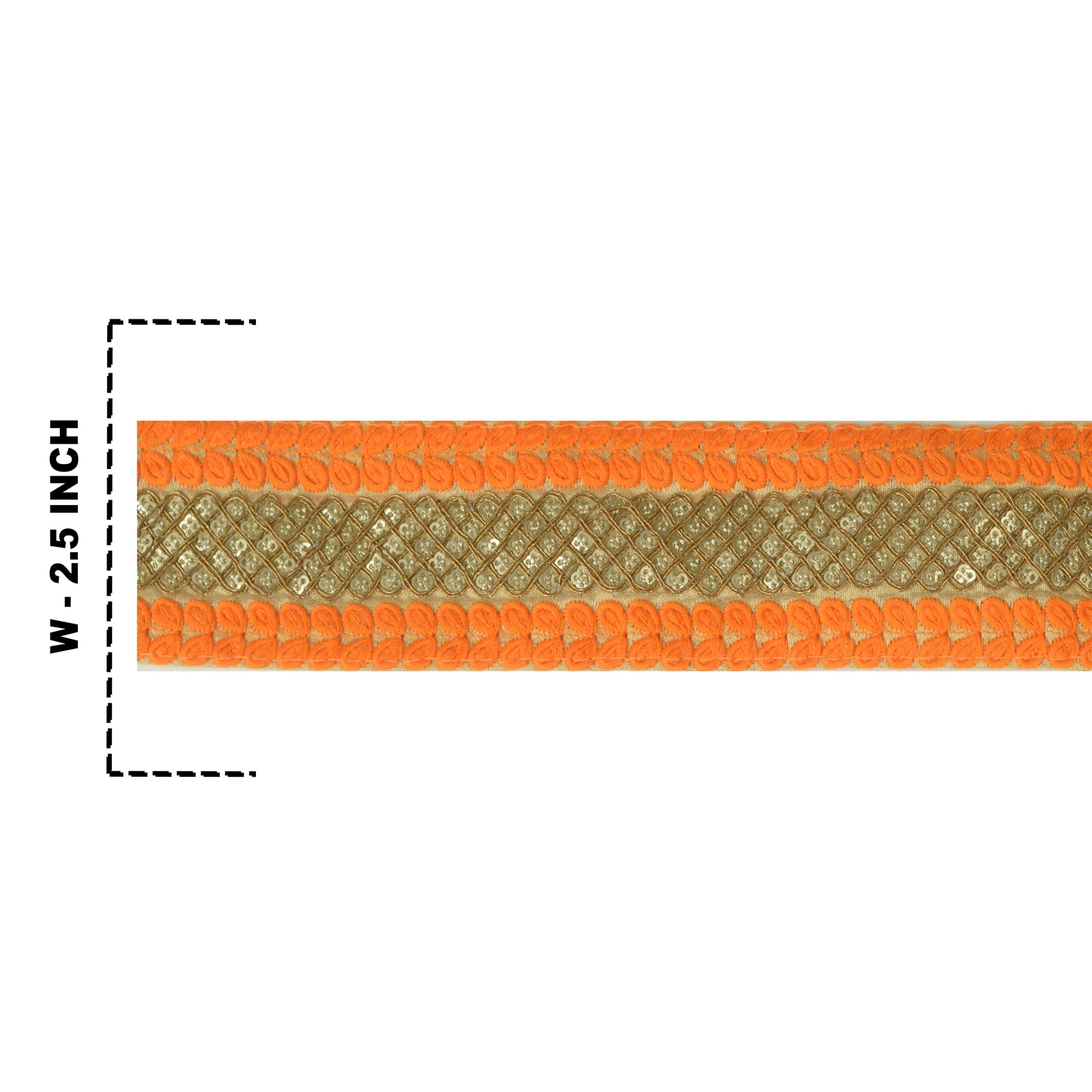 Sanskriti Vævet Glitterkjolekant 1 YD Kantbånd Orange Håndværkssyning Blonde