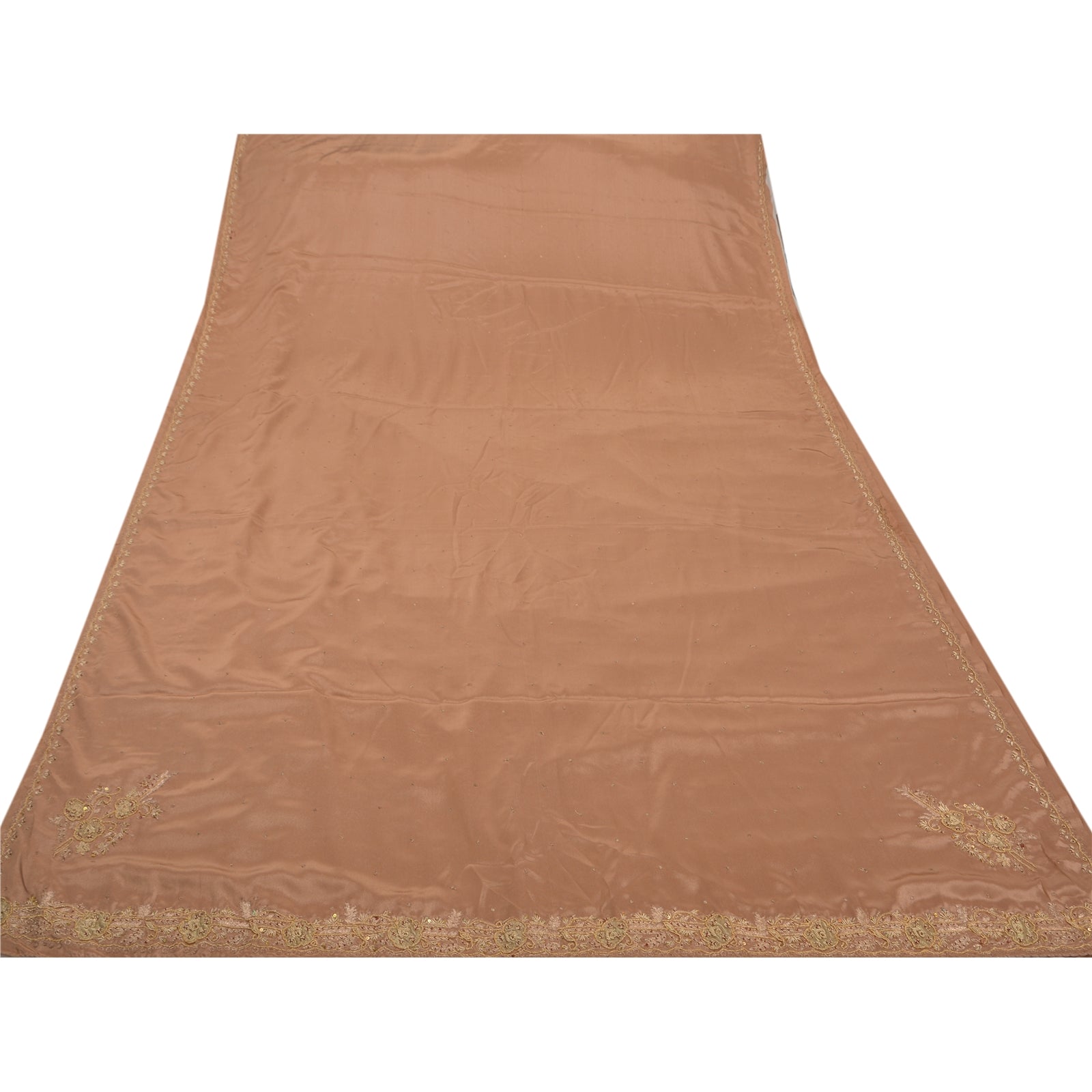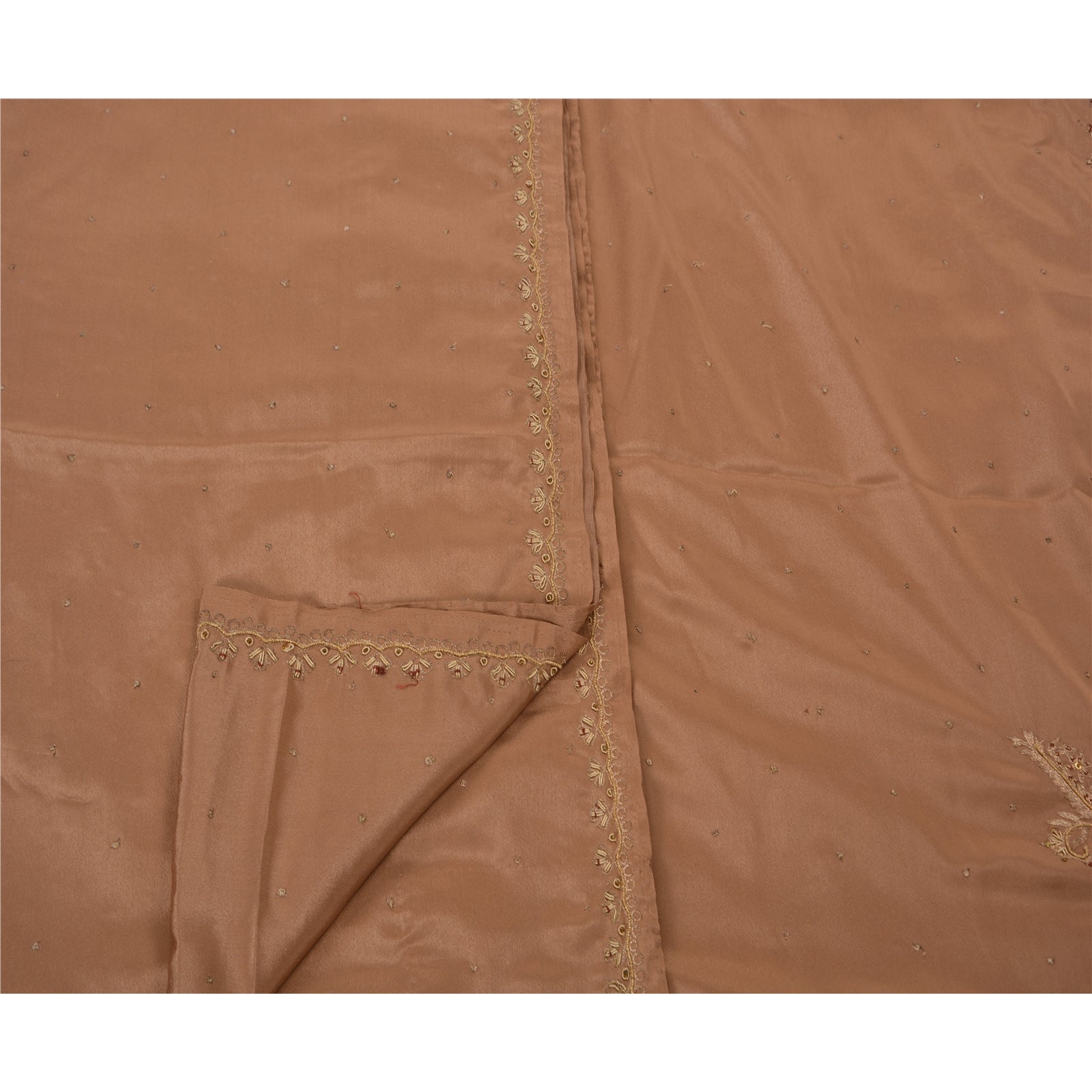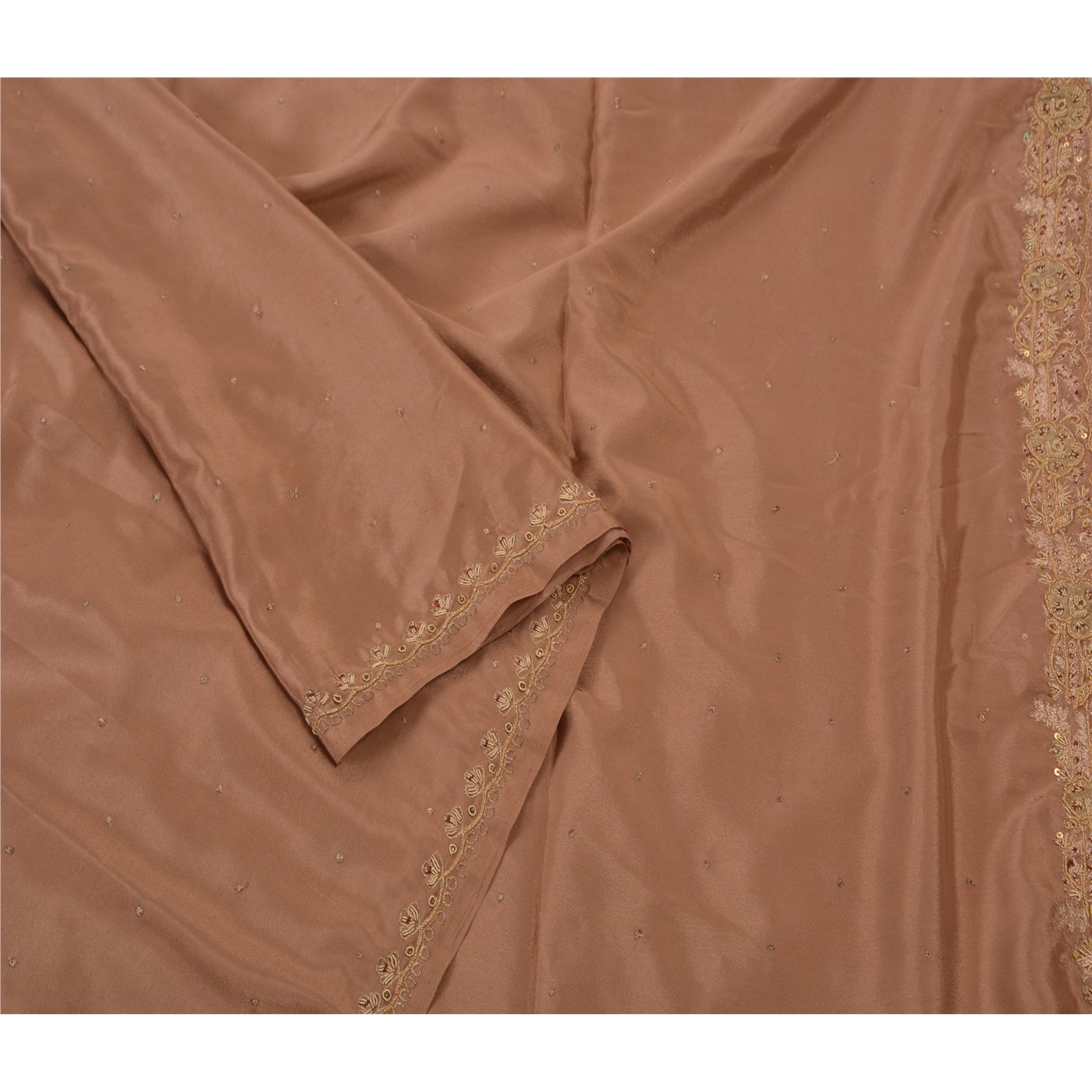 Vintage Brown Saree Art Silk Hand Beaded Craft 5 YD Fabric Premium Sari