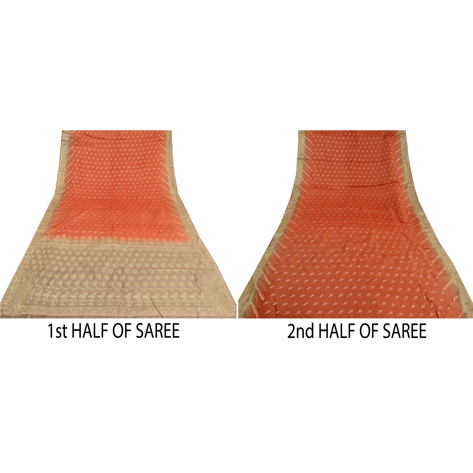 Sanskriti Vintage Brown/Orange Sarees 100% Pure Silk Woven Sari Craft Sustainable Fabric