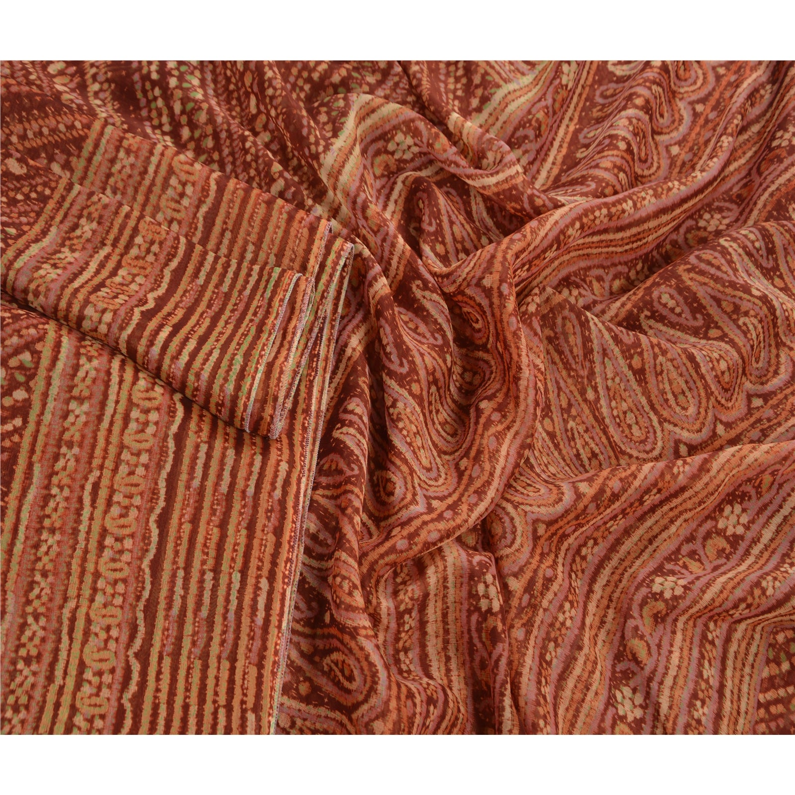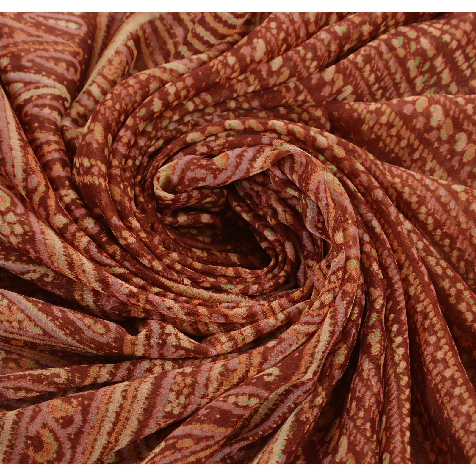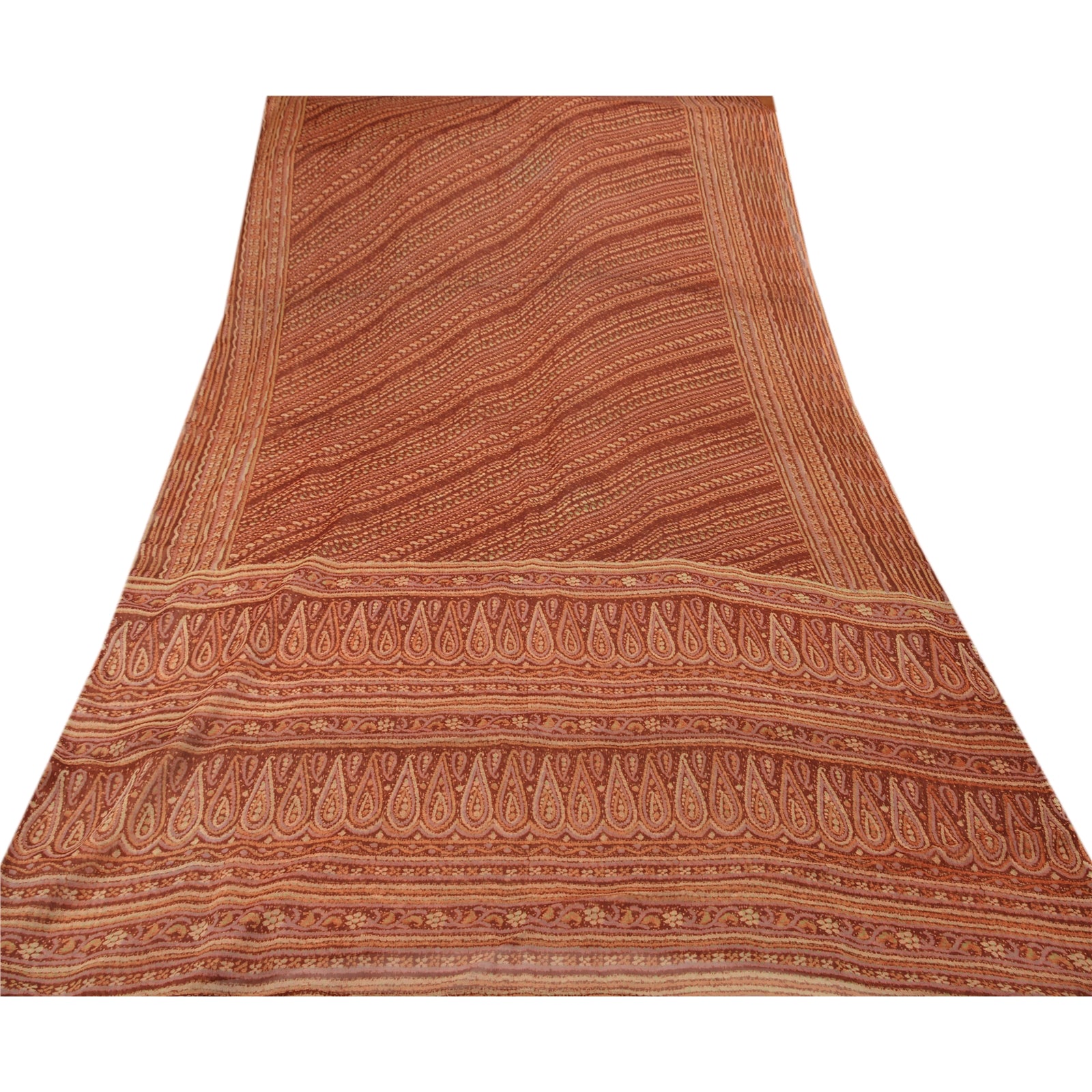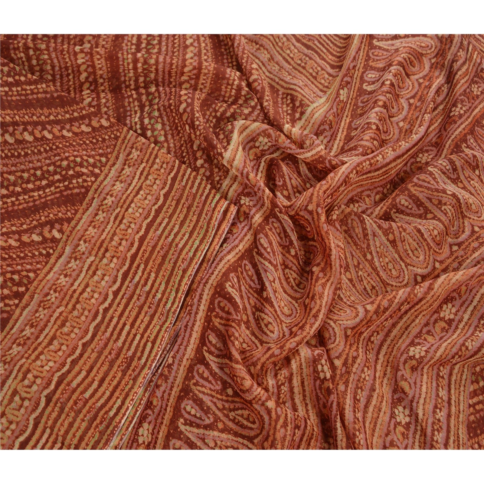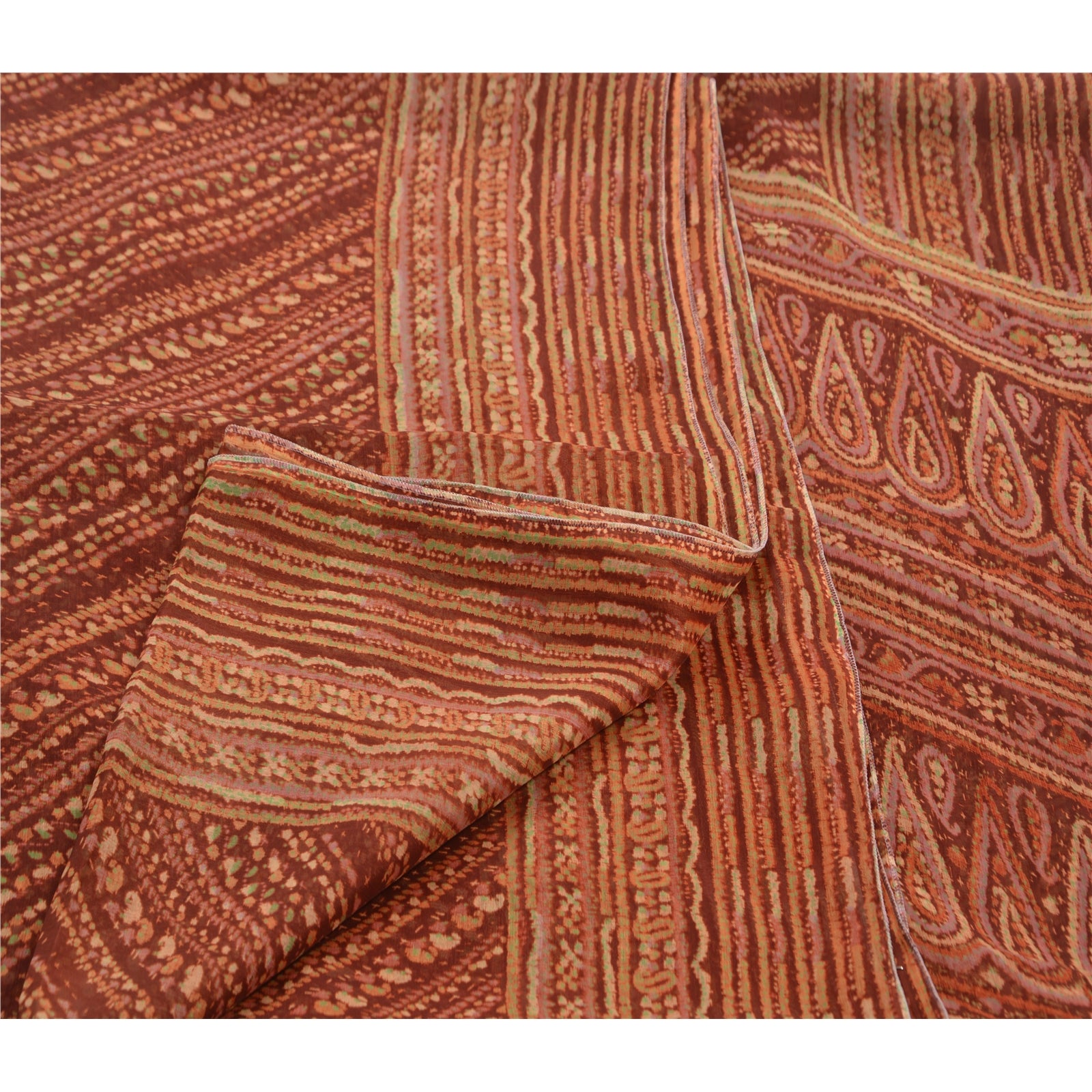 Sanskriti Vintage Art Silk Saree Brown Floral Printed Sari Craft 5 Yard Sustainable Fabric