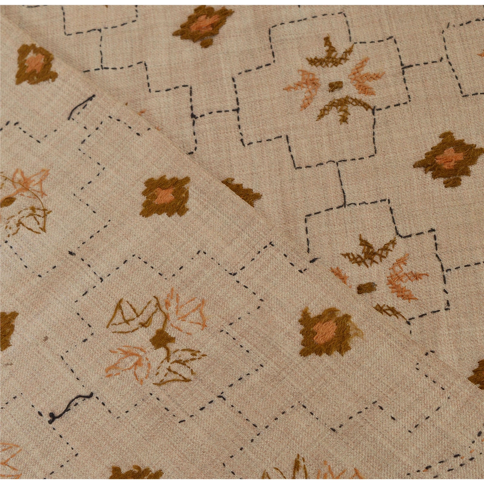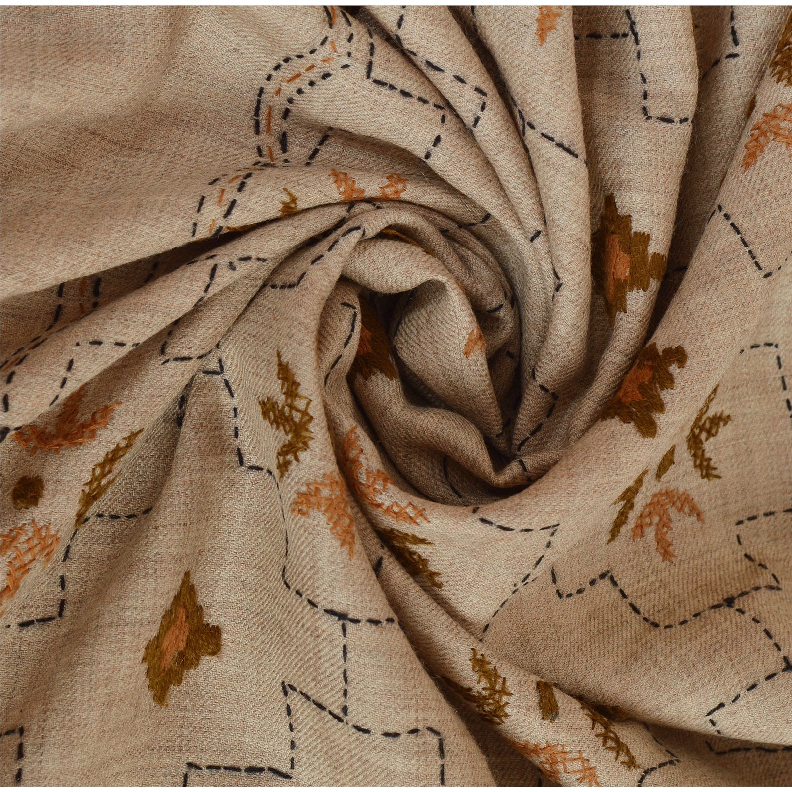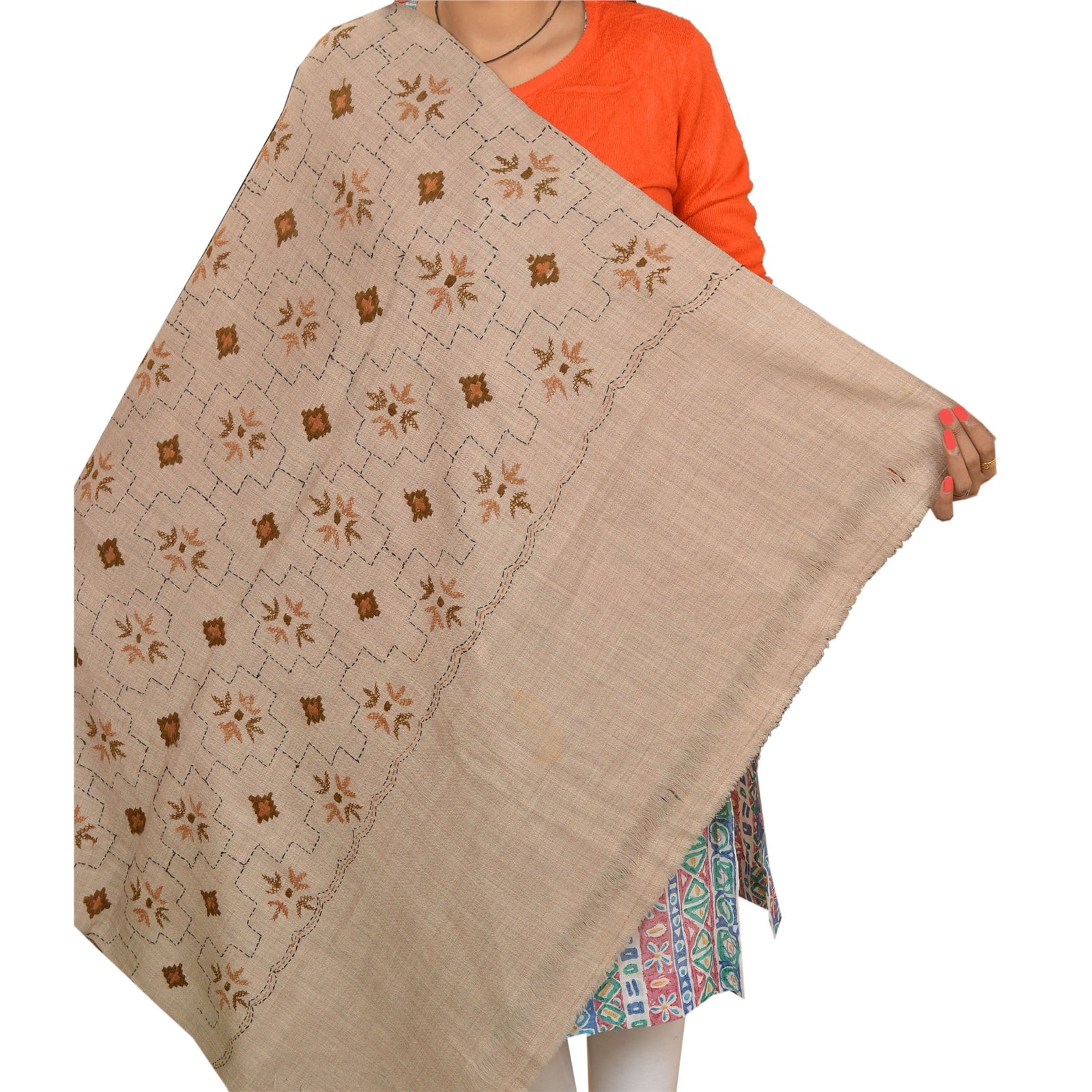 Sanskriti Vintage Hand Embroidered Woolen Shawl Brown Stole Floral