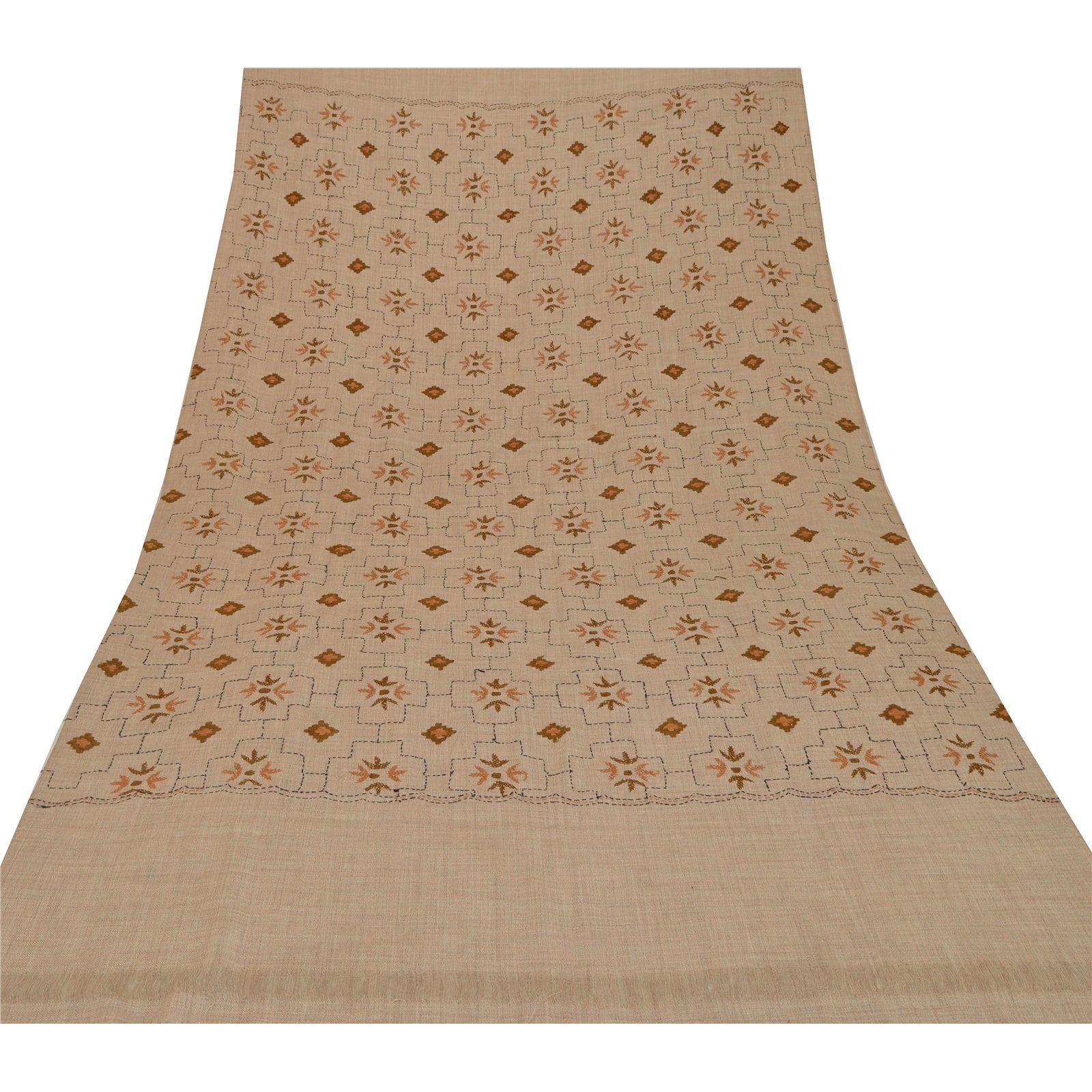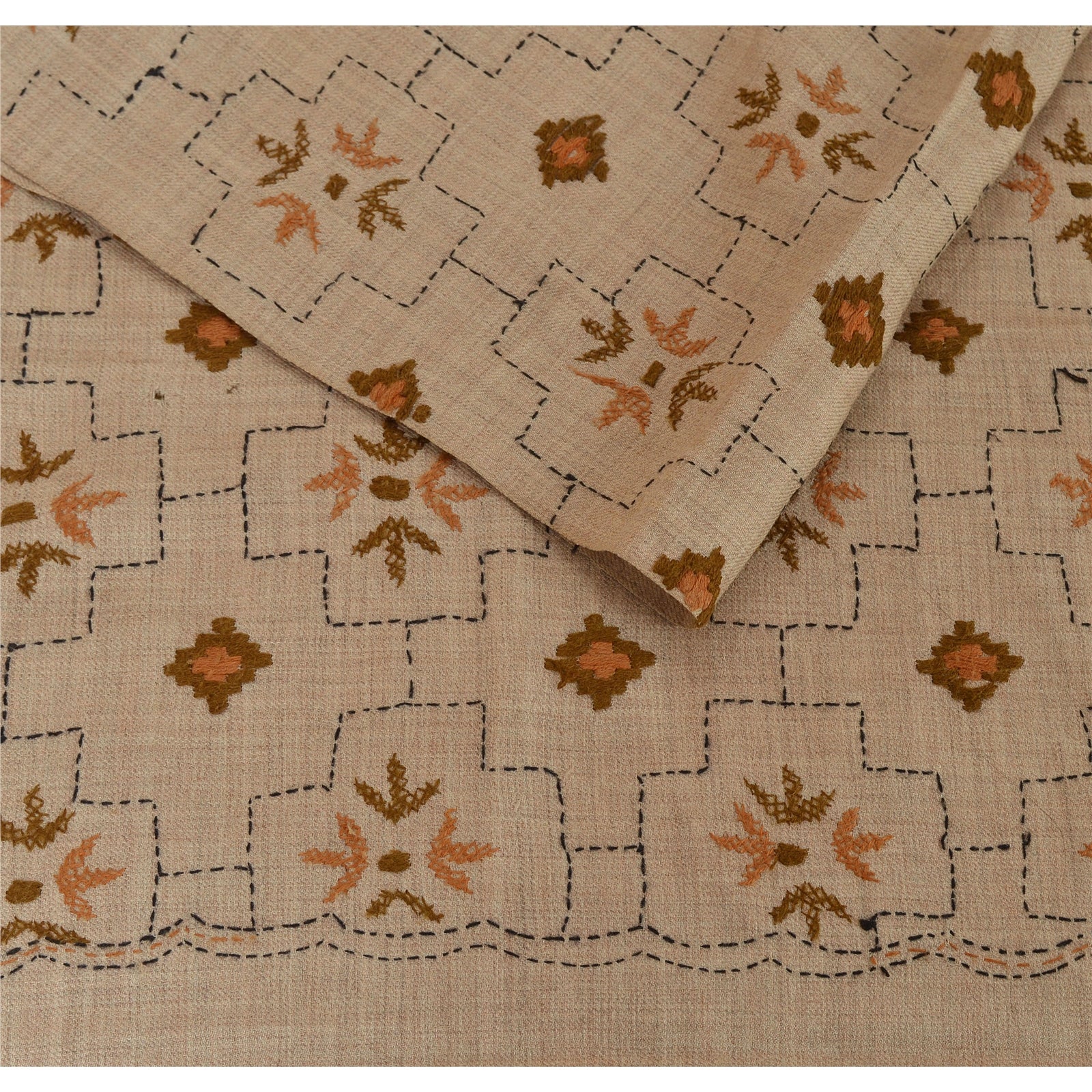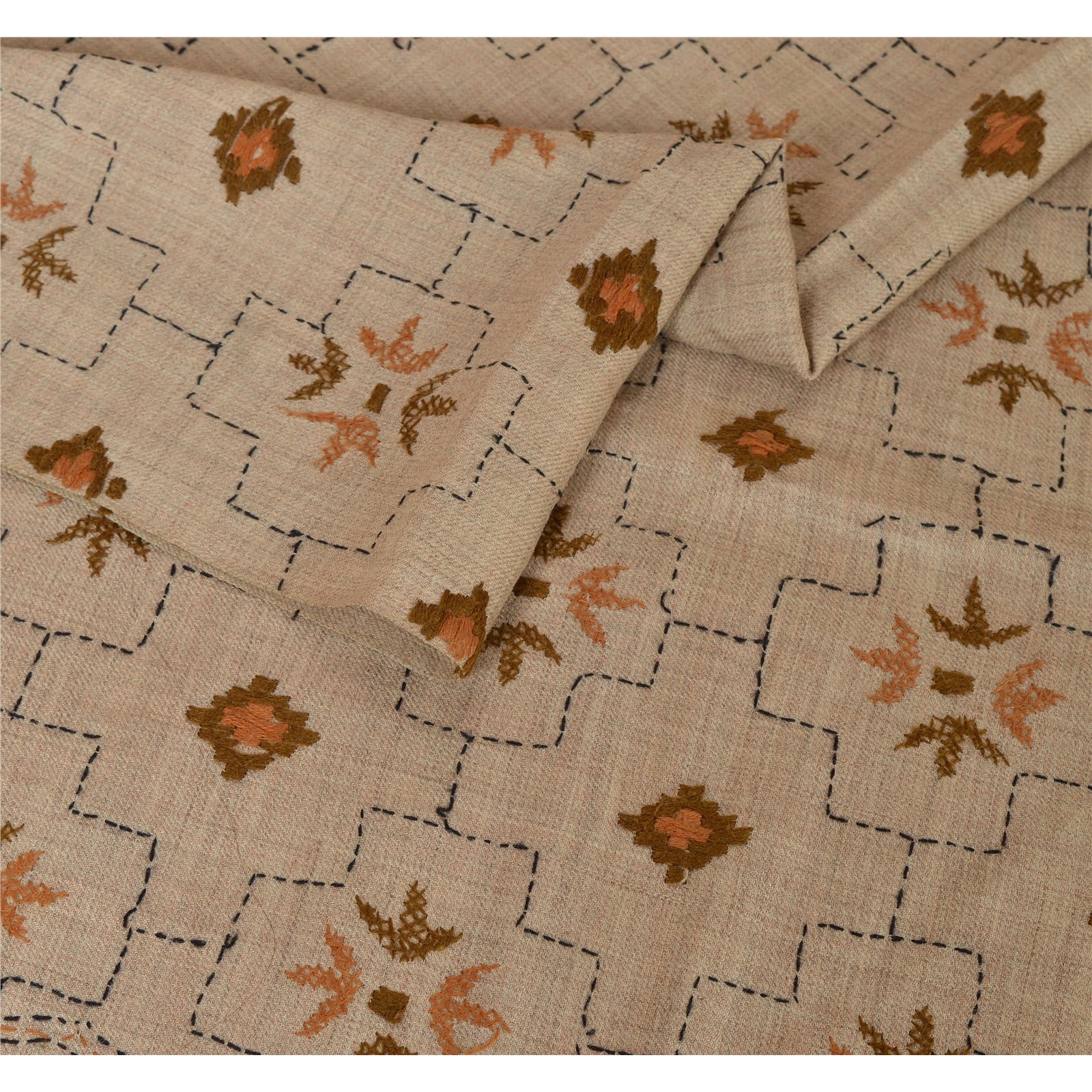 Sanskriti Vintage Hand Embroidered Woolen Shawl Brown Stole Floral
