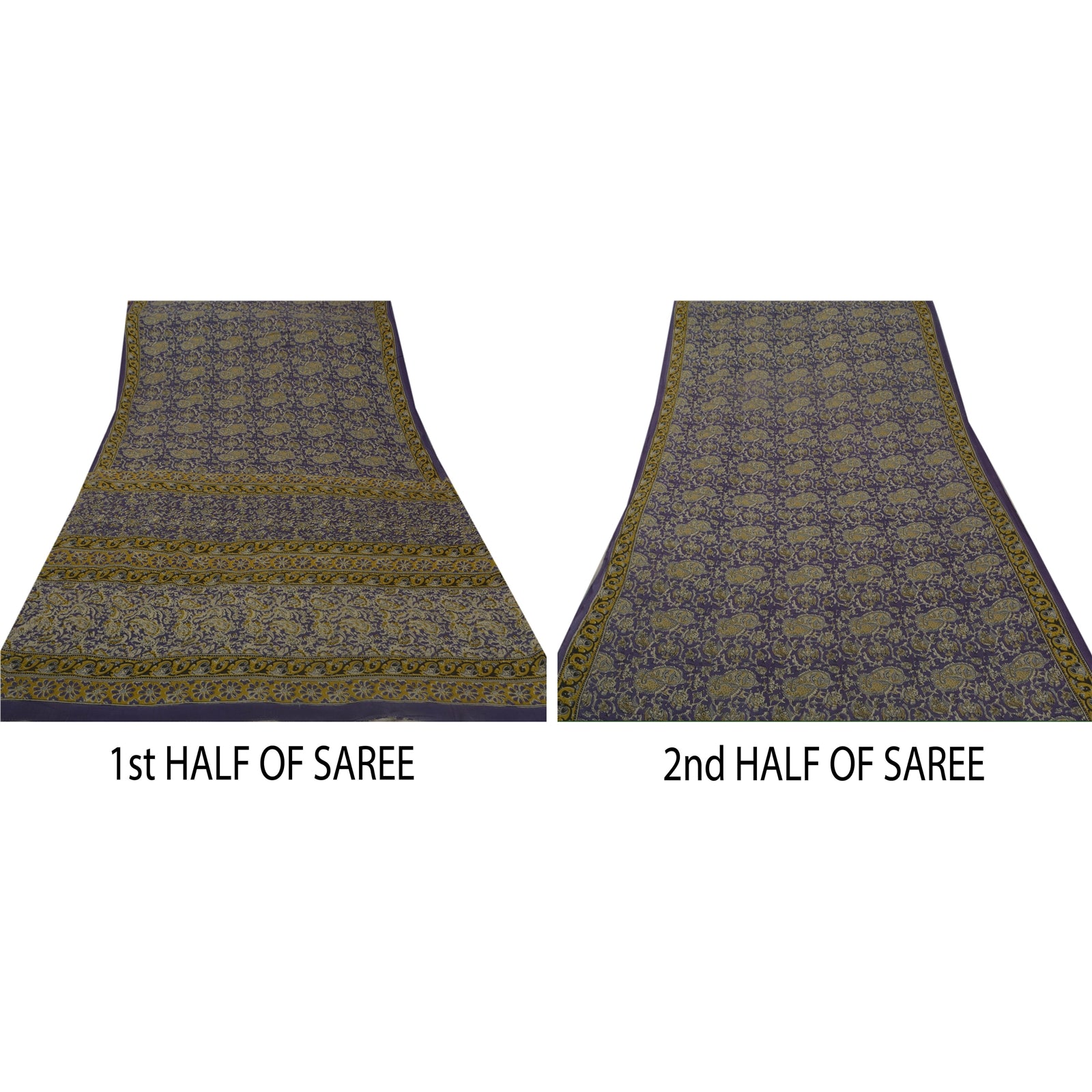 Sanskriti Vintage Heavy Saree 100% Pure Cotton Printed Work Blue Premium Sari