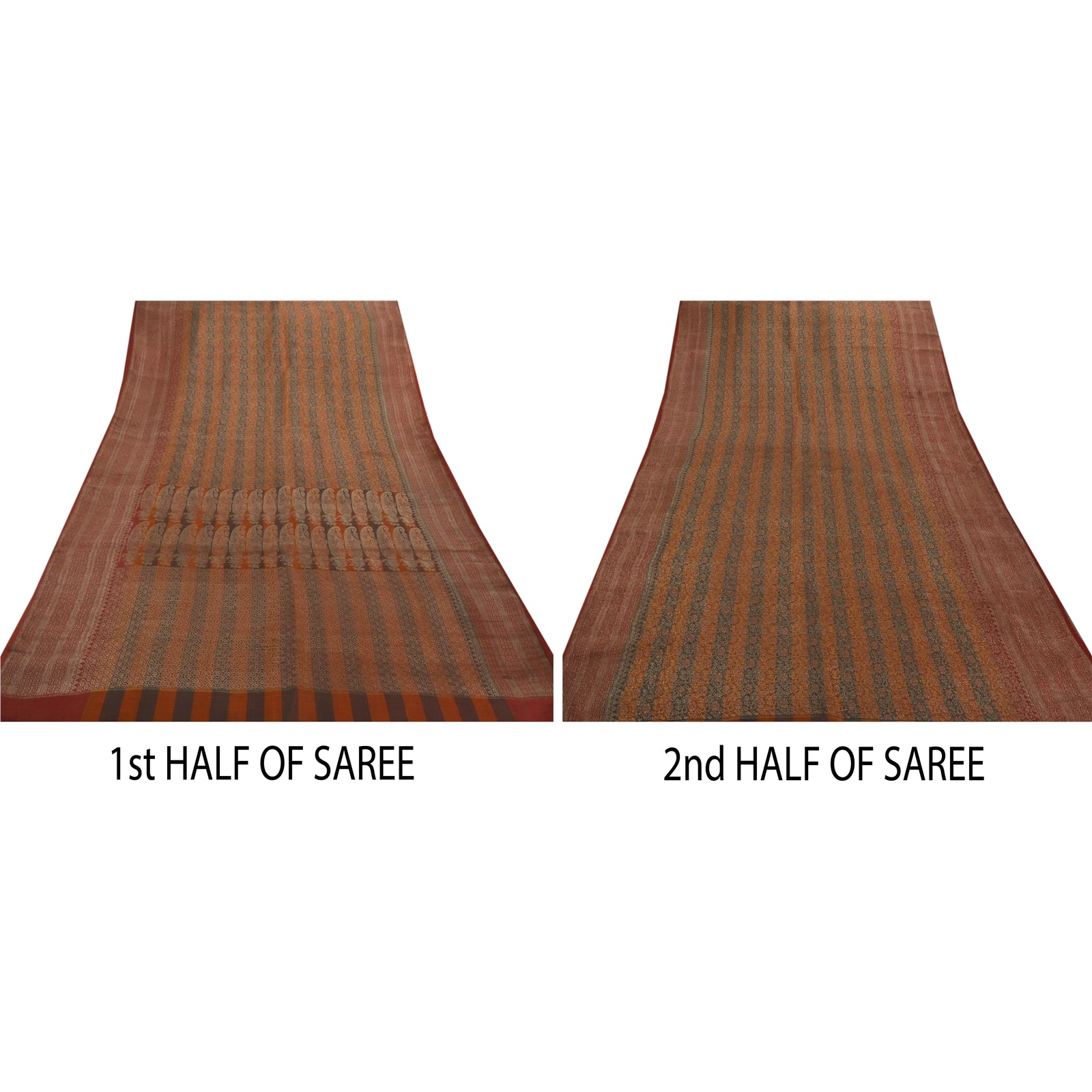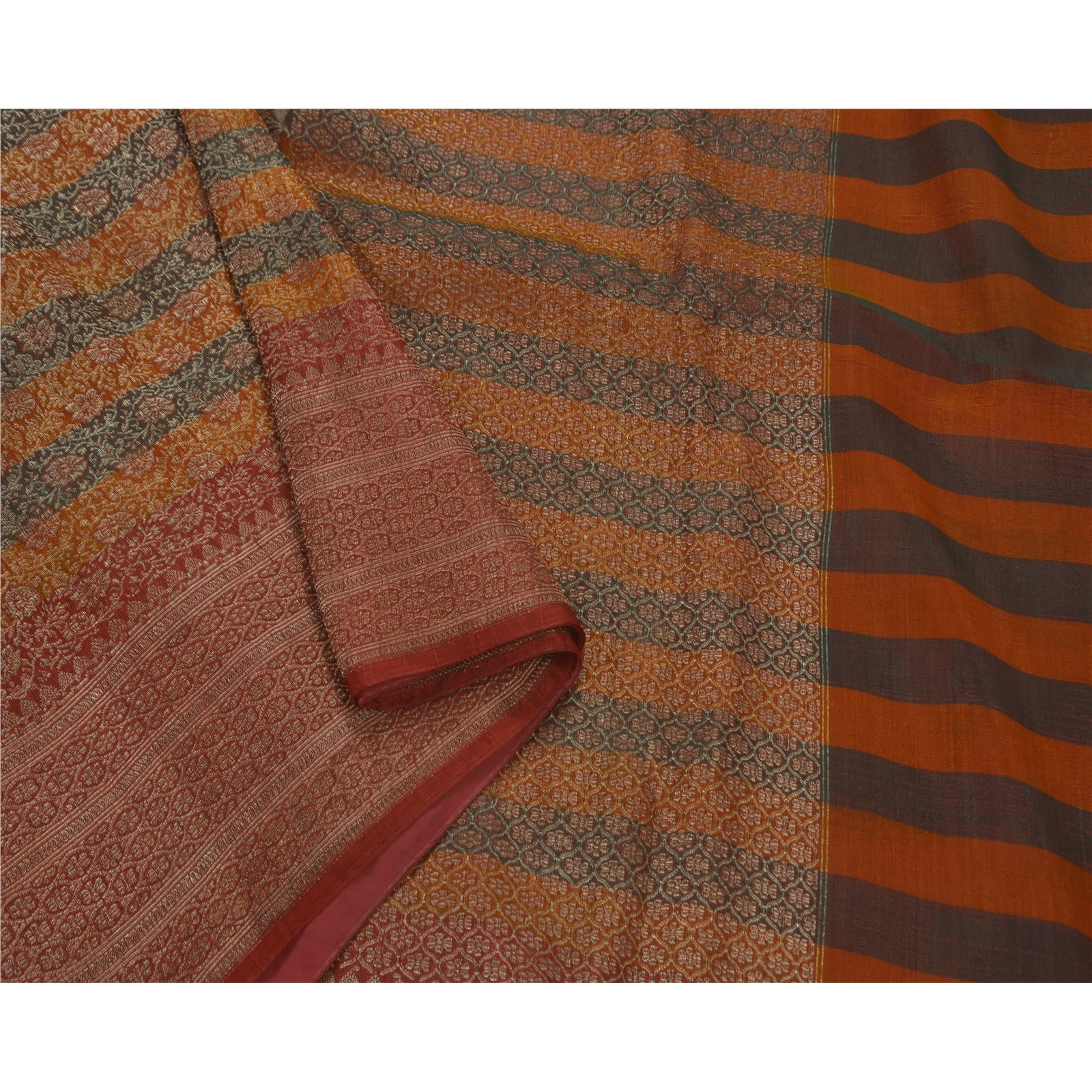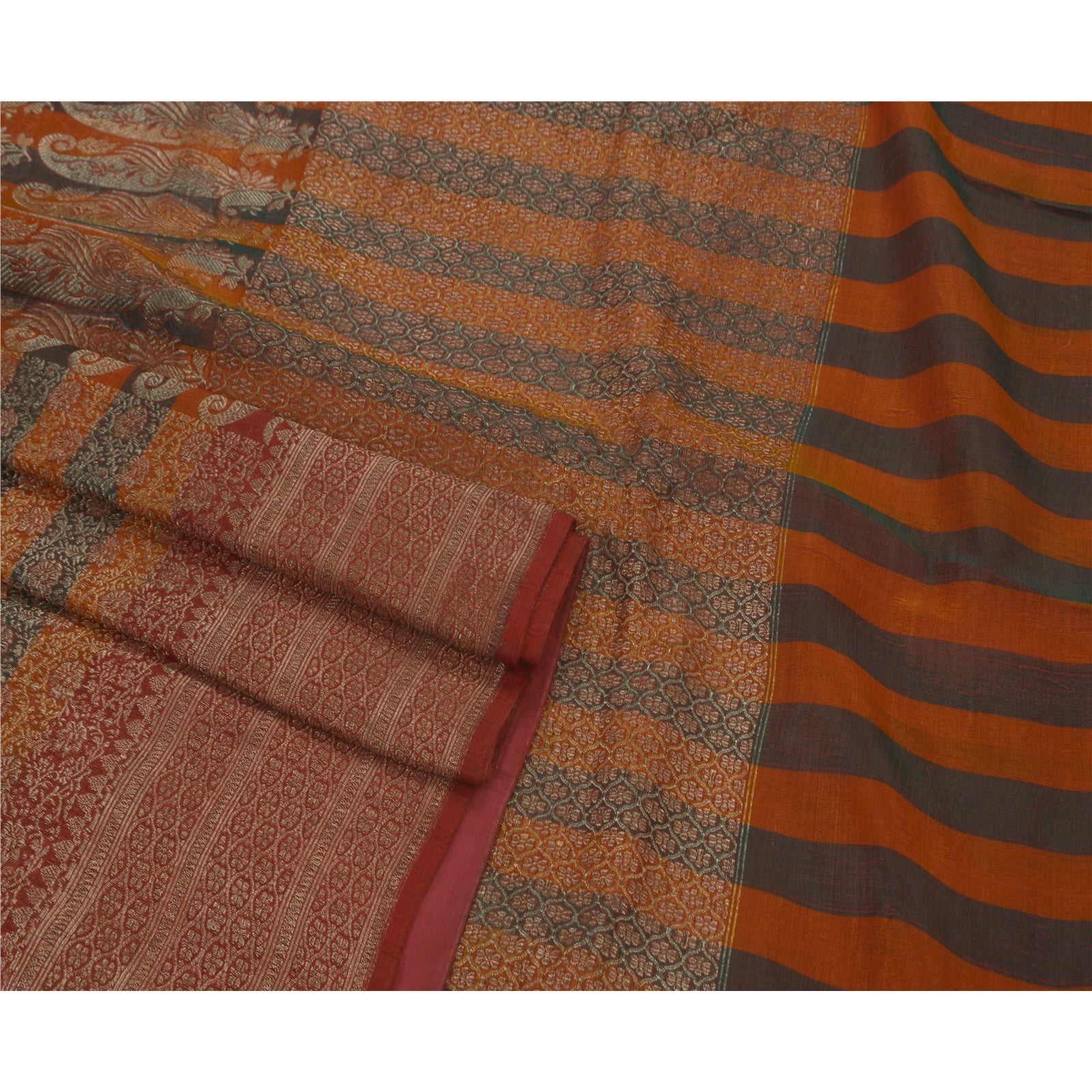 Sanskriti Vintage Heavy Saree Woven Satin Silk Sustainable Fabric Brocade 5Yd Brown Sari