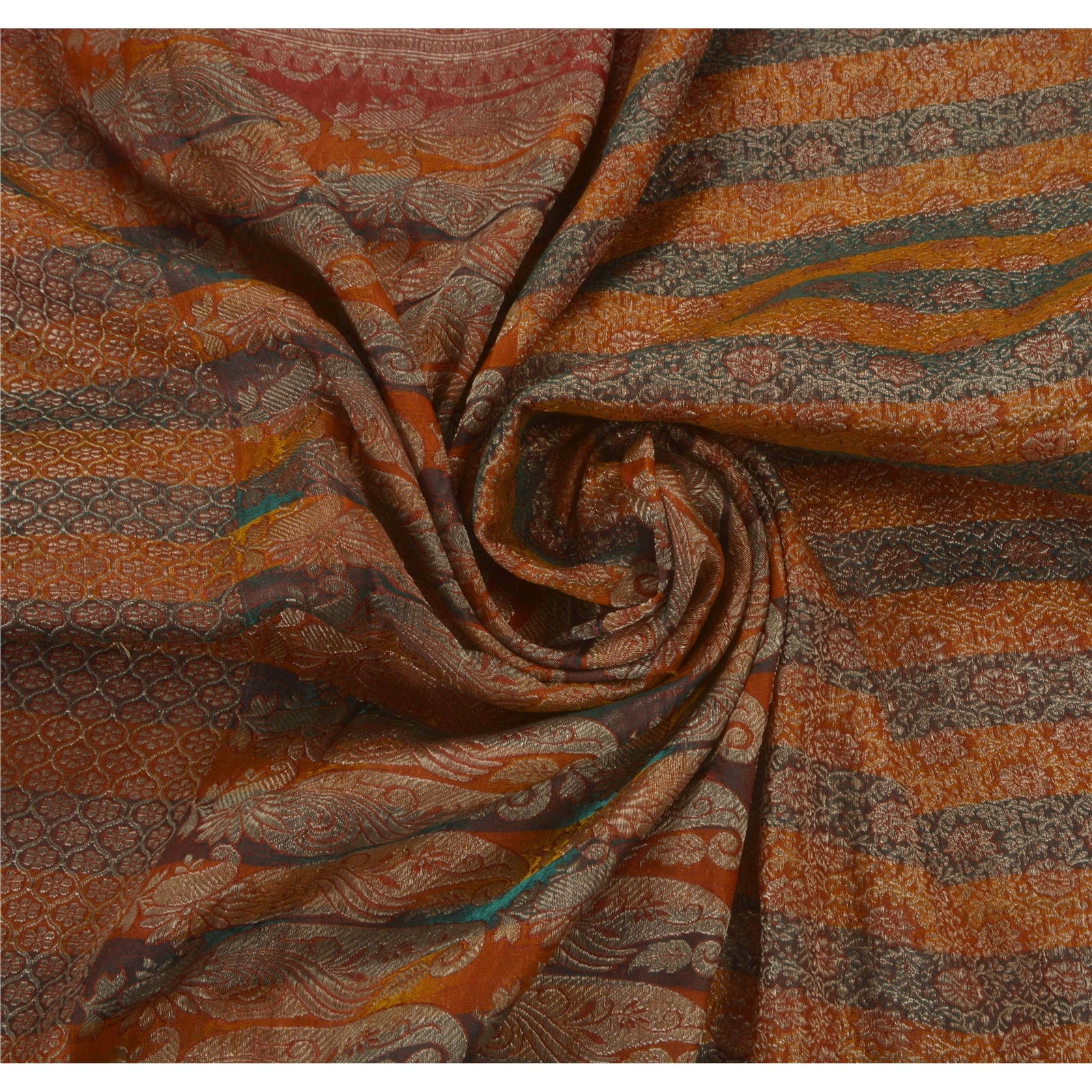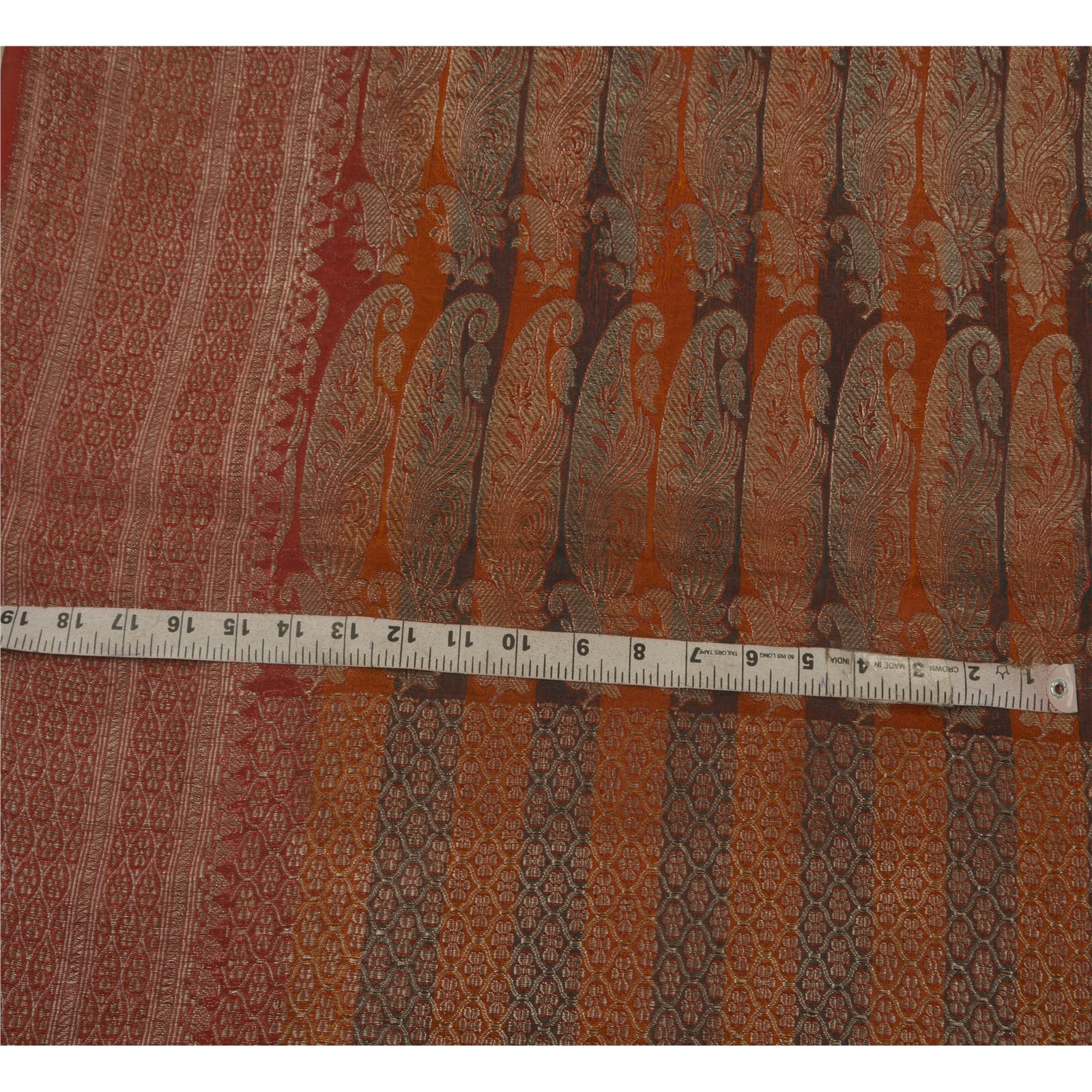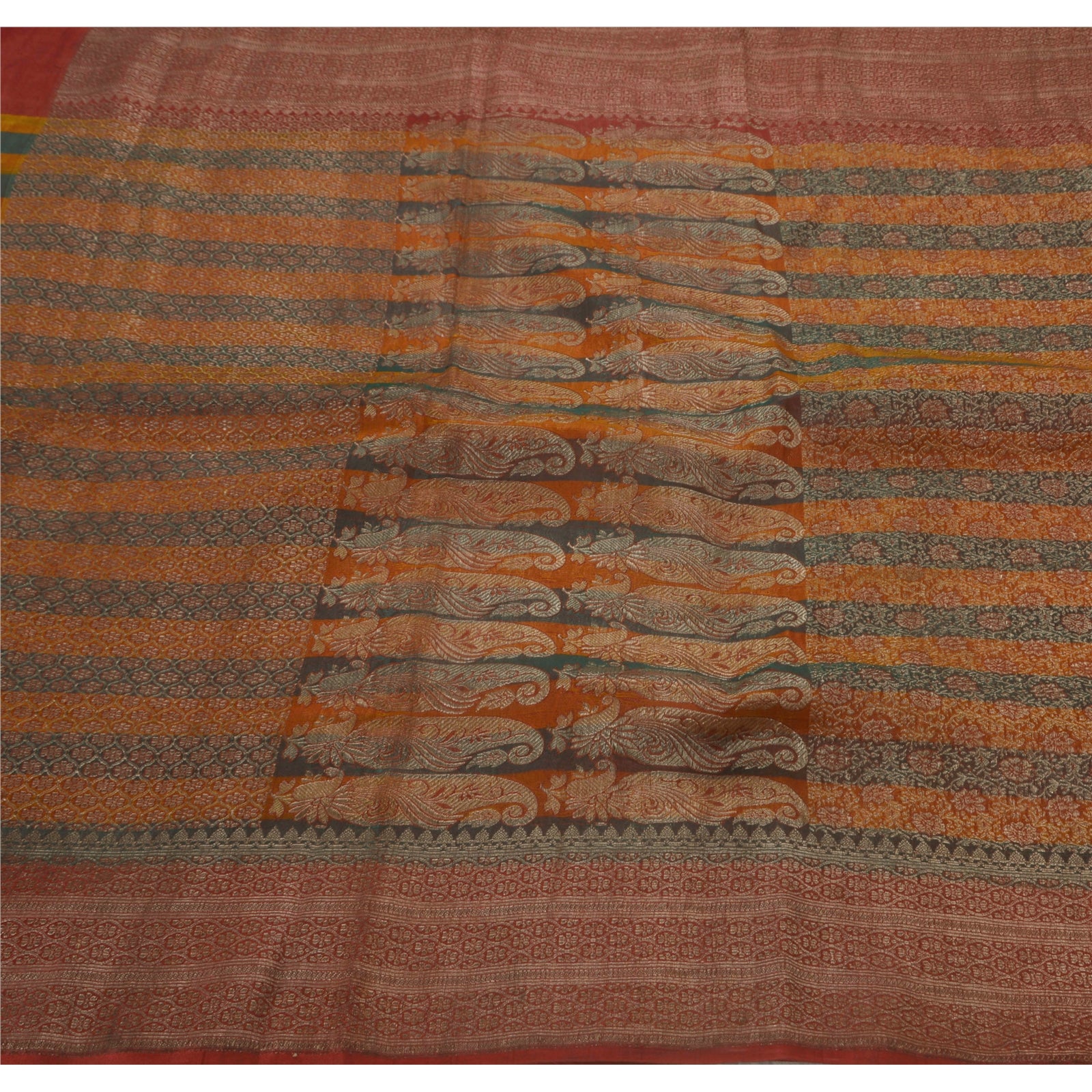 Sanskriti Vintage Heavy Saree Woven Satin Silk Sustainable Fabric Brocade 5Yd Brown Sari