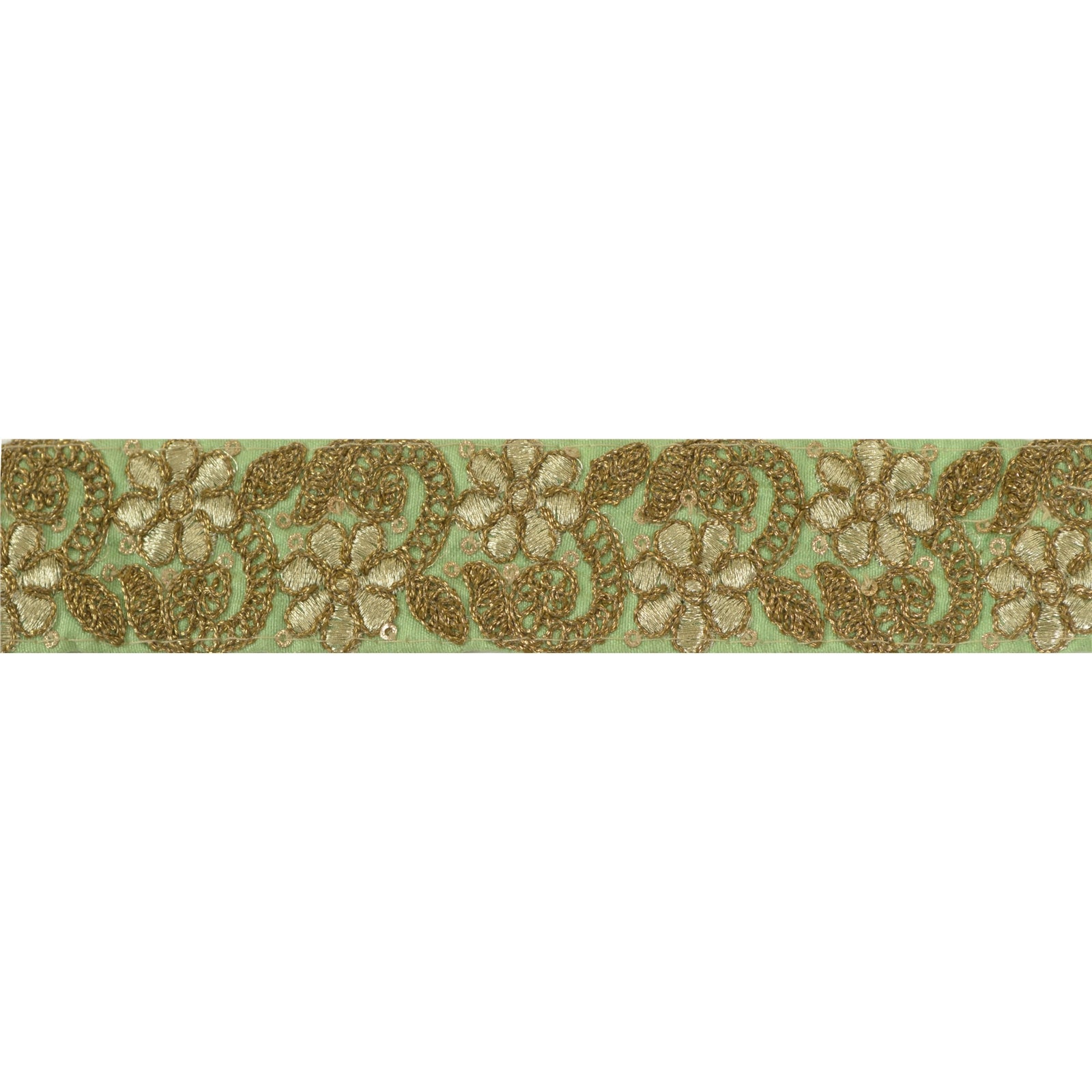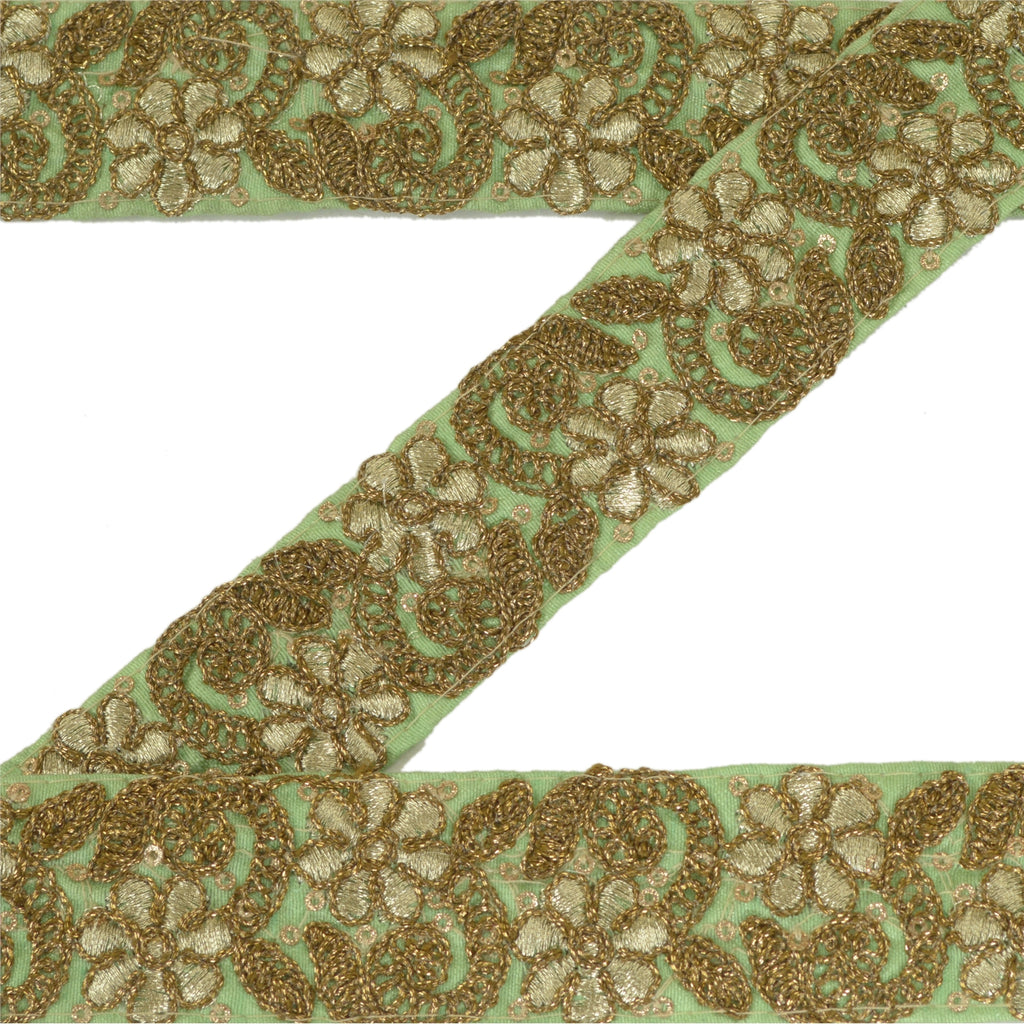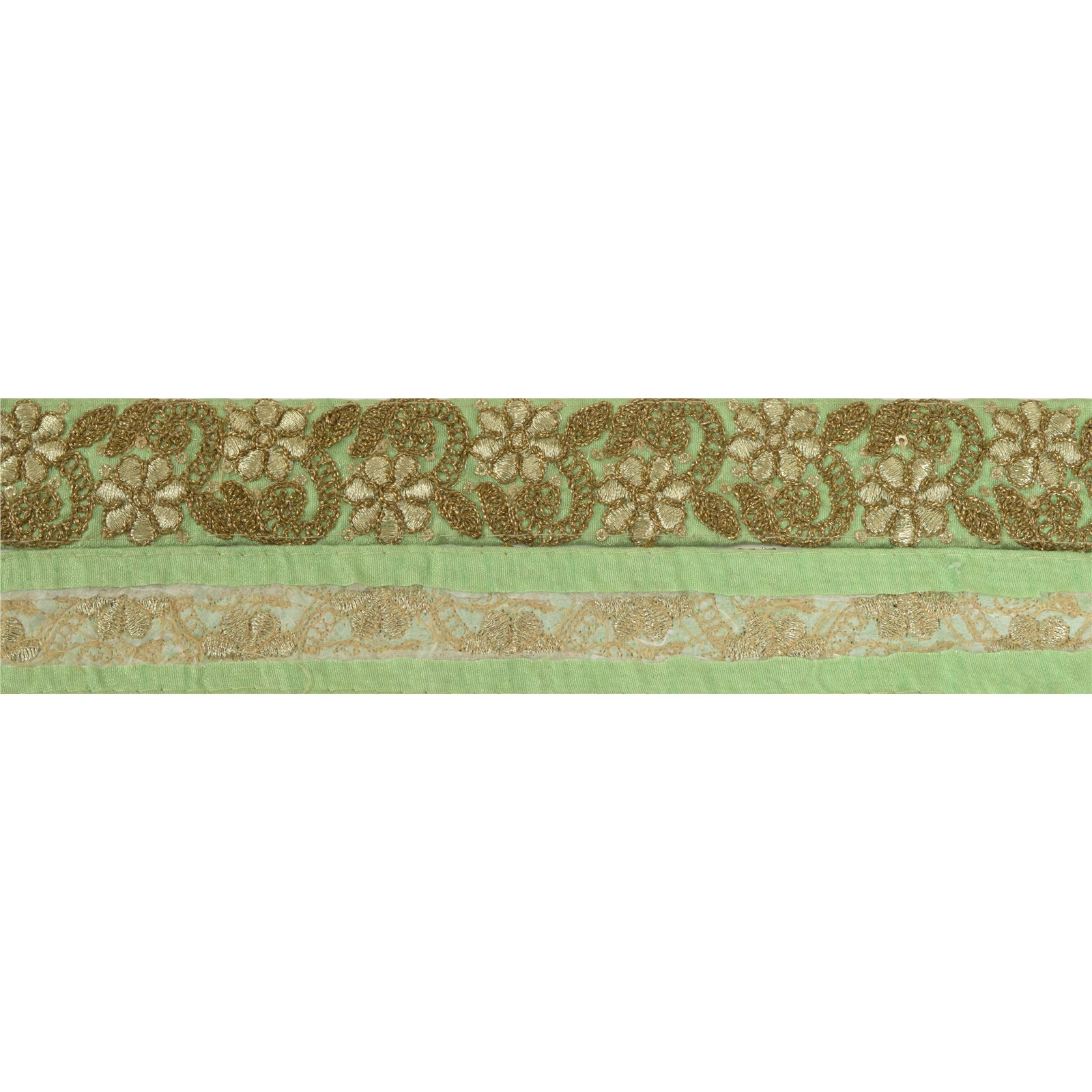 Sanskriti Indian Embroidered Prom Dress Border 1 YD Trim Green Craft Zari Lace