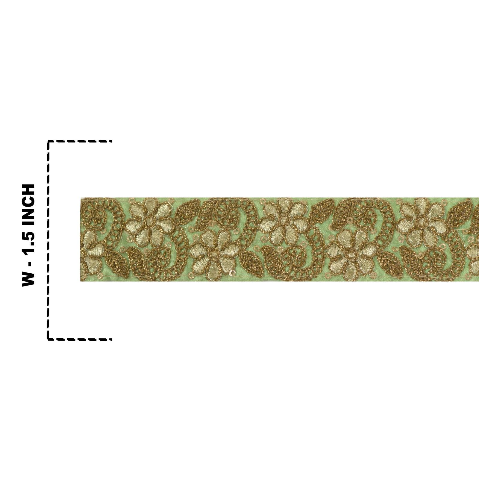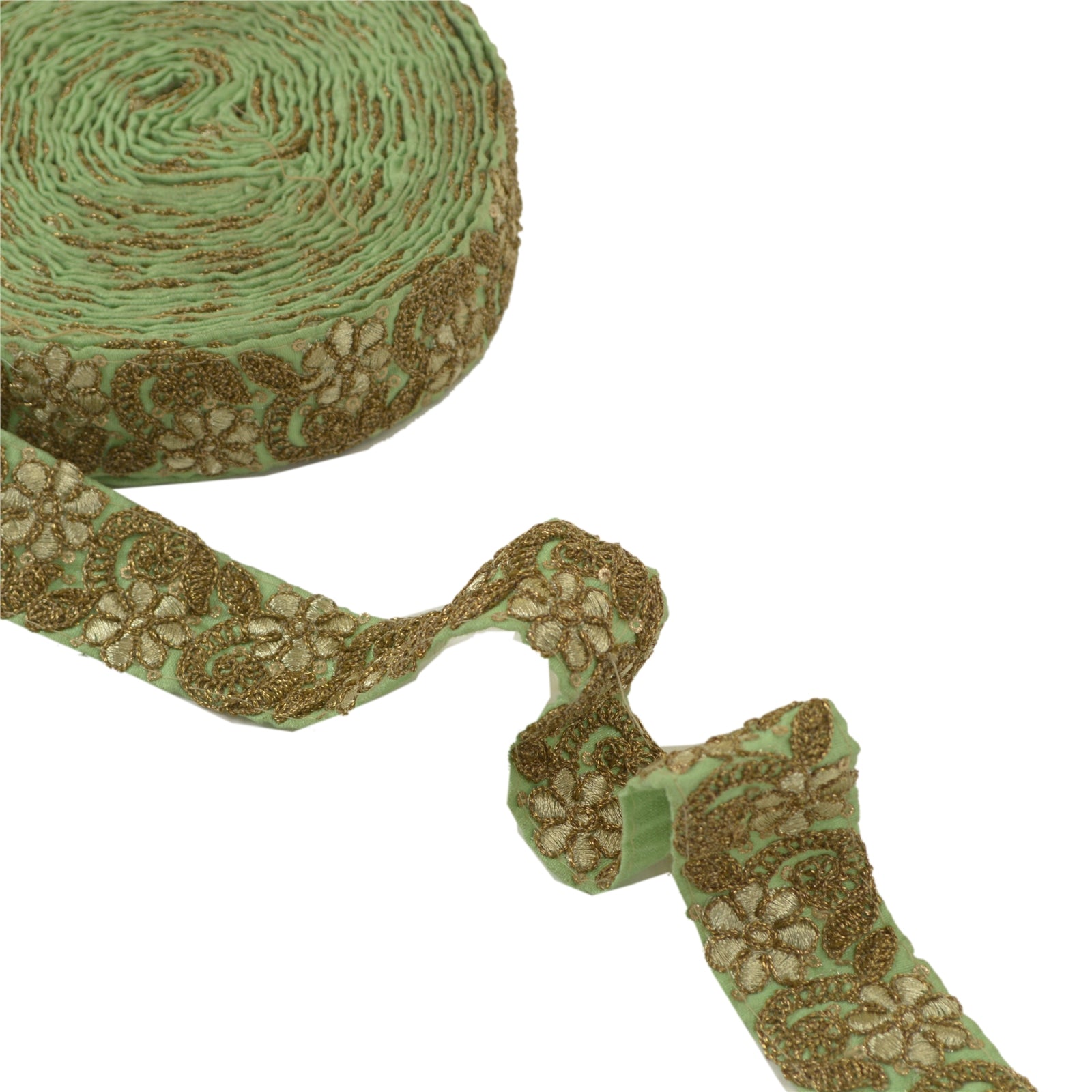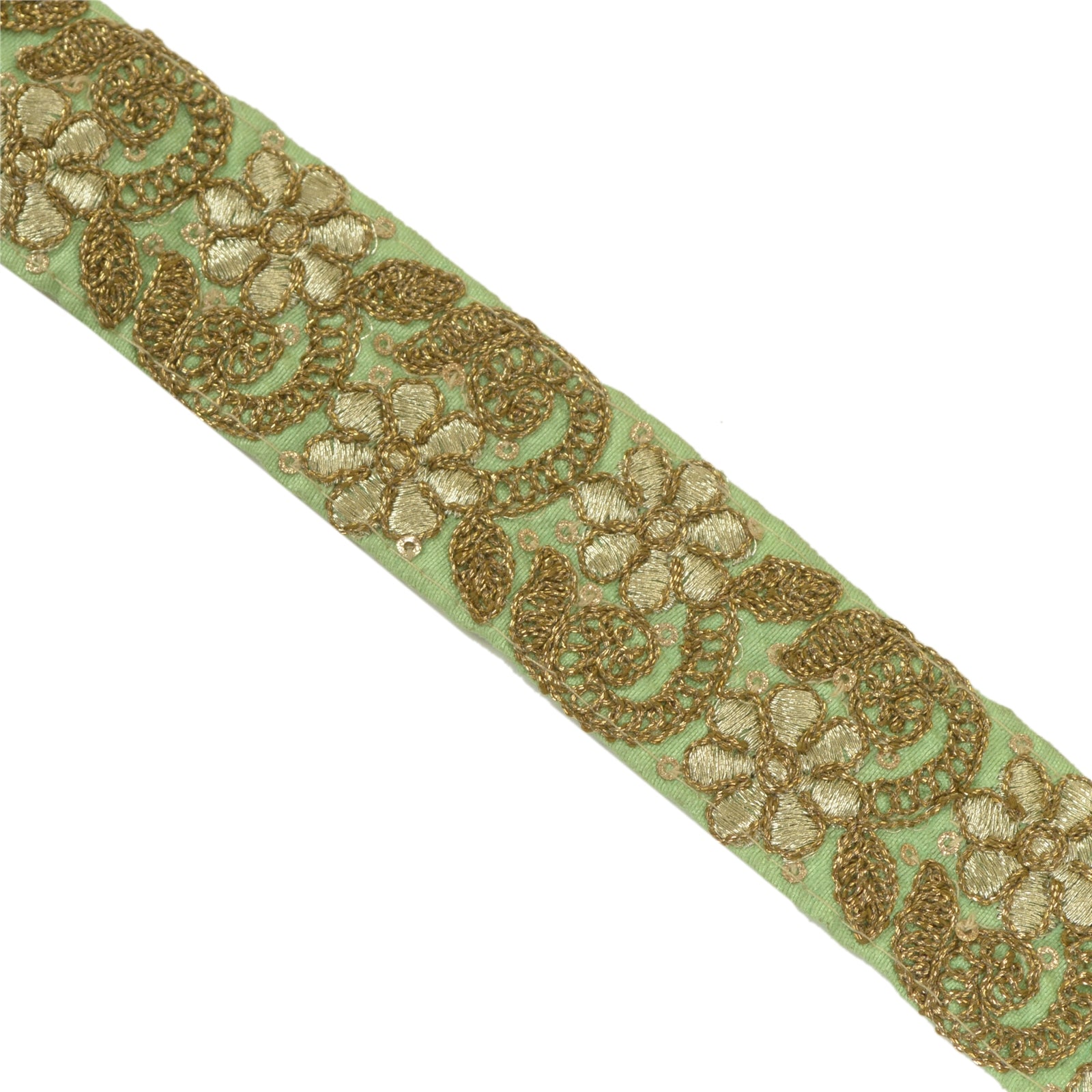 Sanskriti Indian Embroidered Prom Dress Border 1 YD Trim Green Craft Zari Lace