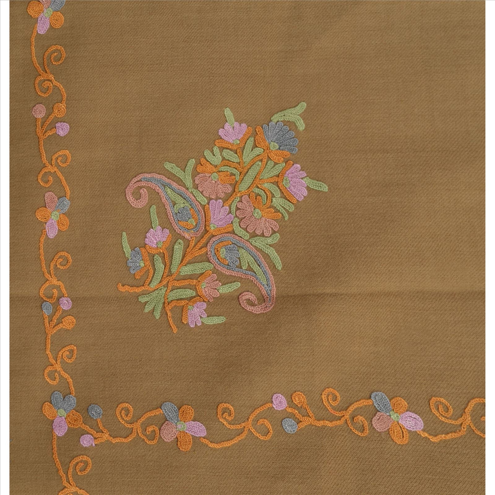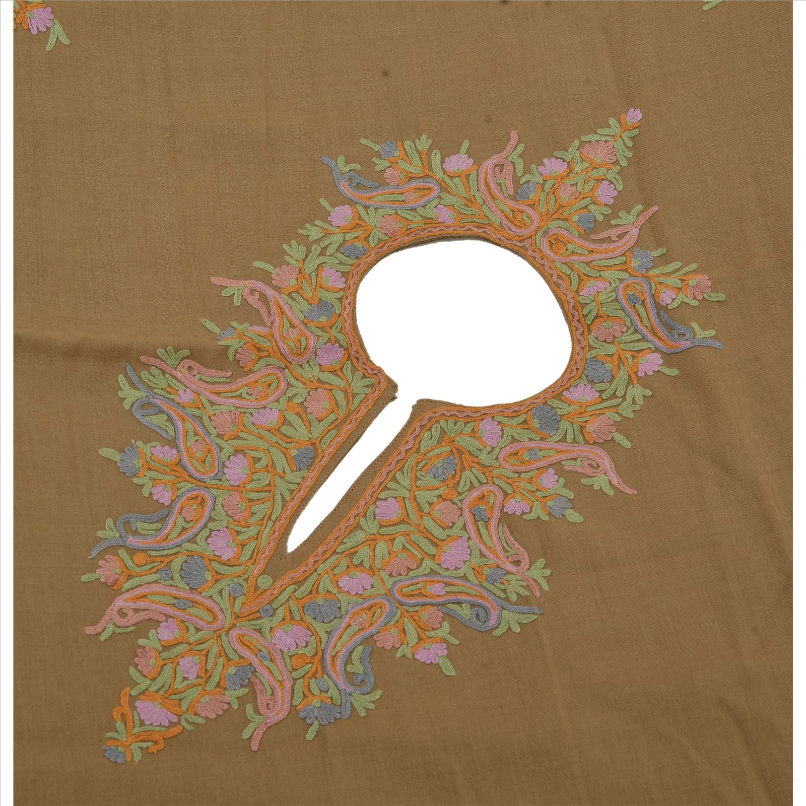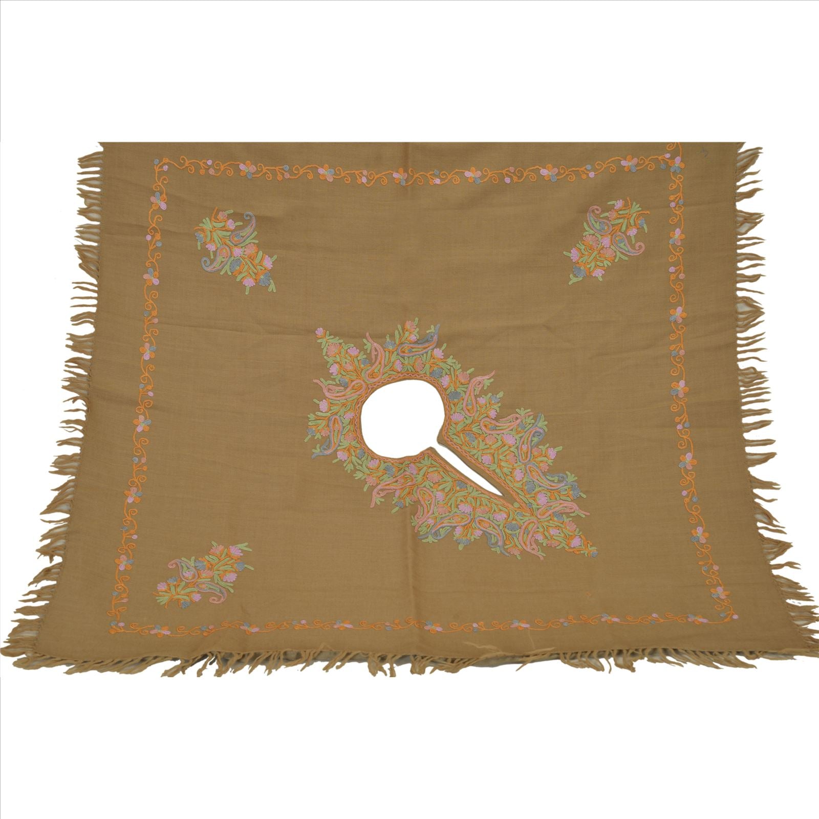Sanskriti Vintage Sanskriti Pashmina Pure Wool Hand Embroidered Arizama Poncho Top Heena Green